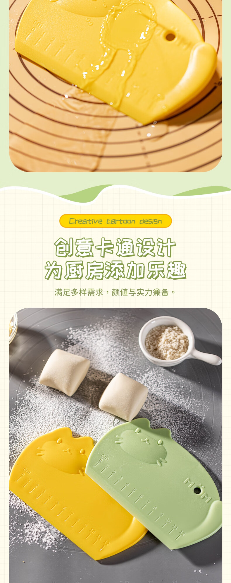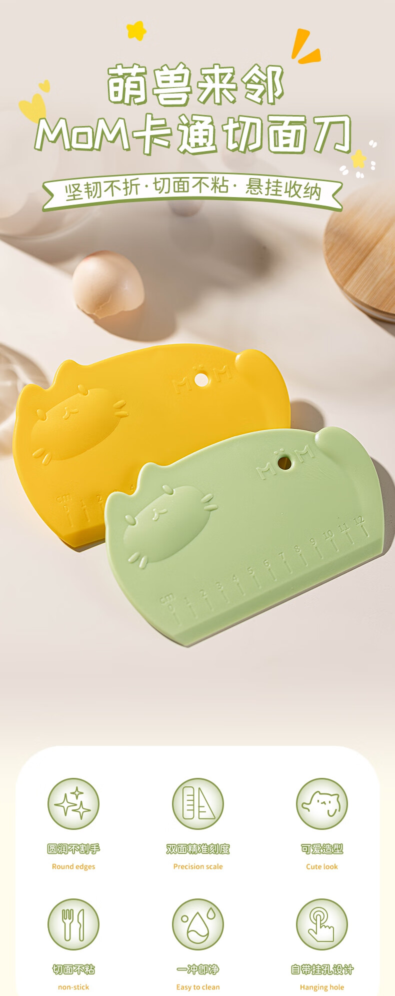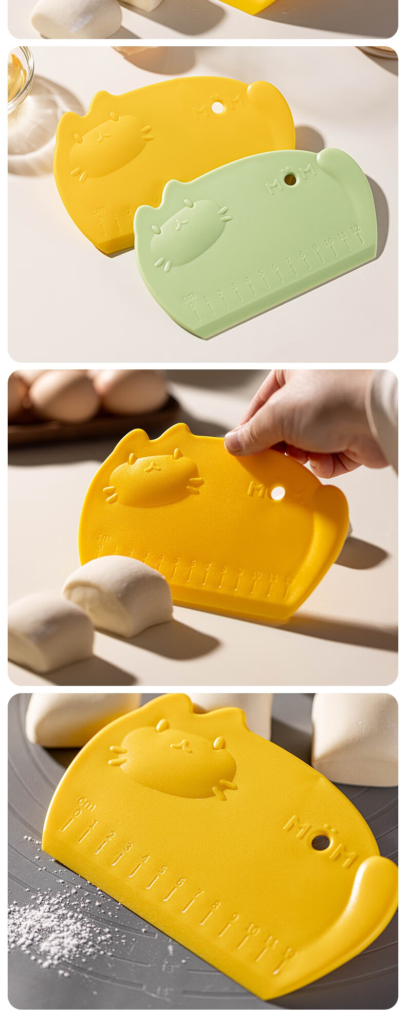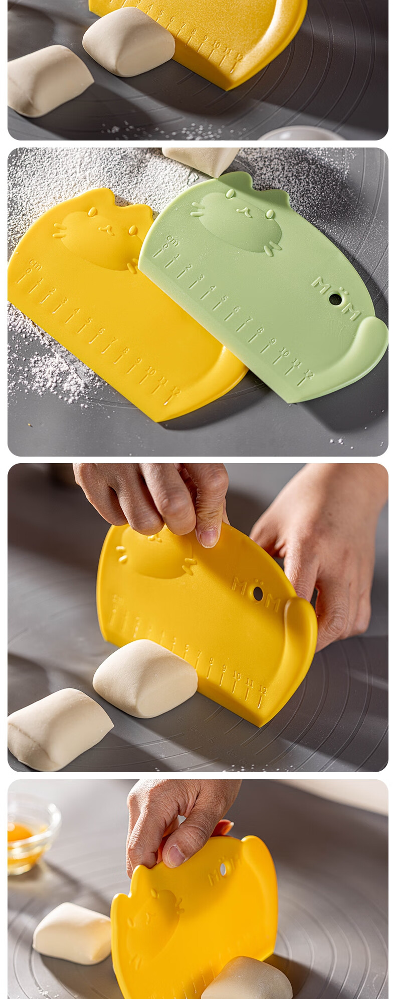 Detif Pasta Slicing Knife Food Grade Silicone Scraper Baking Special Scraper Tool Plastic Panel Cutting Rice Roll Pasta Mat 2 Pack Huobao Green-Food Grade PP Material