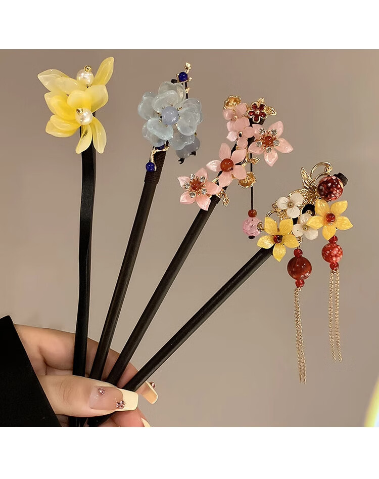 Beijing new Chinese style hairpin children's ball hair artifact hairpin hairpin children's ancient style princess headdress tassel step shake peach blossom