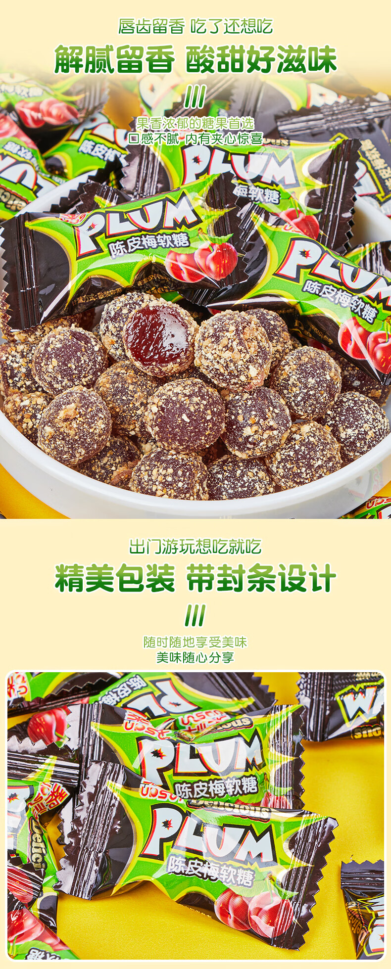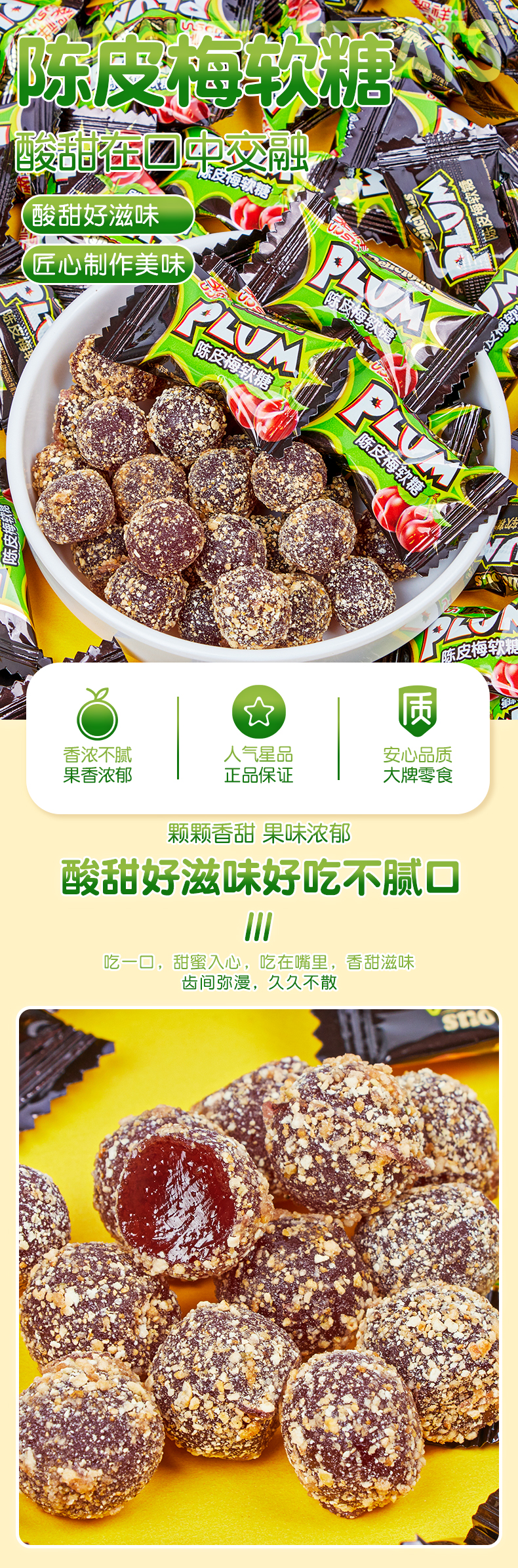 Li Xiang Tangerine Plum Gummy Candy Wedding Candy Bulk Plum Snacks Internet Celebrity Snack Food Tangerine Plum Gummy 500g (about 125 pieces)