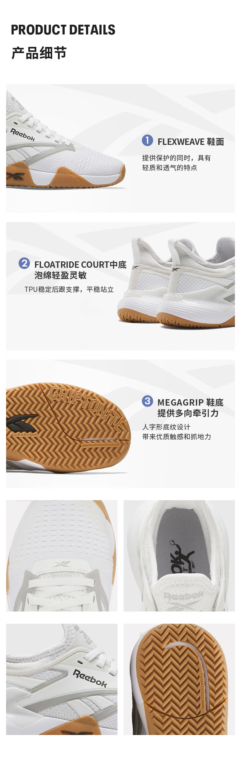 Reebok official 24th new men's and women's NANO COURT trendy and comfortable sports and casual shoes 100205029 unisex style 40.5 (260mm)