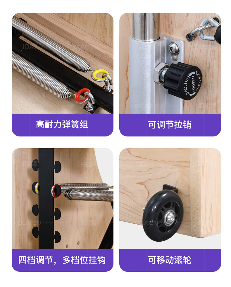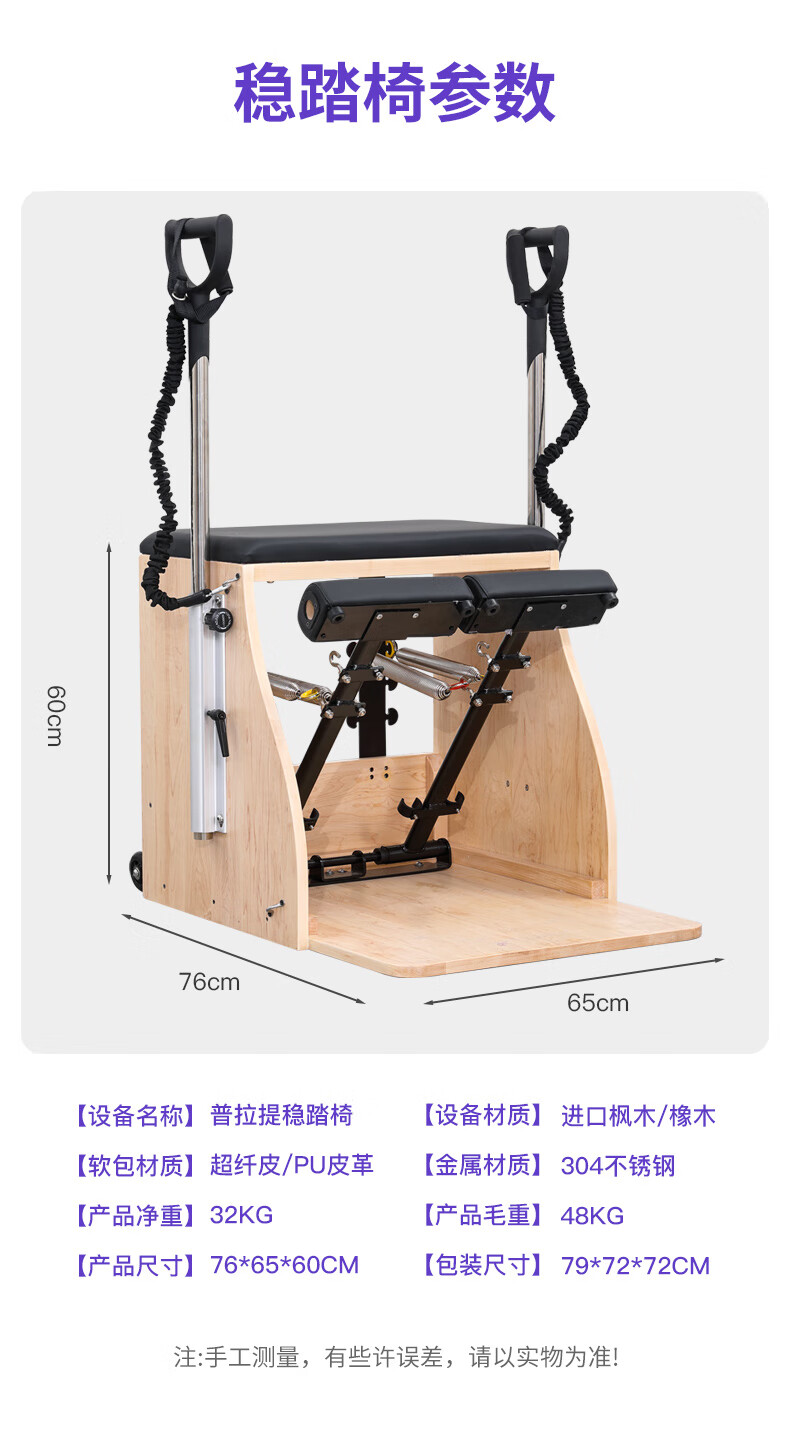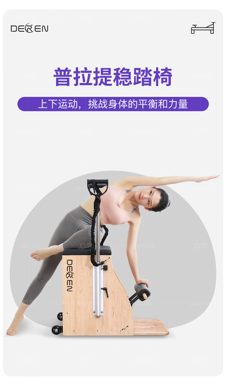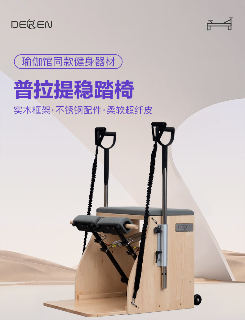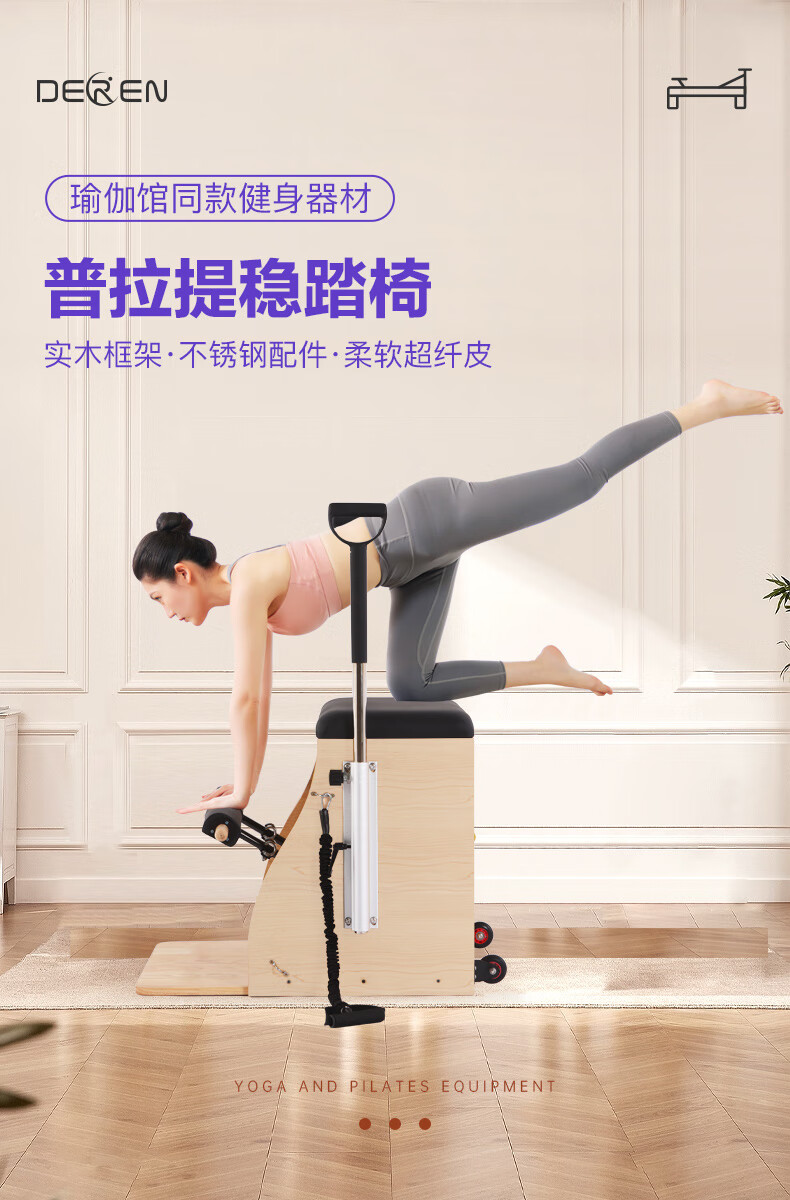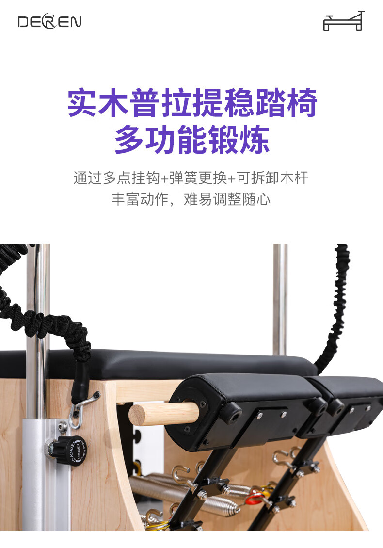 Gathering of Deren Pilates equipment, step chair, large equipment, five-piece set, core bed, yoga studio, personal training equipment, step chair, rubber wood | standard version (domestic spring + pu leather), black leather