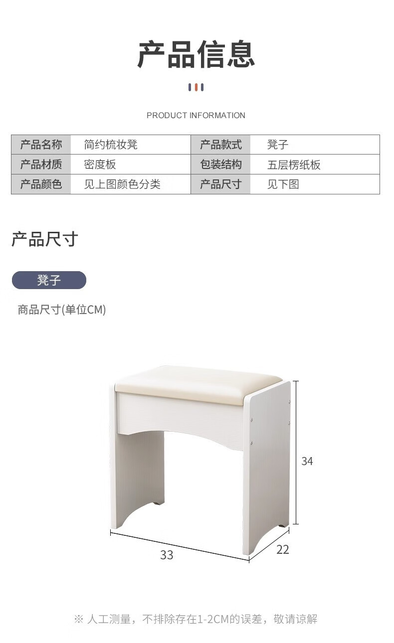 Zhongtao Makeup Stool Dressing Stool Girls Bedroom Dressing Stool Manicure Stool Chair Small Bench Home Room Low Stool White