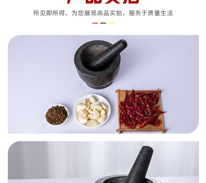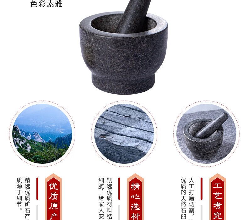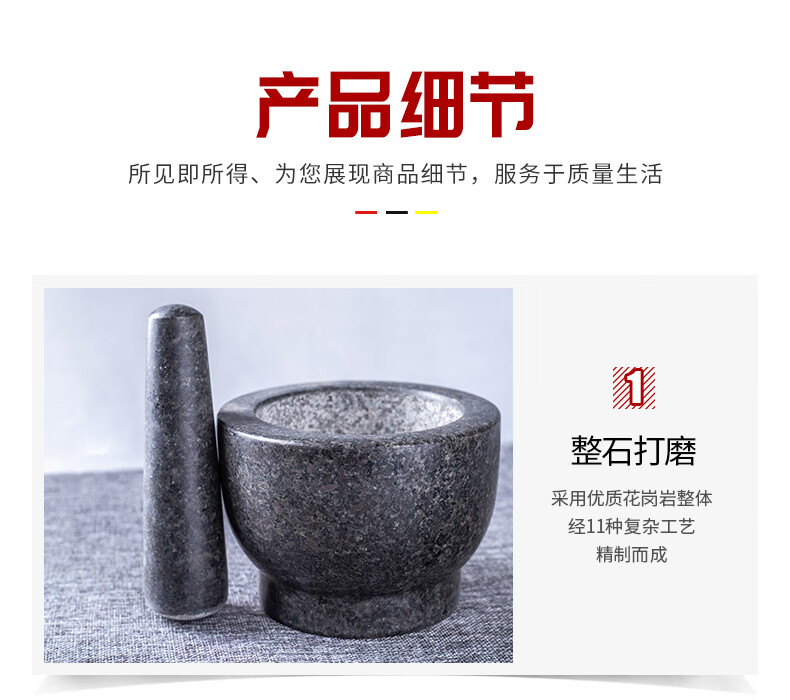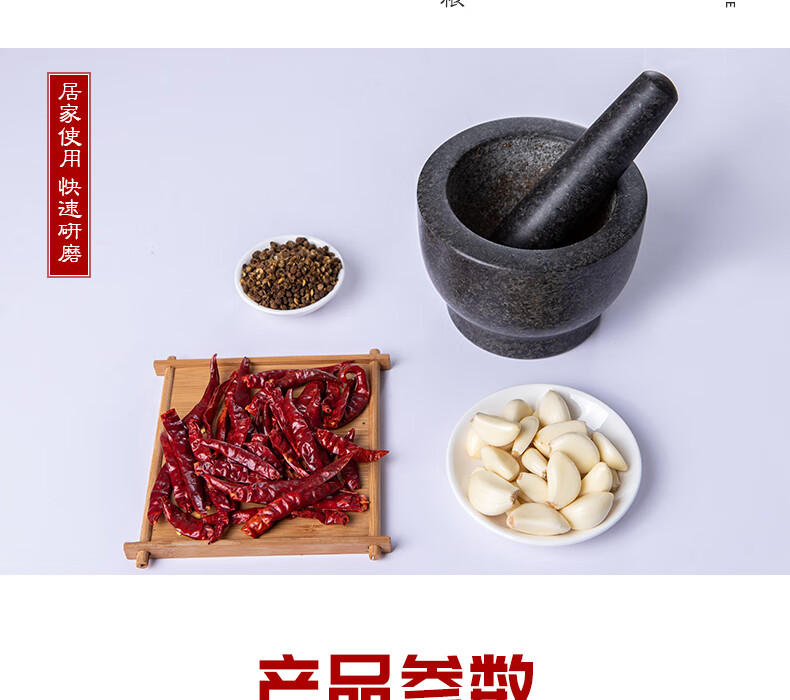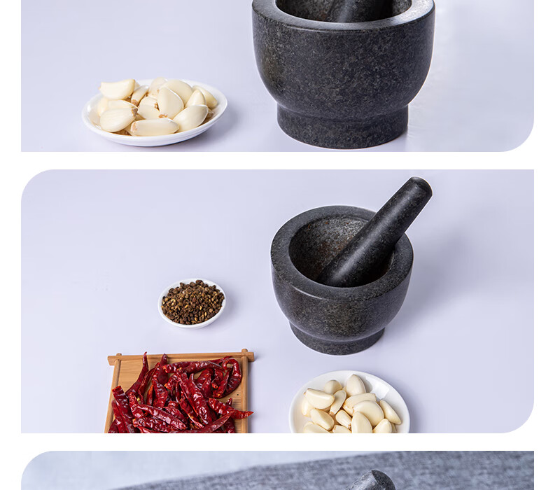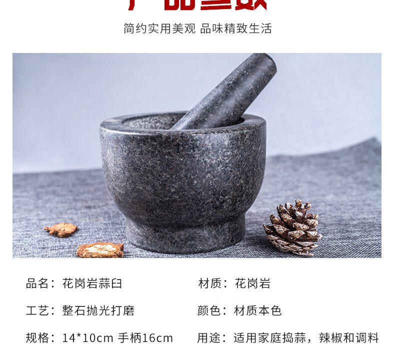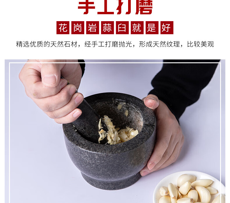 OEMG garlic masher, natural garlic pounder, stone mortar, garlic mortar, medicine jar, household natural stone grinding garlic peeler, garlic press, granite diameter 15 cm stone mortar with lid