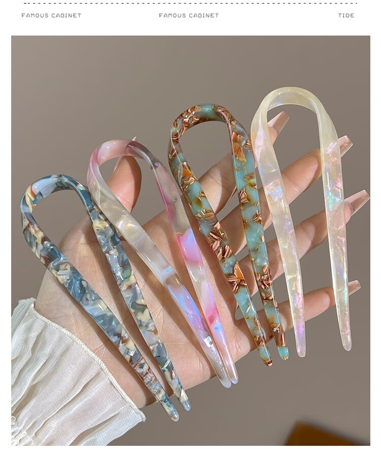 Xiao Panda's high-end acetic acid U-shaped hairpin for women, new Chinese style antique cheongsam, hairpin, horse face skirt, hairpin, hairpin, autumn and winter popular 2 pieces