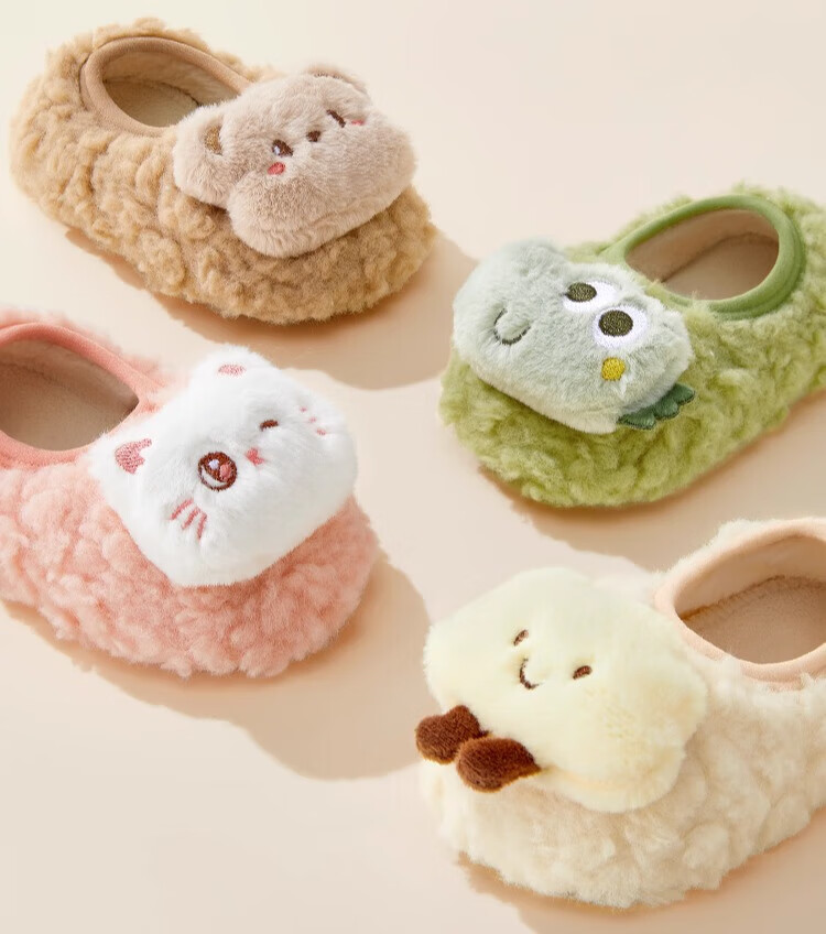 AIBEDILA baby floor socks children's men's velvet thickened non-slip soft sole shoes and socks baby shoes toddler shoes baby floor socks brown bear 1 pair 1-2 years old (S) - inner length 13.5cm