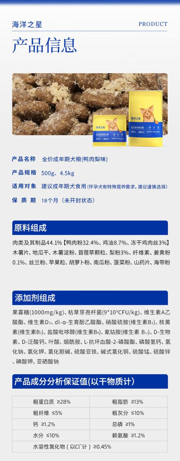 Ocean Star dog food new product duck meat and pear flavor full price grain-free dog main food probiotic freeze-dried shredded pork dog food 1 Jin Jin is equal to 0.5 kg, packed 1 Jin Jin is equal to 0.5 kg 10 Jin Jin is equal to 0.5 kg (9 Jin Jin is equal to 0.5 kg, plus 1 Jin Jin is equal to 0.5 kg, try)