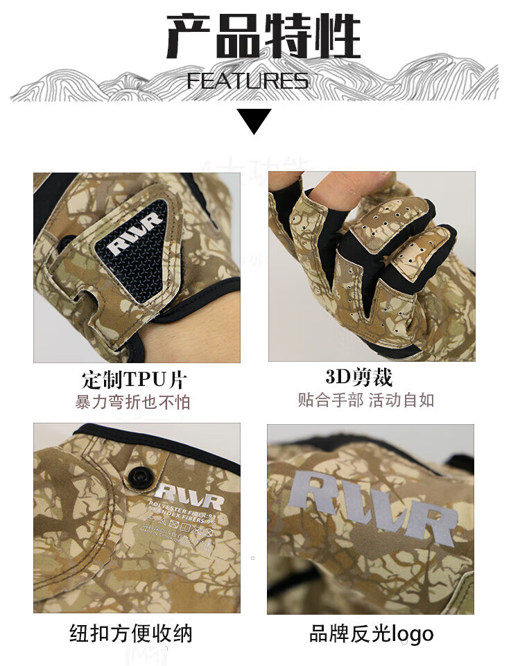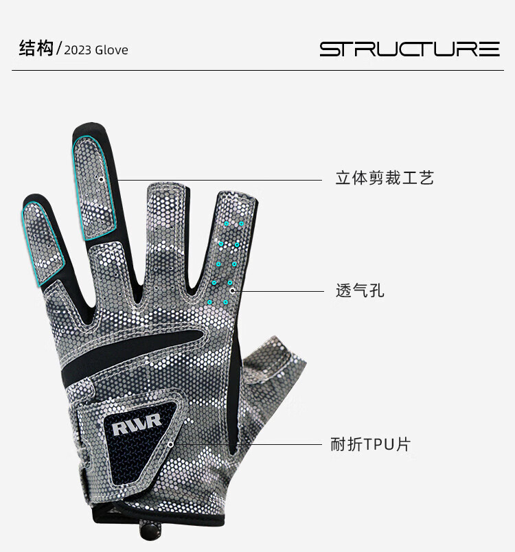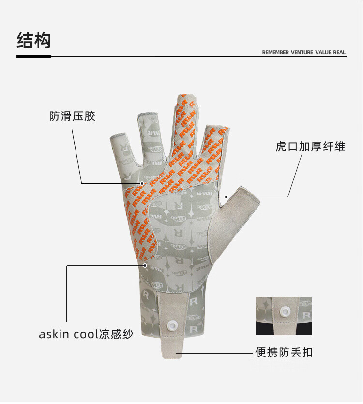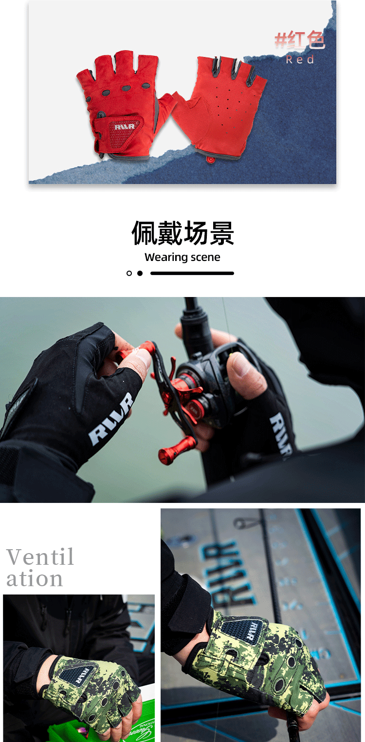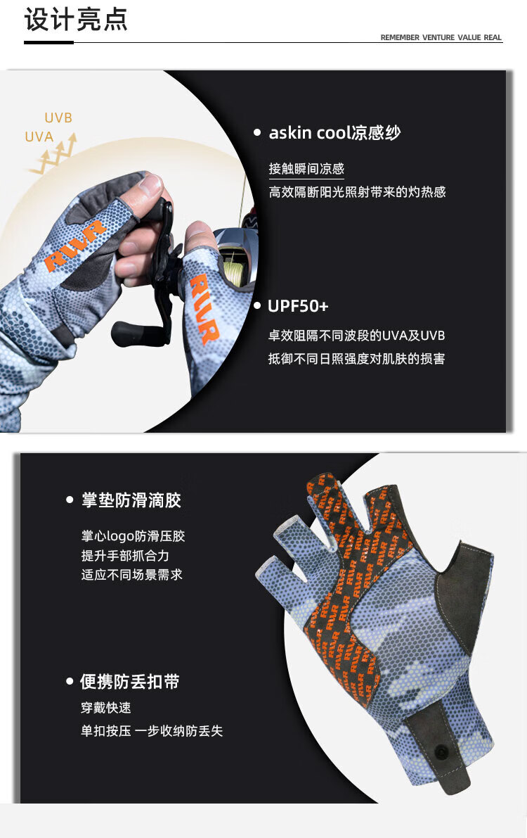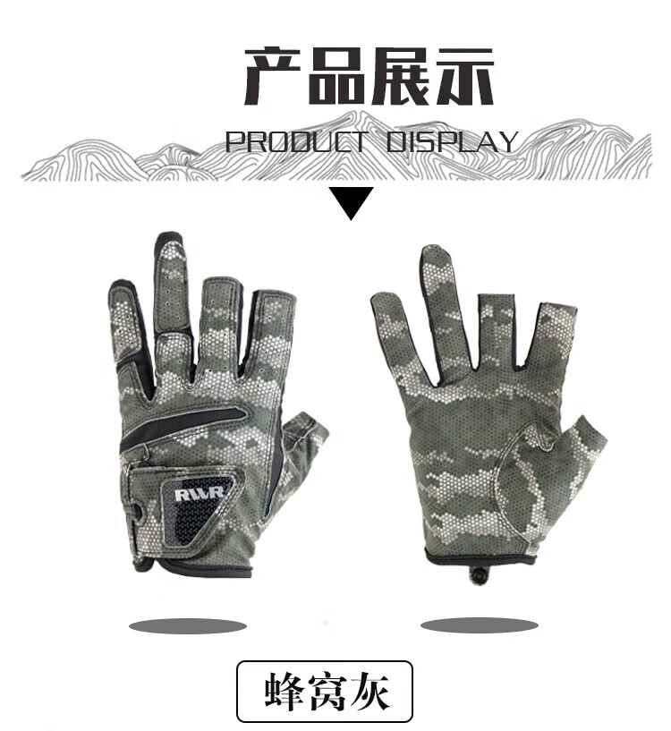RVVR23 RVVR gloves Luya fishing special gloves protective anti-slip special Taiwan fishing rock fishing sea fishing half finger ice silk dew five fingers-01# gray honeycomb M