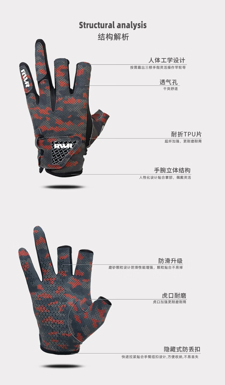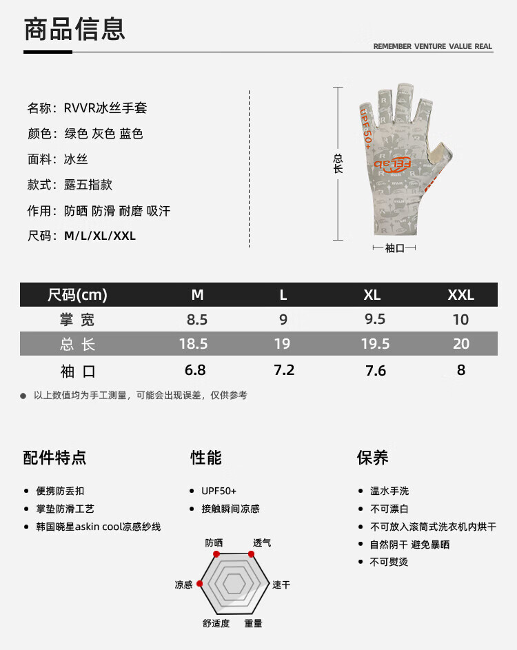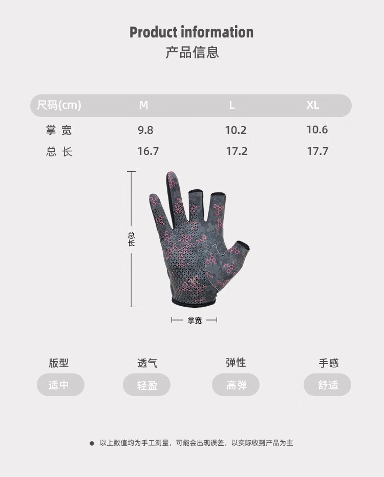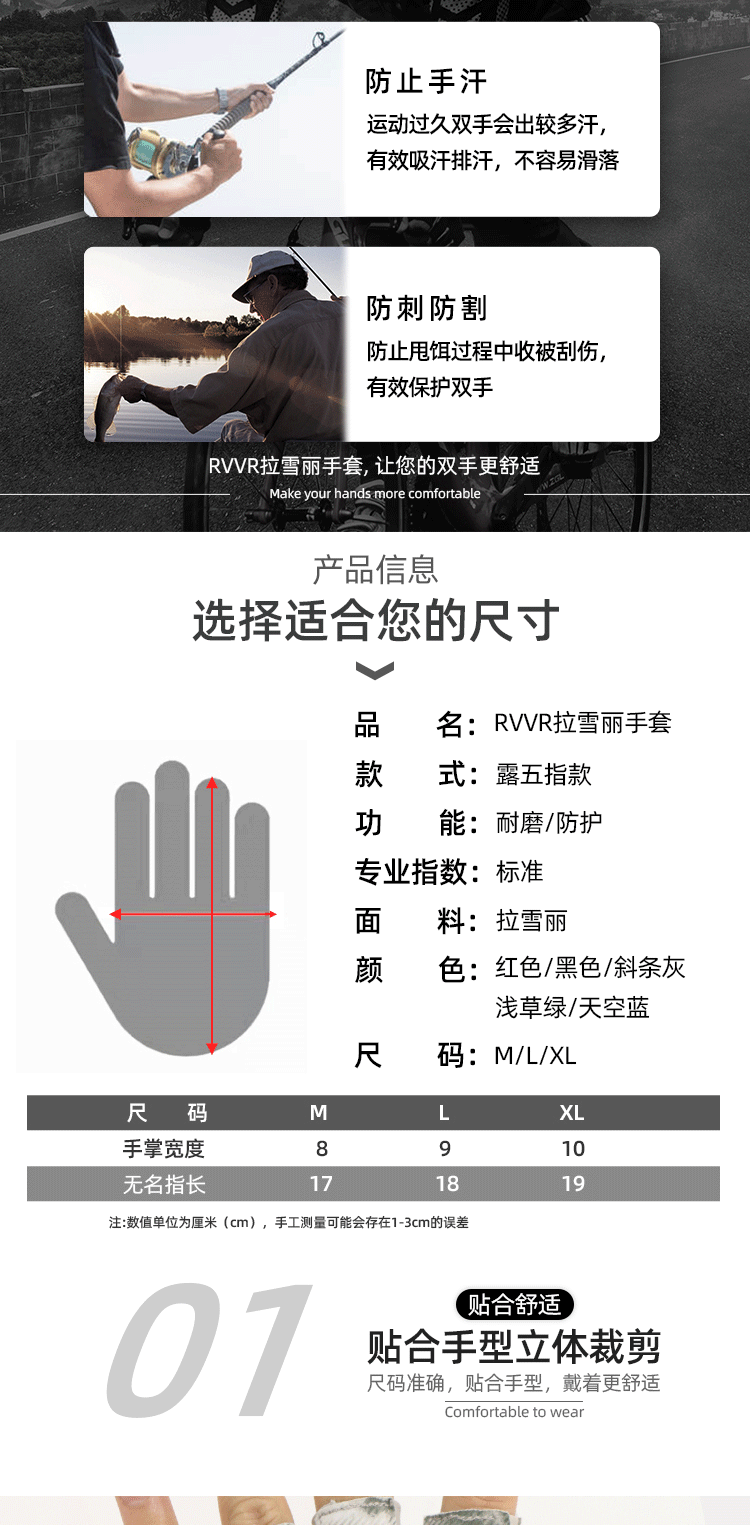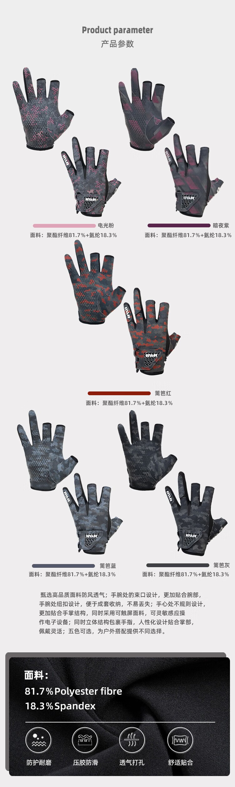 RVVR23 RVVR gloves Luya fishing special gloves protective anti-slip special Taiwan fishing rock fishing sea fishing half finger ice silk dew five fingers-01# gray honeycomb M