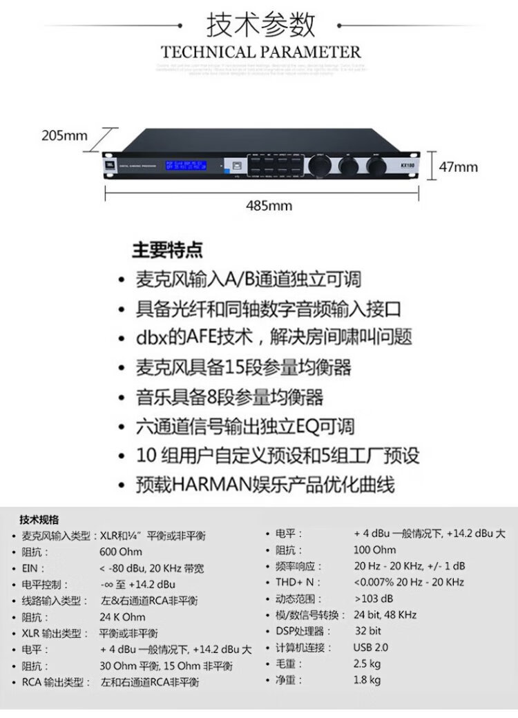 JBL KX180/VX8/VX9 professional KTV front-end digital effector balanced microphone reverberation anti-whistle feedback suppression KX180 original and authentic, you will lose ten if you fake it