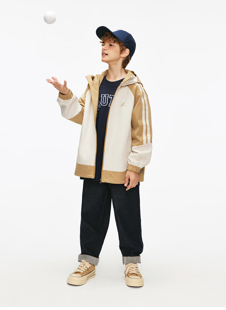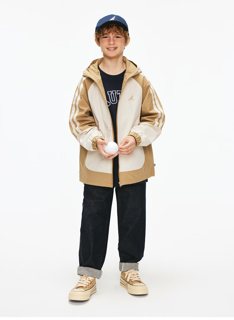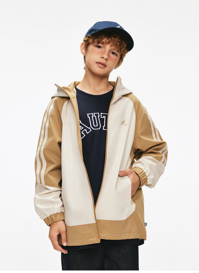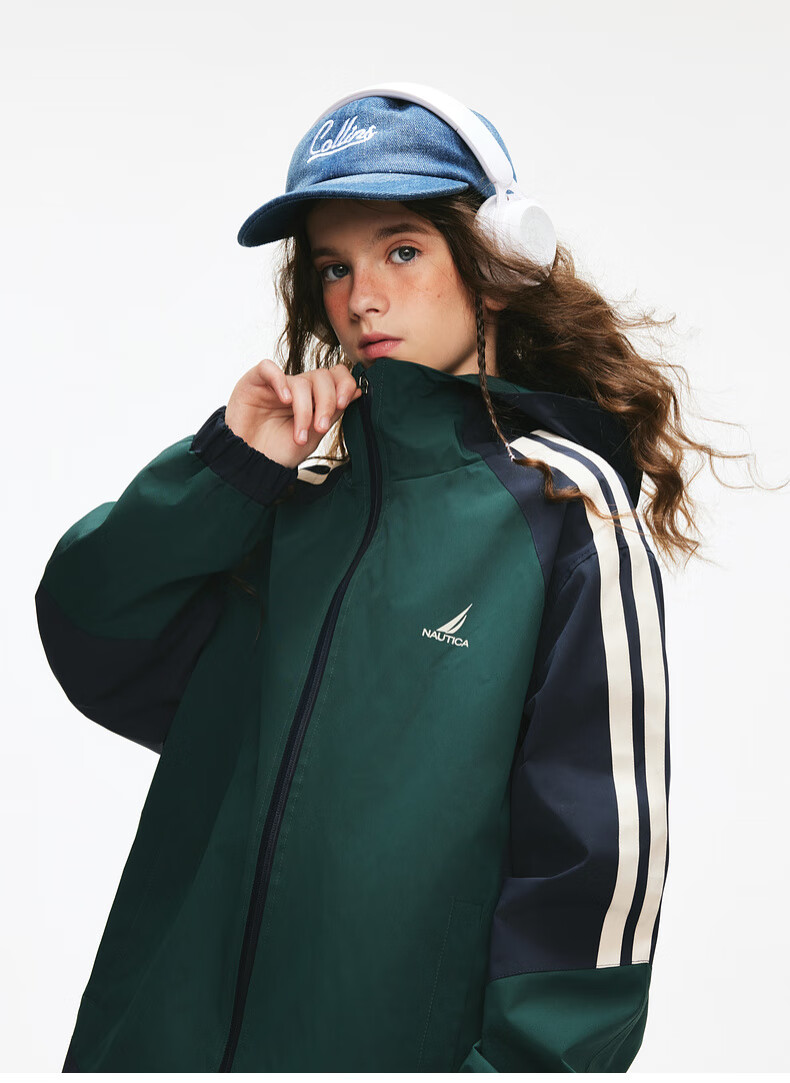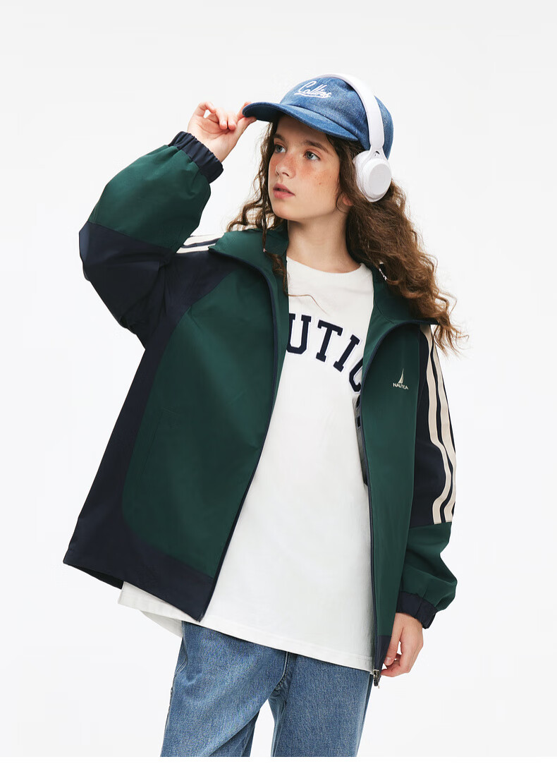 NAUTICA children's clothing boys and girls sports jacket hooded jacket spring and autumn children's American retro dark green/blue (2025 model) 165