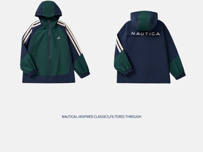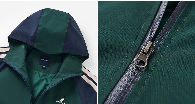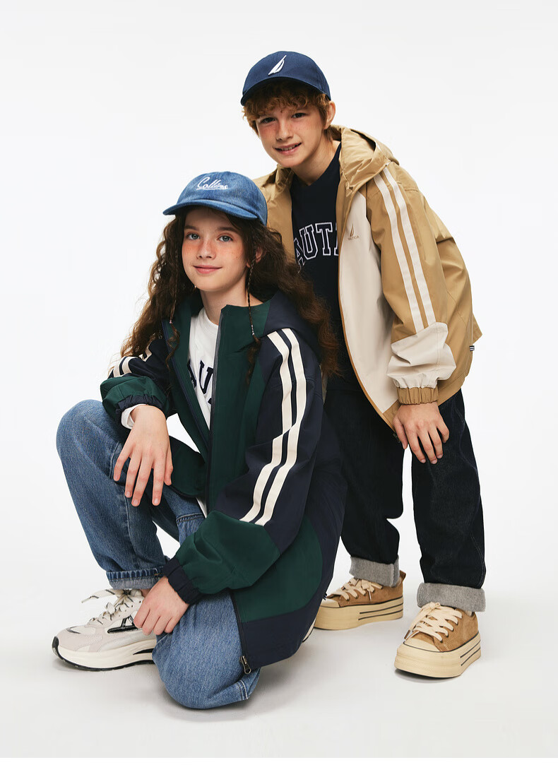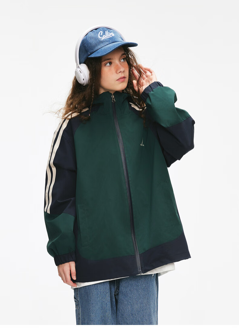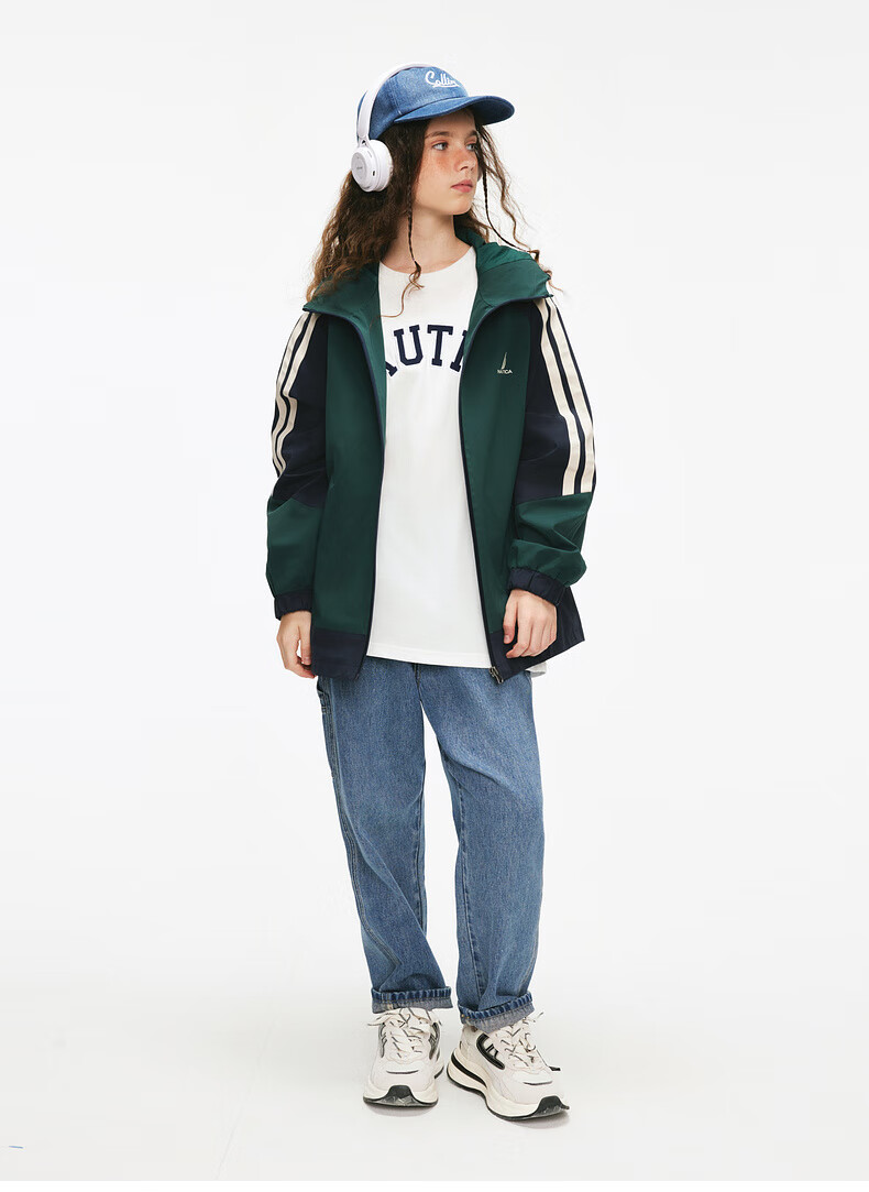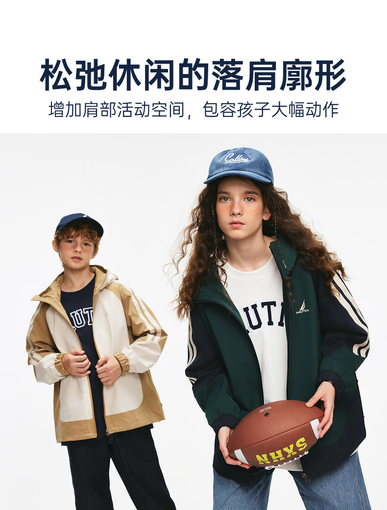 NAUTICA children's clothing boys and girls sports jacket hooded jacket spring and autumn children's American retro dark green/blue (2025 model) 165