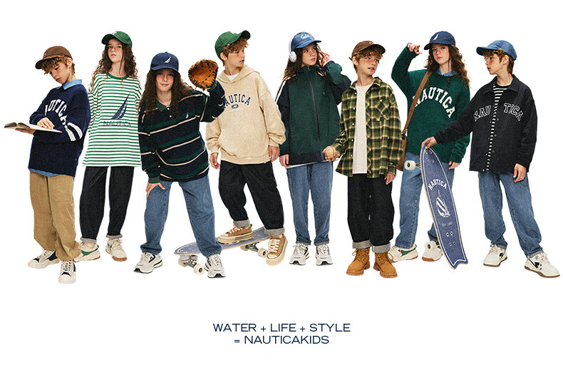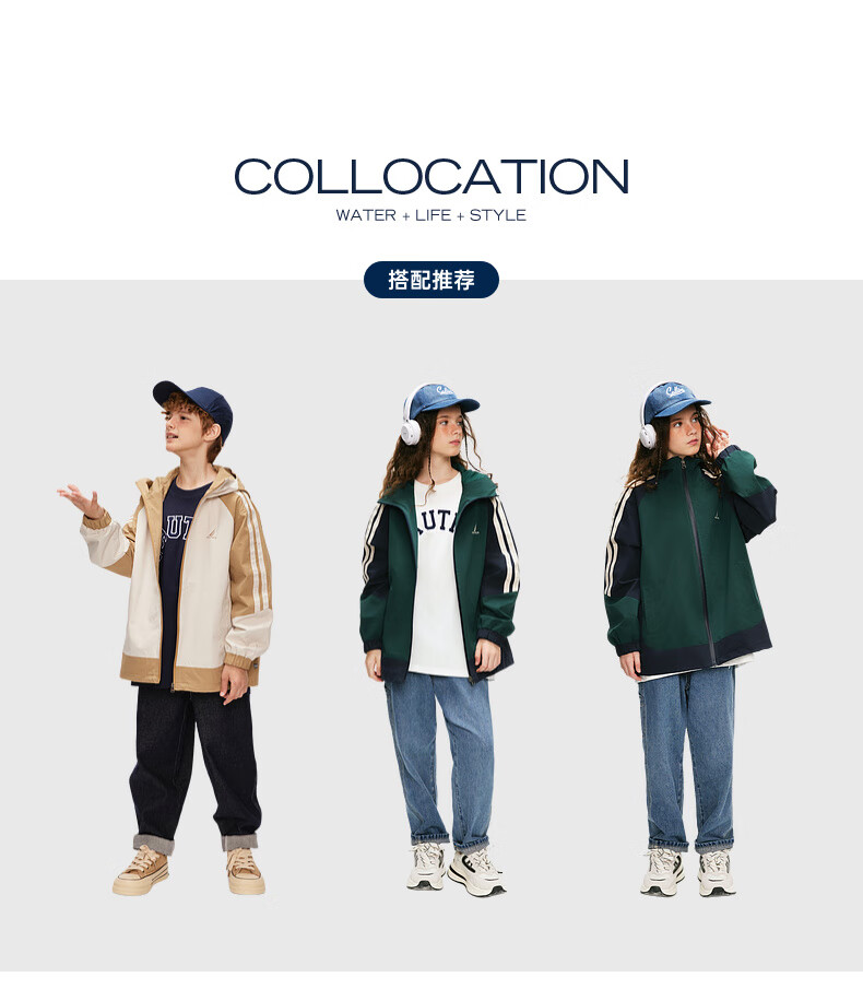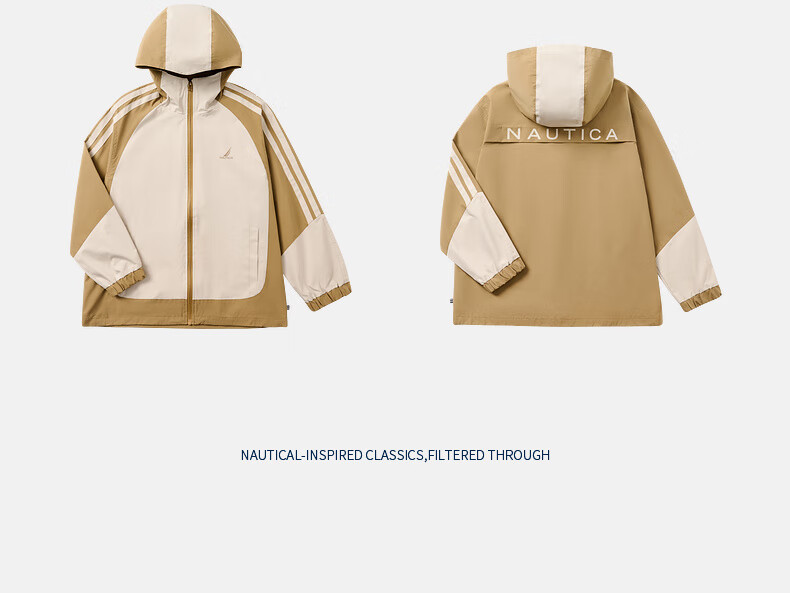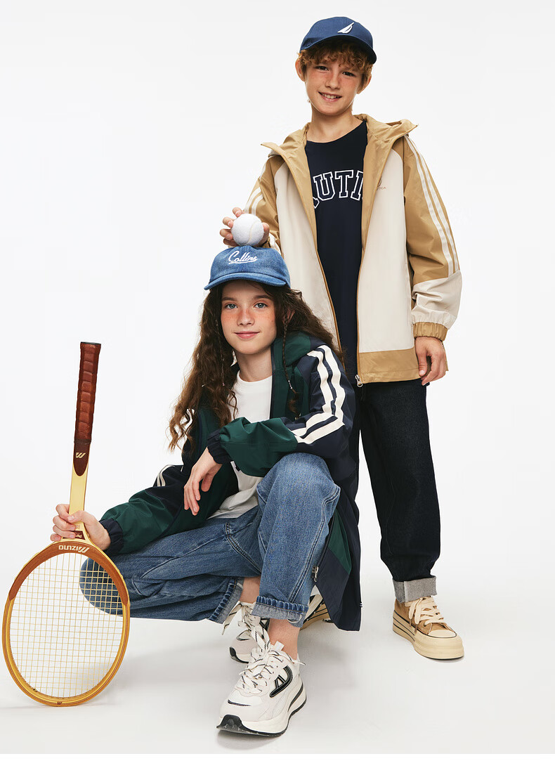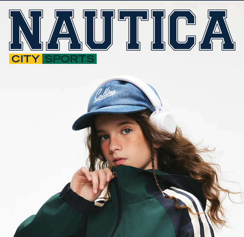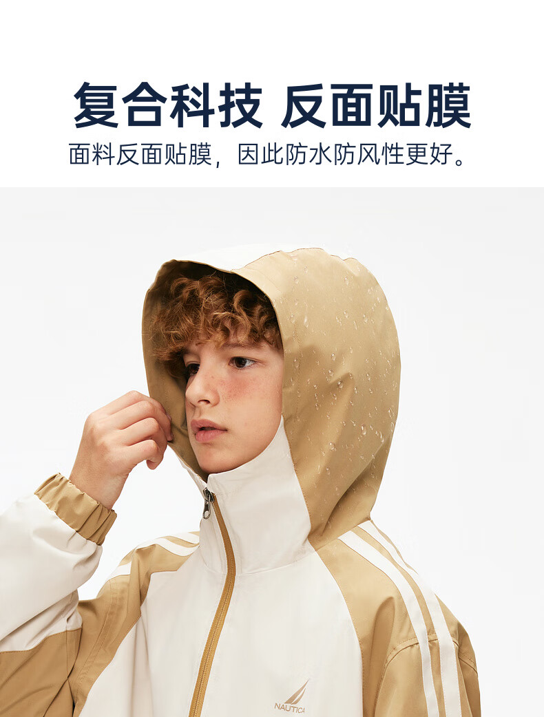 NAUTICA children's clothing boys and girls sports jacket hooded jacket spring and autumn children's American retro dark green/blue (2025 model) 165