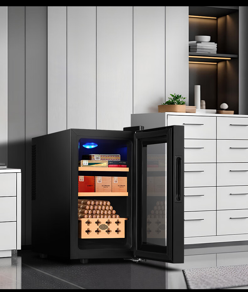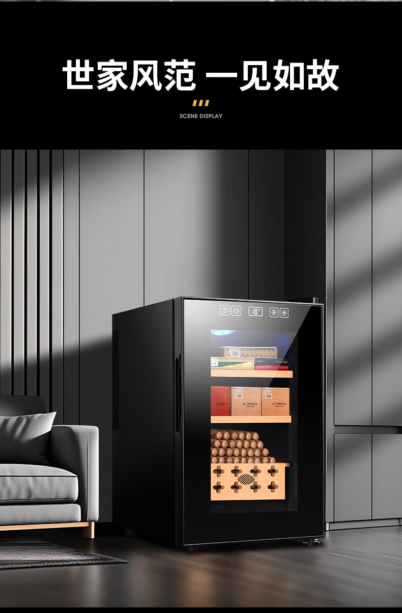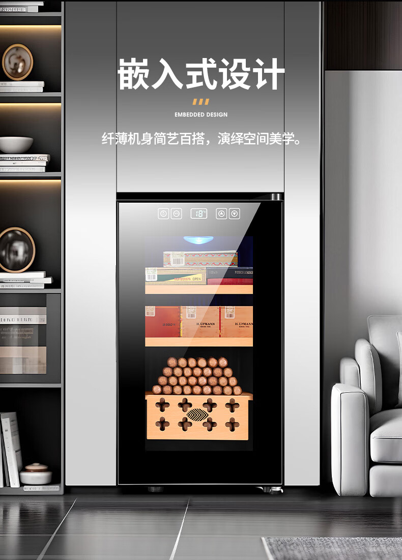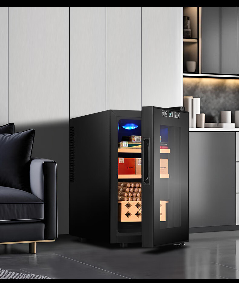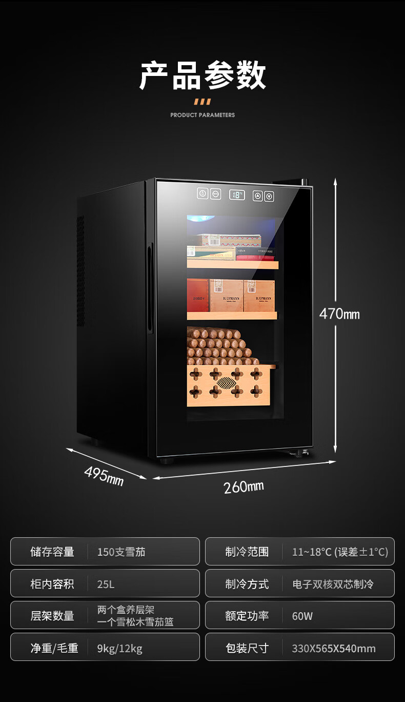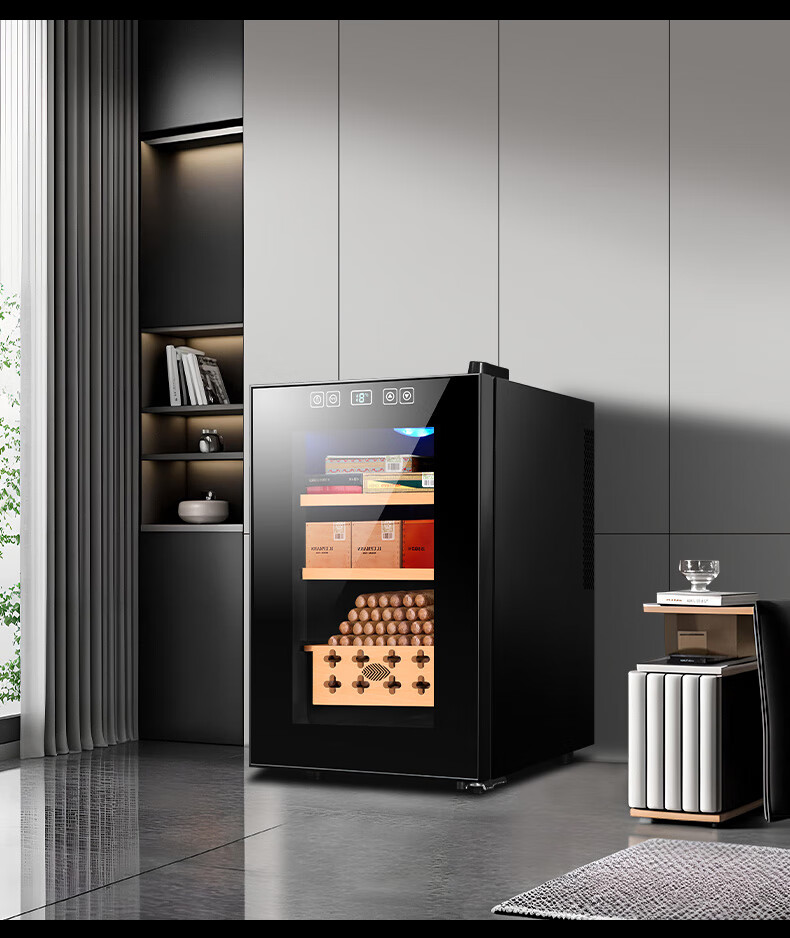 Cigarking cigar cabinet 26C temperature controlled moisturizing air-cooled embedded dual-core refrigeration cedar wood alcoholized small cigar and wine cabinet full cigar model 26L