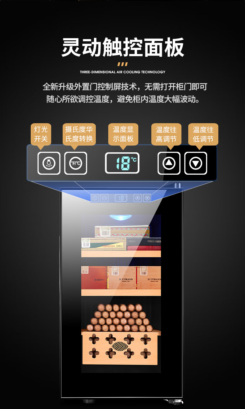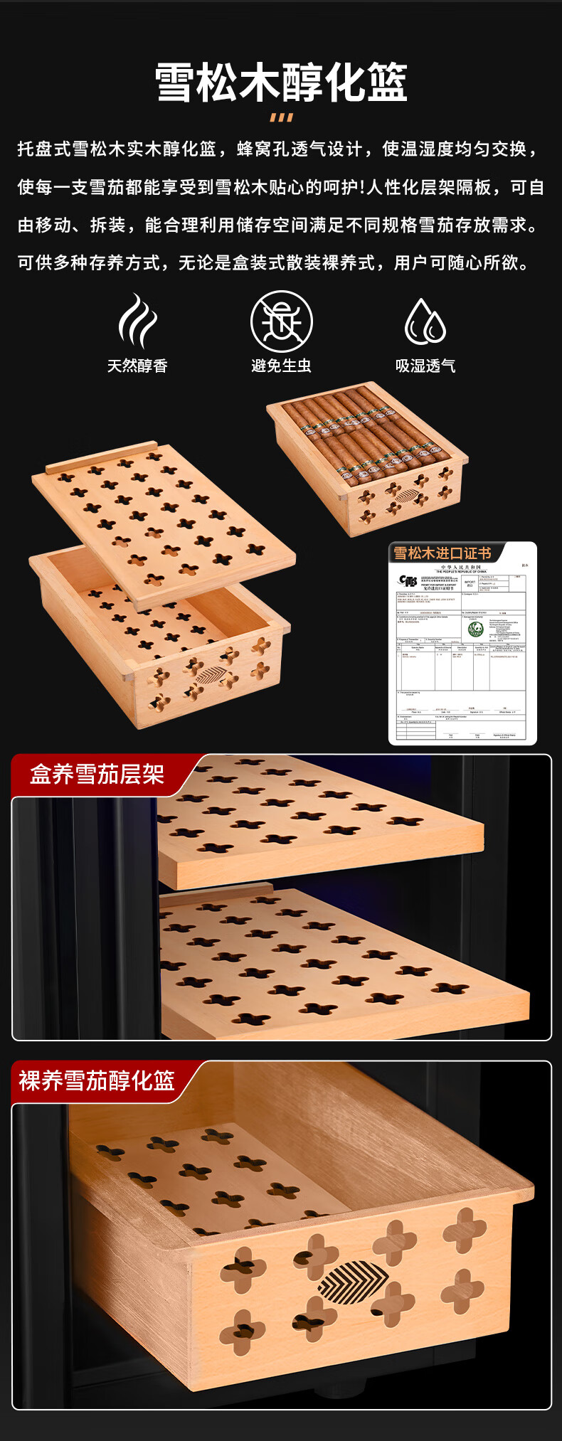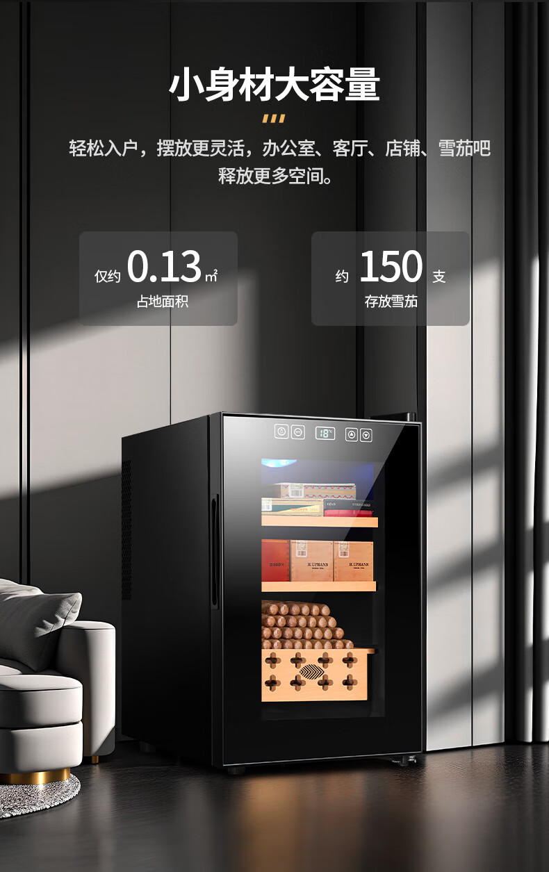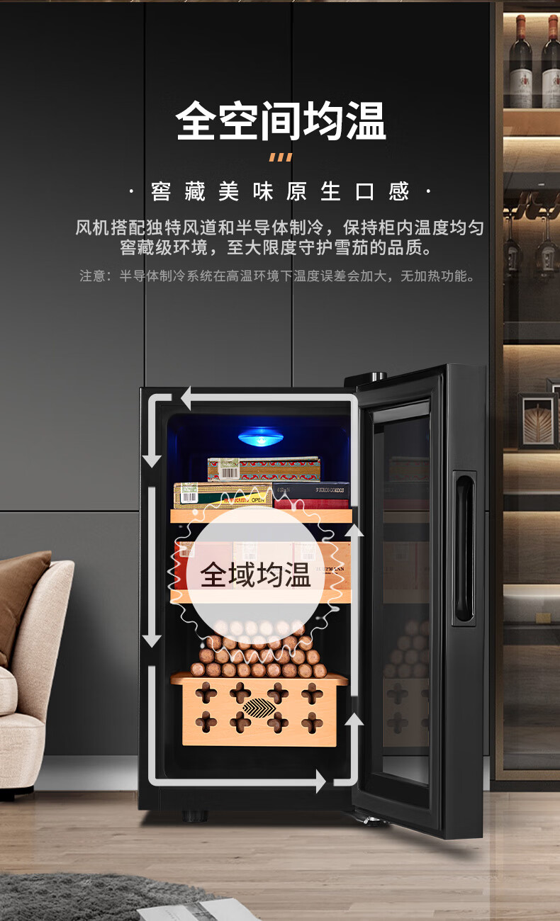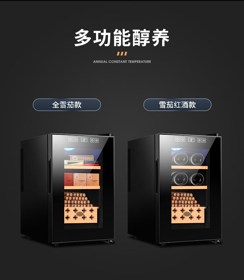 Cigarking cigar cabinet 26C temperature controlled moisturizing air-cooled embedded dual-core refrigeration cedar wood alcoholized small cigar and wine cabinet full cigar model 26L