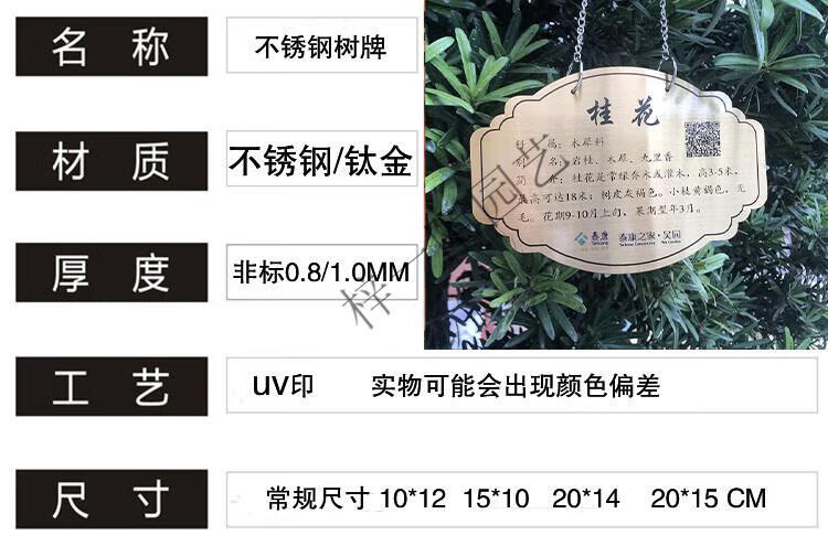 Customized stainless steel tree sign scenic spot plant greening flower sign tree introduction hanging sign ground sign 20x15cm