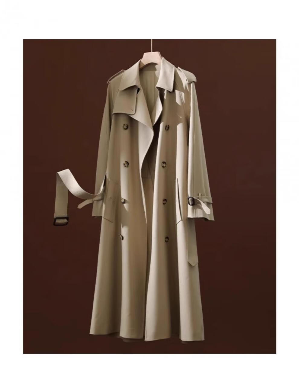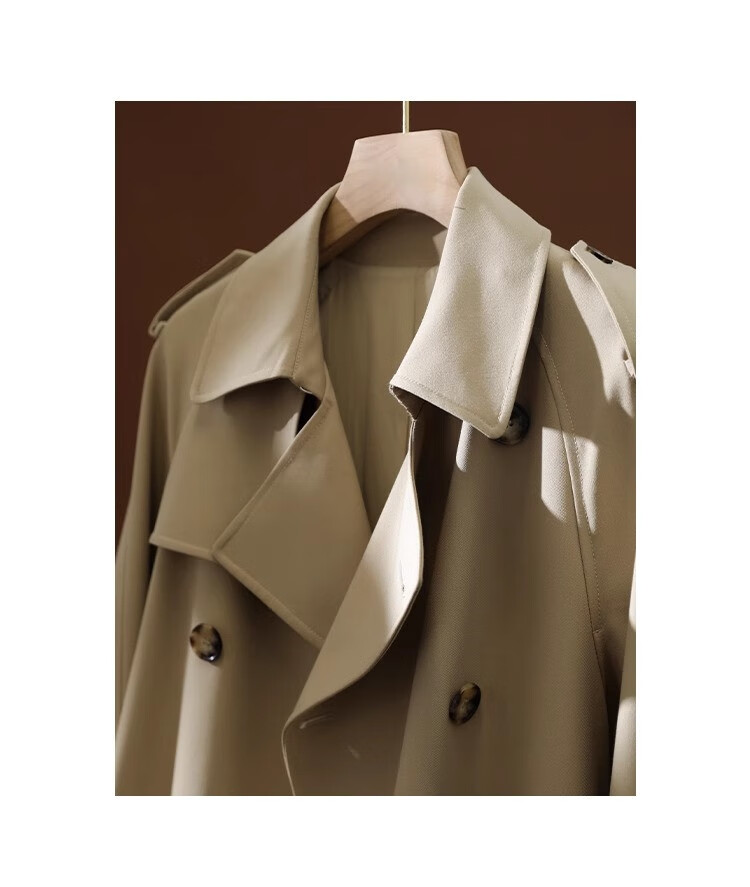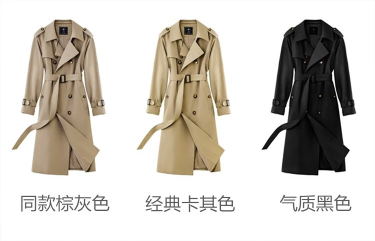 Woodpecker high-end khaki windbreaker jacket for women 2024 new spring and autumn medium and long style small British style Korean style popular khaki M 117-128Jin Jin is equal to 0.5 kg