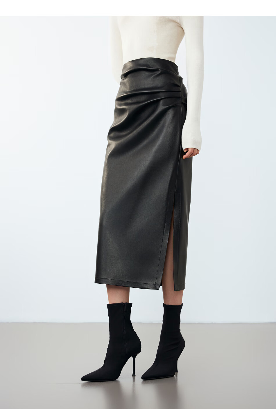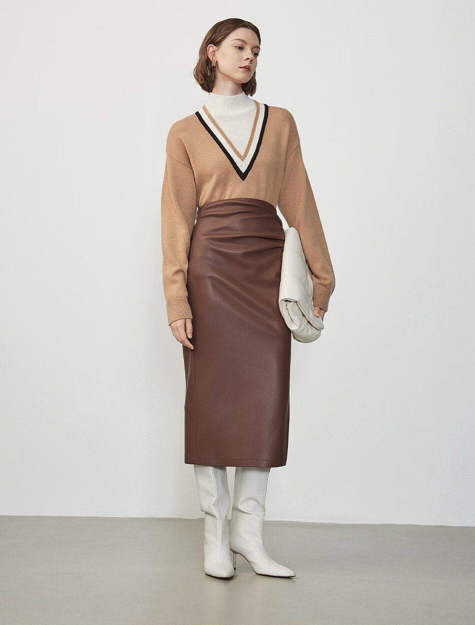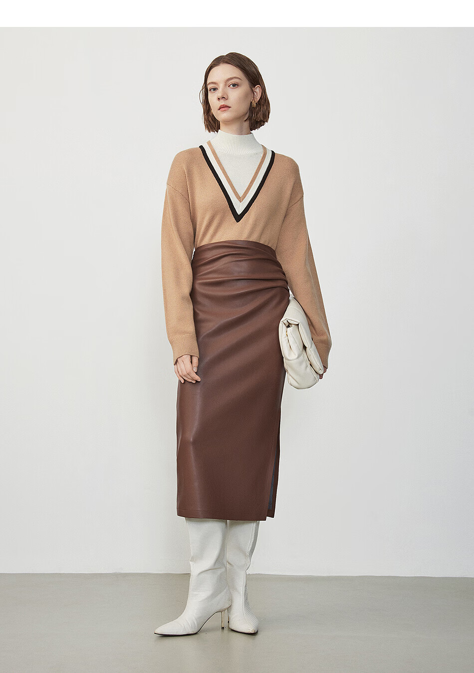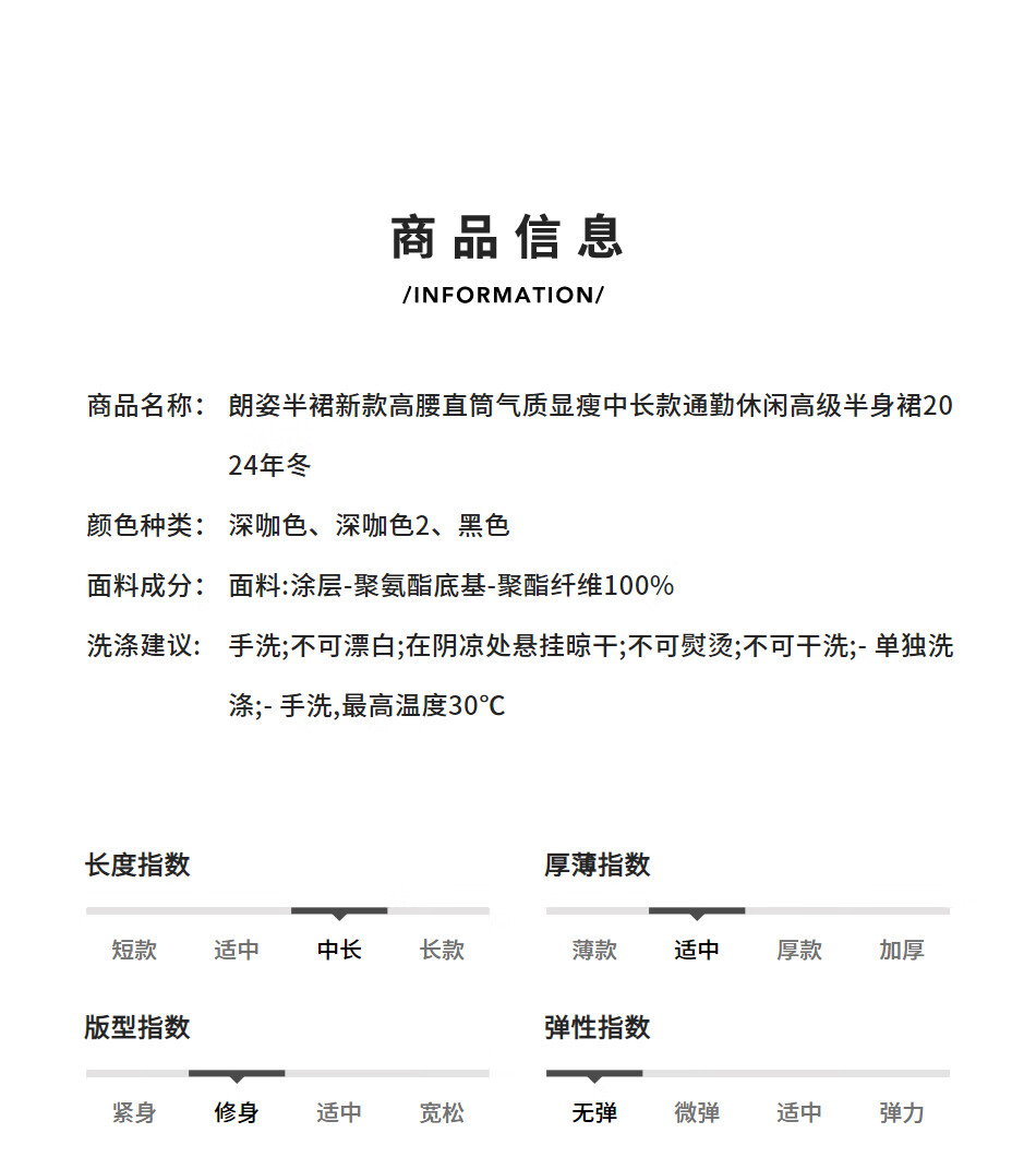 Langzi retro high-waist straight temperament slim slim leather skirt mid-length commuter casual skirt new winter style dark coffee color 2 M