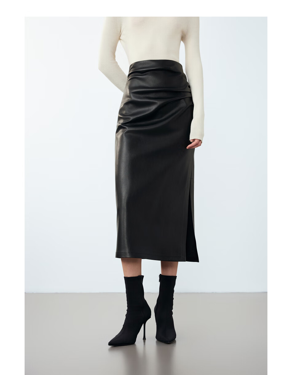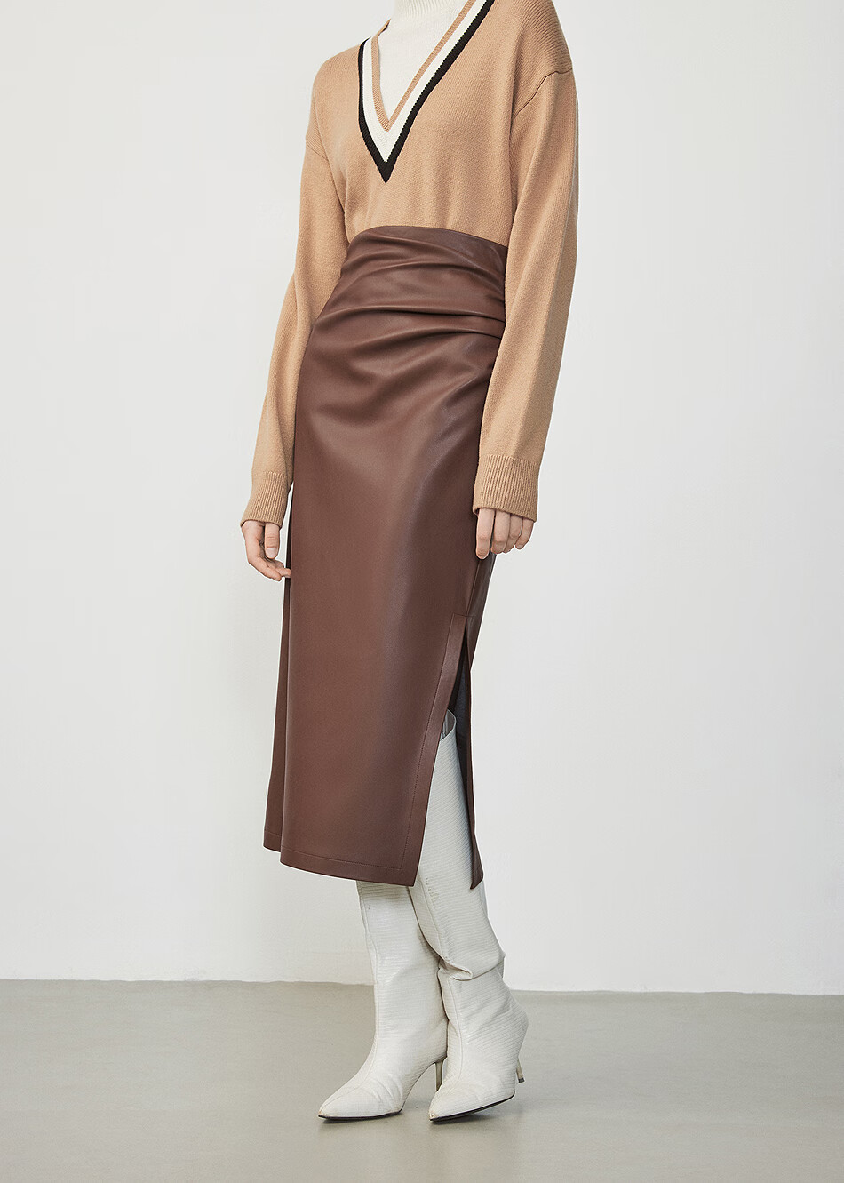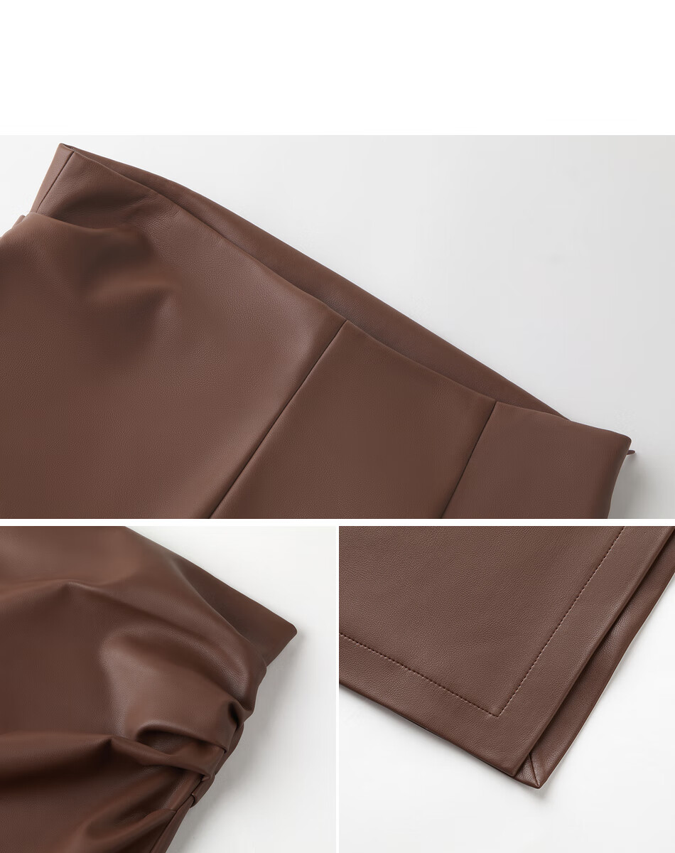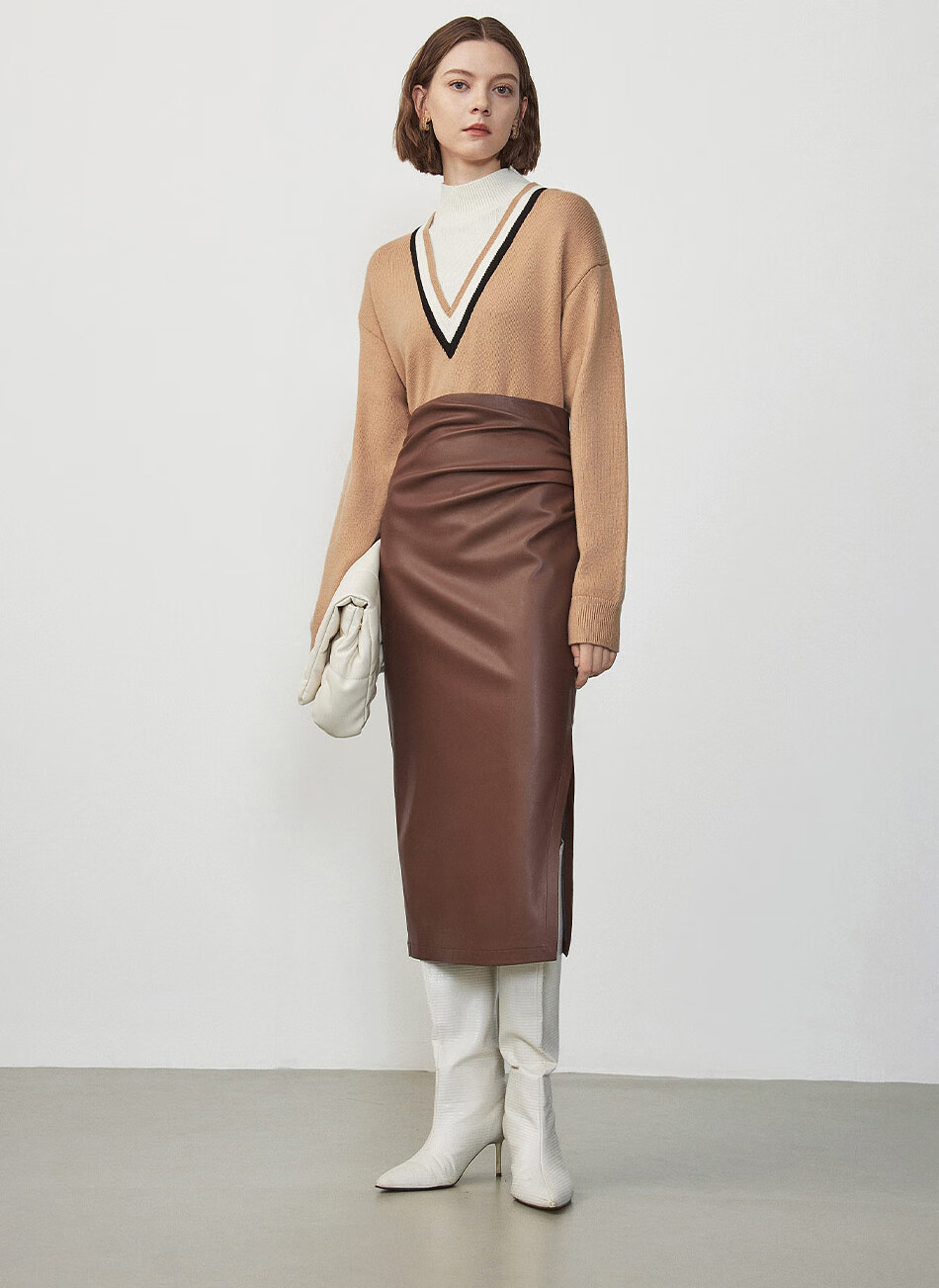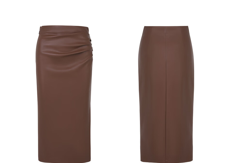 Langzi retro high-waist straight temperament slim slim leather skirt mid-length commuter casual skirt new winter style dark coffee color 2 M