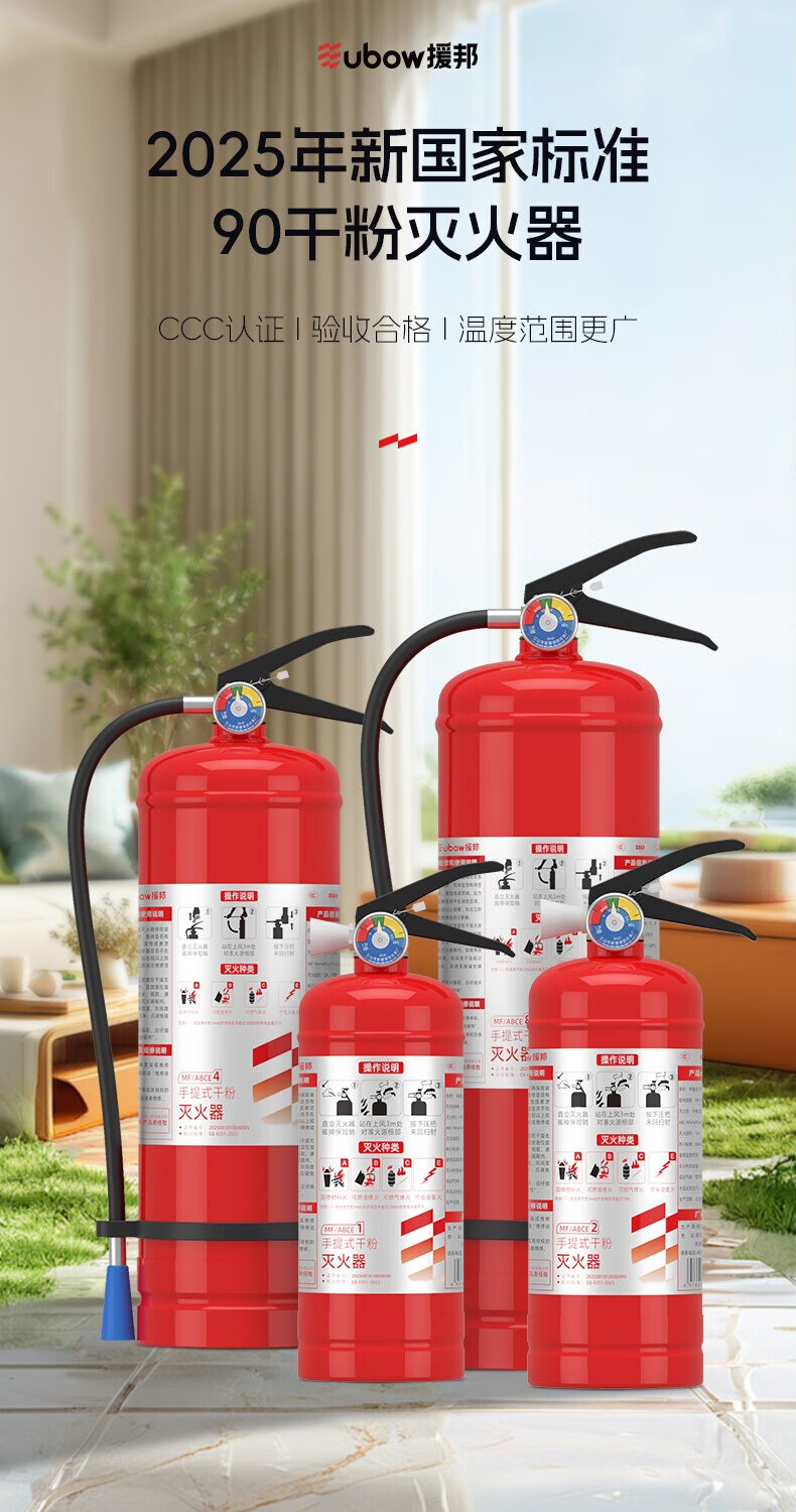Yuanbang New National Standard Dry Powder Fire Extinguisher National Fire Protection Certification MFZ/ABC Vehicle Mounted Home Commercial 5kg Double Set (Fire Extinguisher*2+Carbon Steel Box)