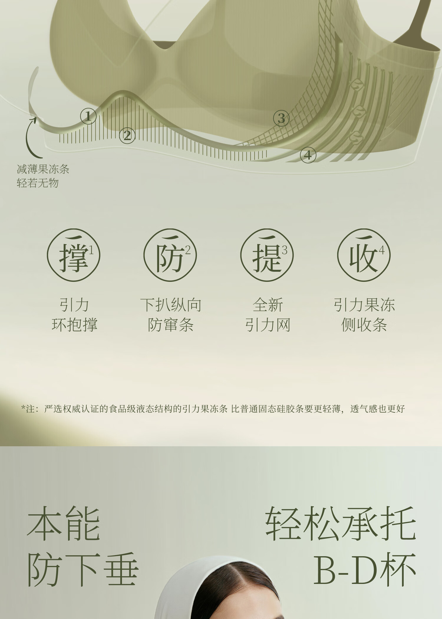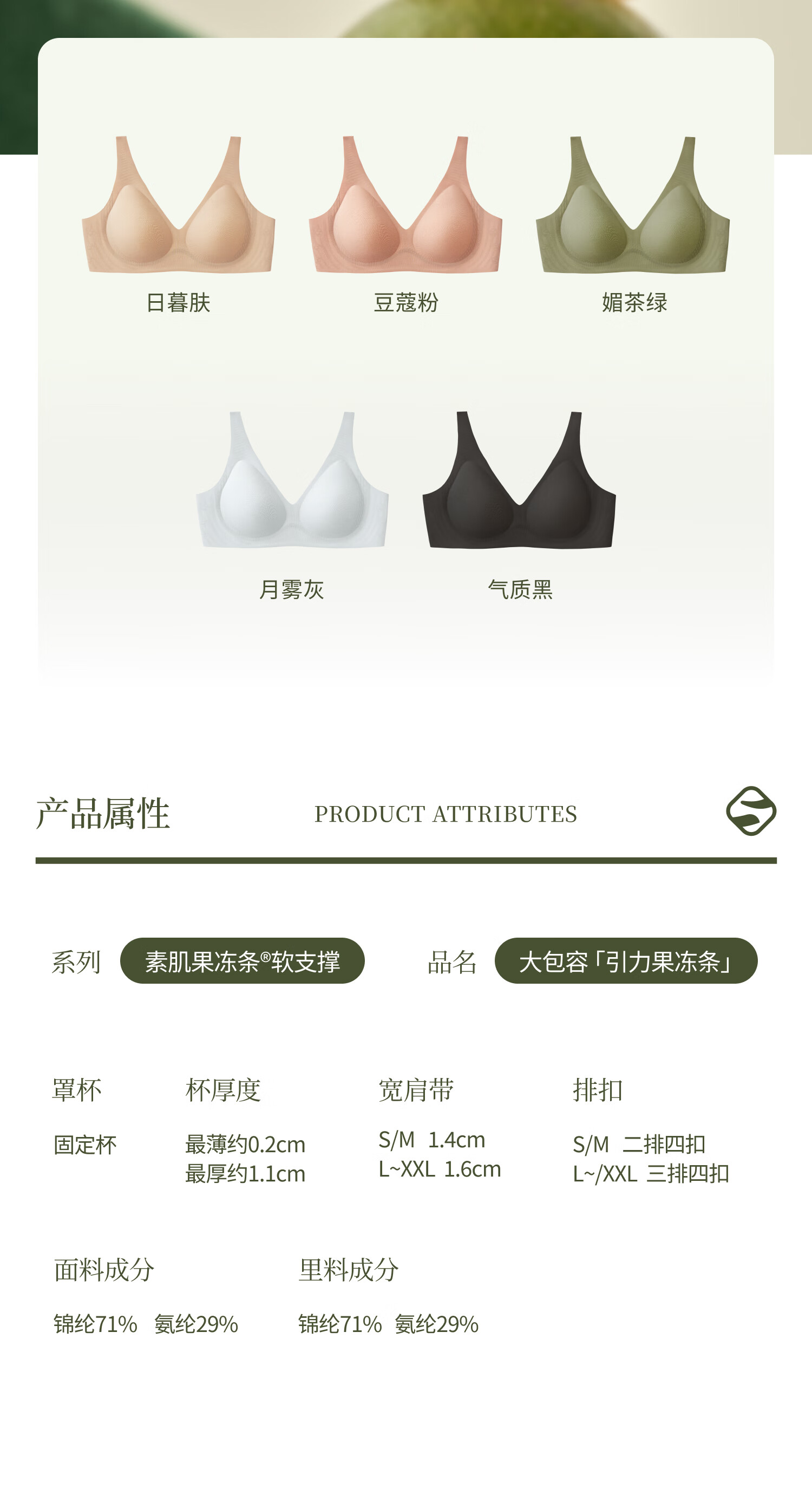 Suji Liangpin Gravity Jelly Strips Soft Support Seamless Wireless Gathering and Slimming Bra for Large Breasts and Underwear for Women Cardamom Pink L (80B, 80C, 80D)