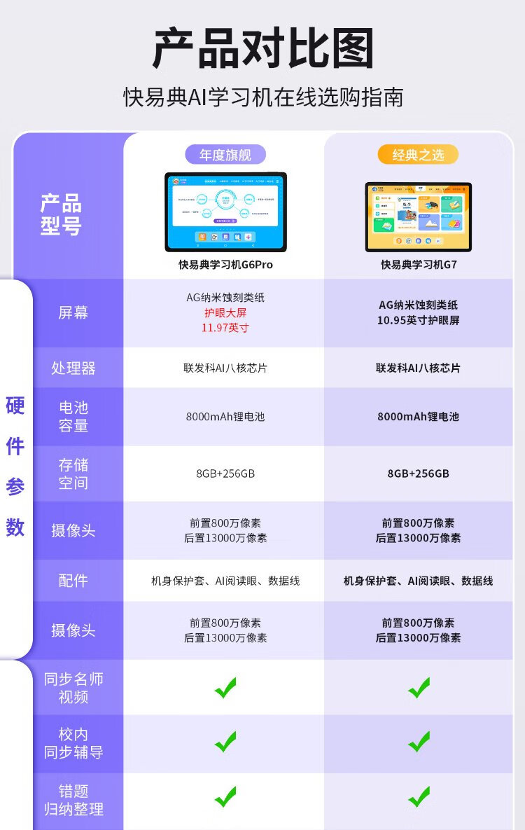 Kuaiyidian AI learning machine G7 student tablet learning and practicing all-in-one machine eye protection screen tablet learning machine primary school and high school curriculum synchronization full science homework tutoring machine hot selling recommendation-G7 8G+256G