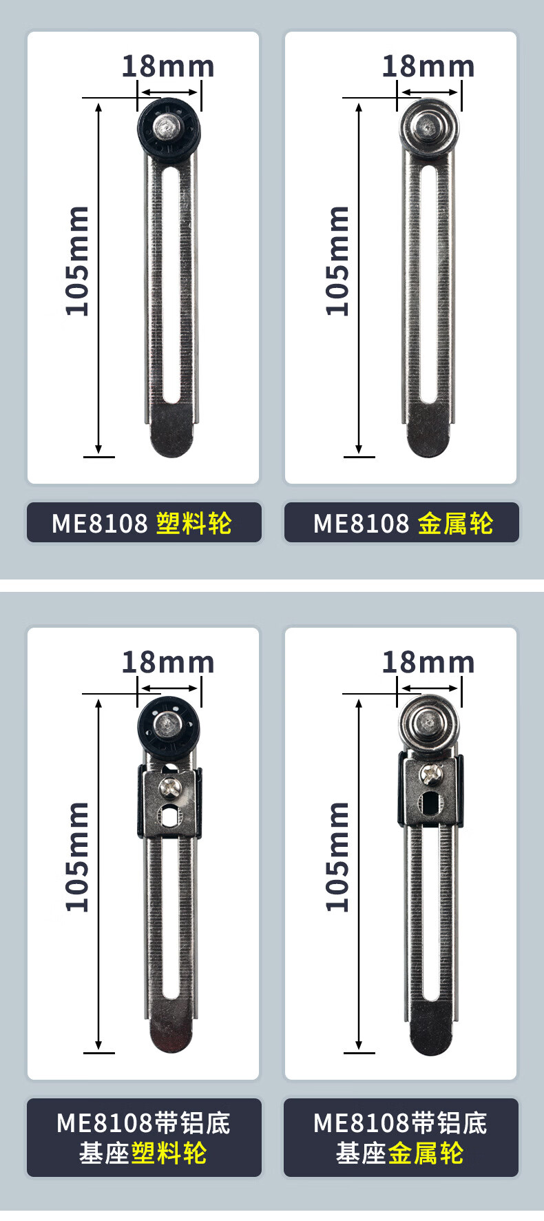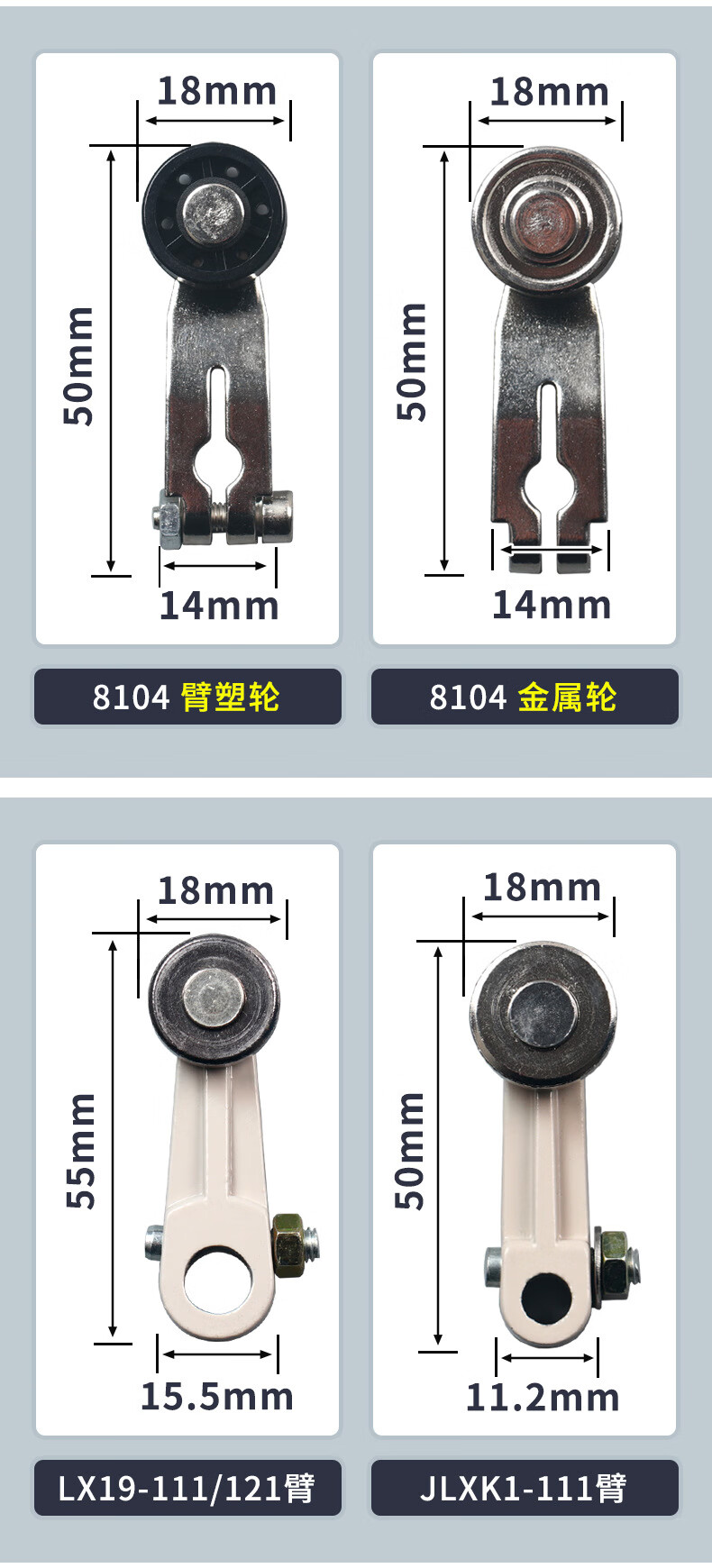 JLXK1 travel limit switch accessories ME-8108 metal operating lever LXK3 arm strip aluminum arm metal roller ME8108 metal wheel