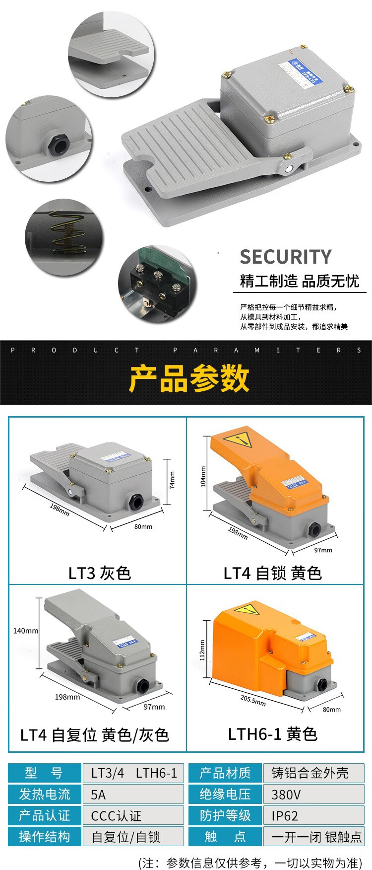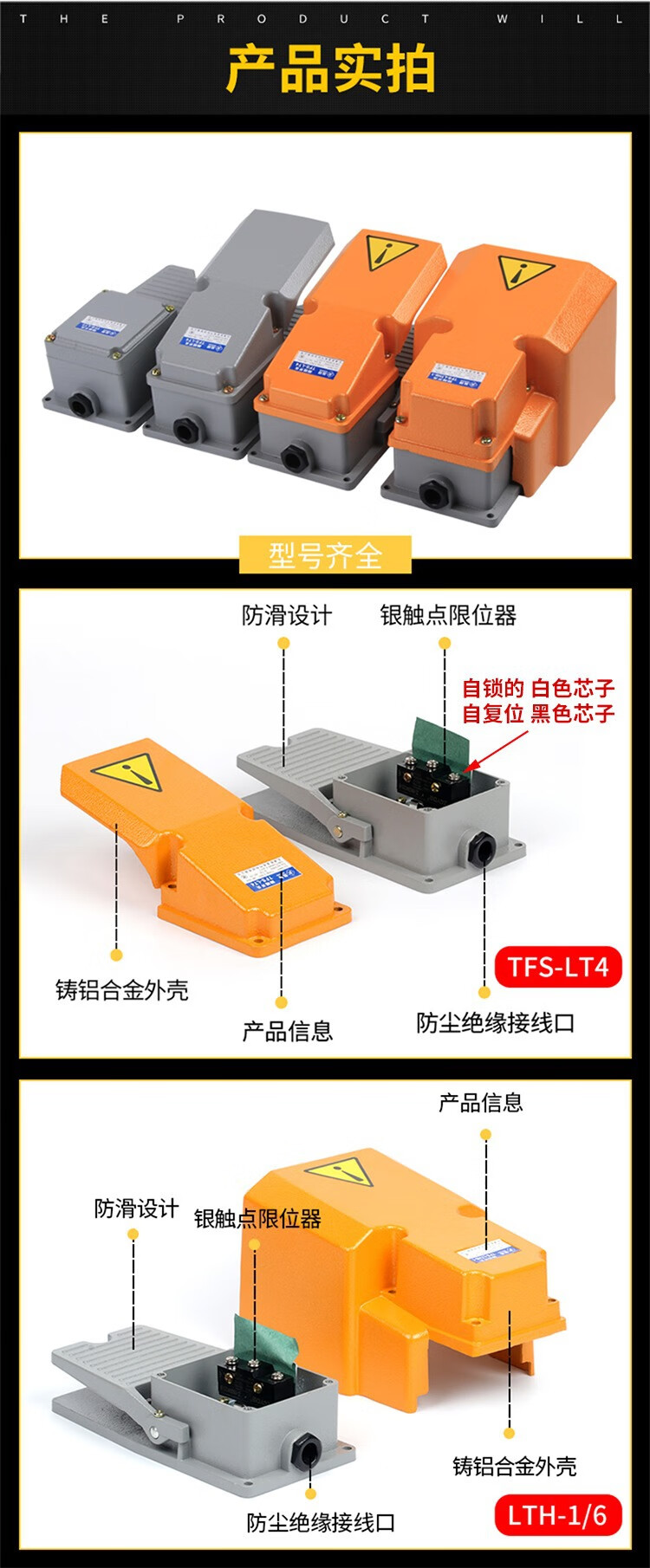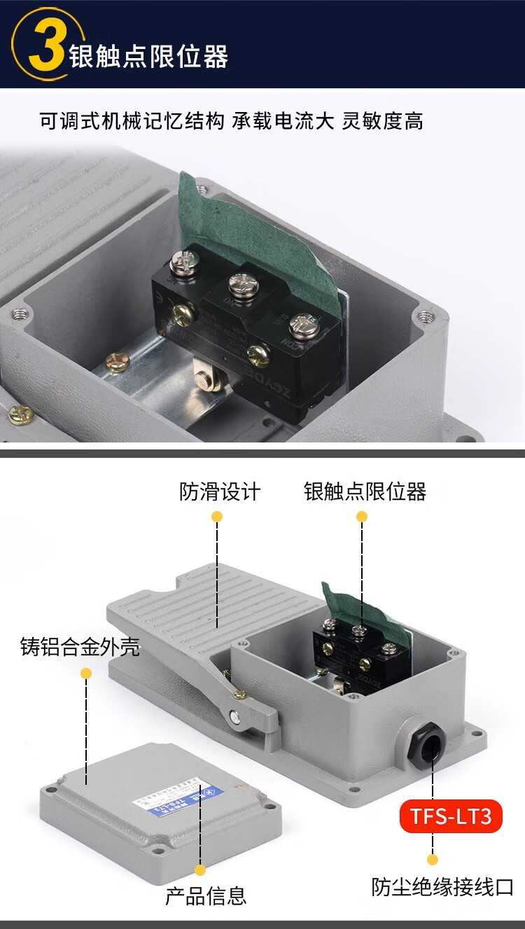 LT4 foot switch foot pedal machine tool accessories LTH-1/6 waterproof LT3 foot pedal control switch 220V LT4 aluminum shell yellow silver dot