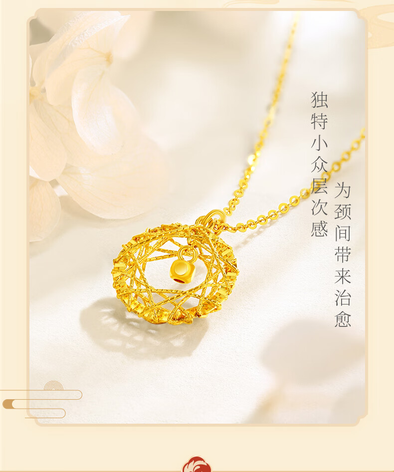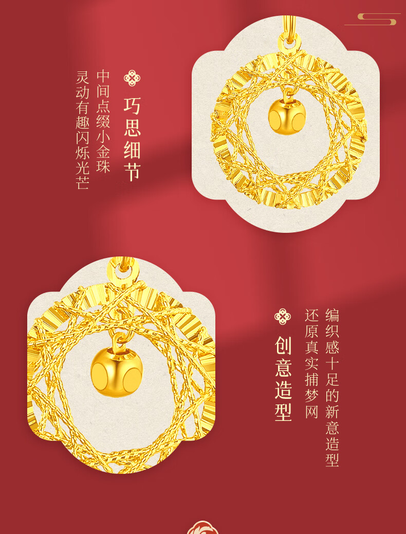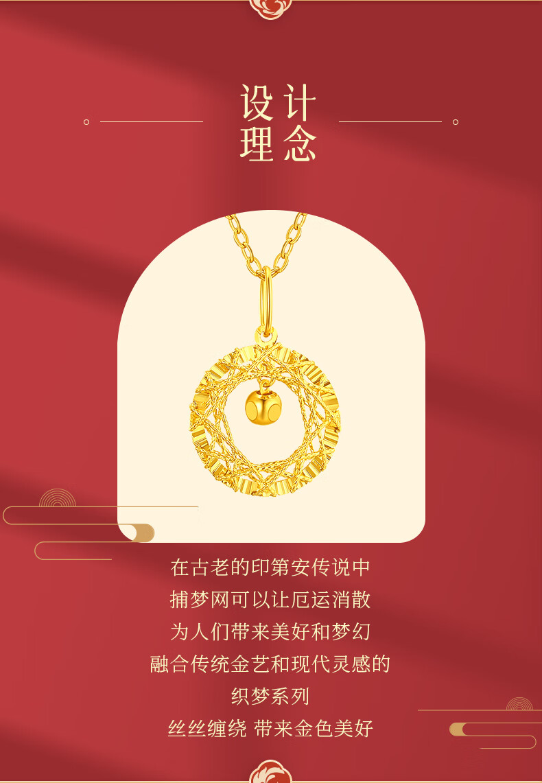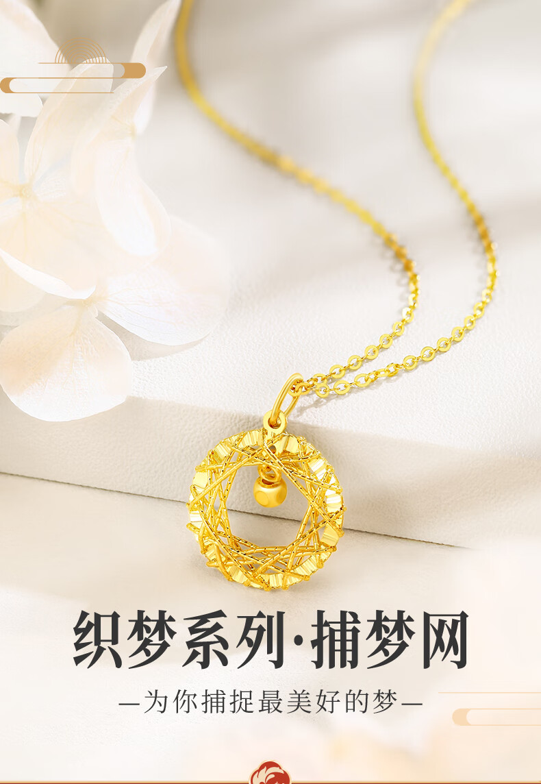 Lao Fengxiang Dream Catcher Gold Pendant Women's Pure Gold 999 Mobius Necklace Valentine's Day Birthday Gift for Girlfriend Jingsuda Ring Dream Weaver Pendant About 1.05g Free Silver Chain