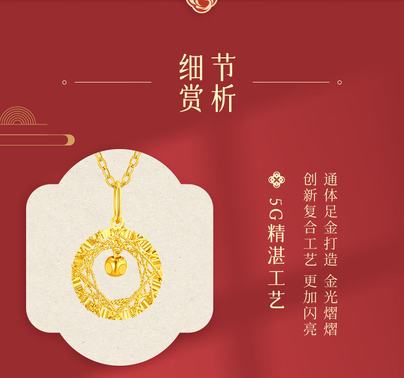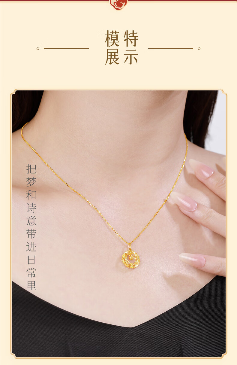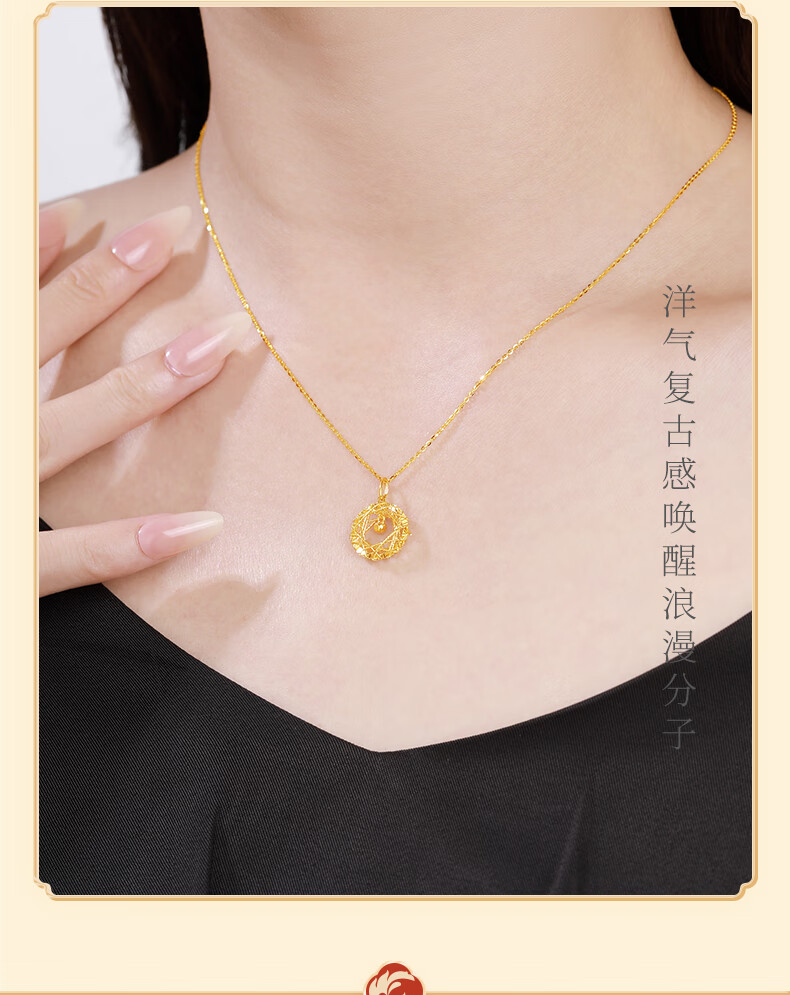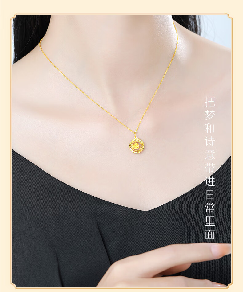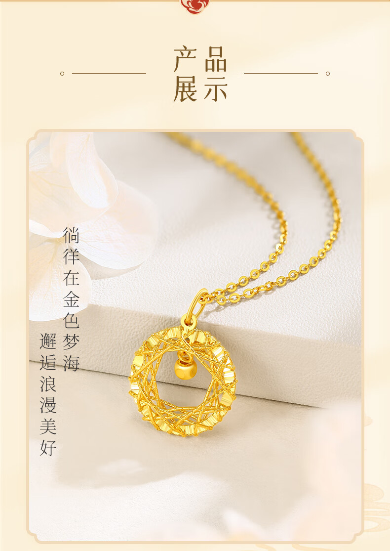 Lao Fengxiang Dream Catcher Gold Pendant Women's Pure Gold 999 Mobius Necklace Valentine's Day Birthday Gift for Girlfriend Jingsuda Ring Dream Weaver Pendant About 1.05g Free Silver Chain