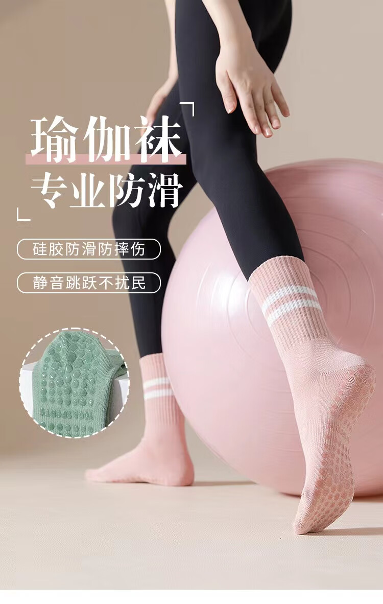 Yunxiang Sihai Yoga Socks Women's Non-Slip Fitness Dance Pilates Sports Socks Large Size Summer Mid-Tube Floor Socks Cotton Mid-Tube - Gray