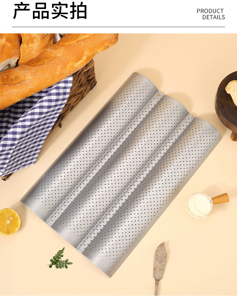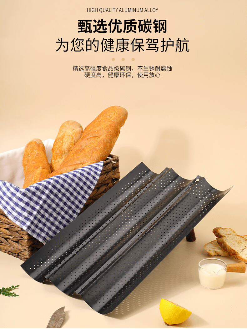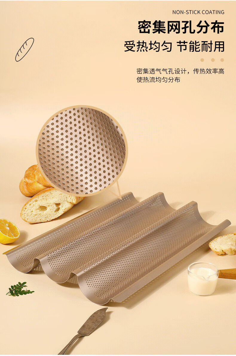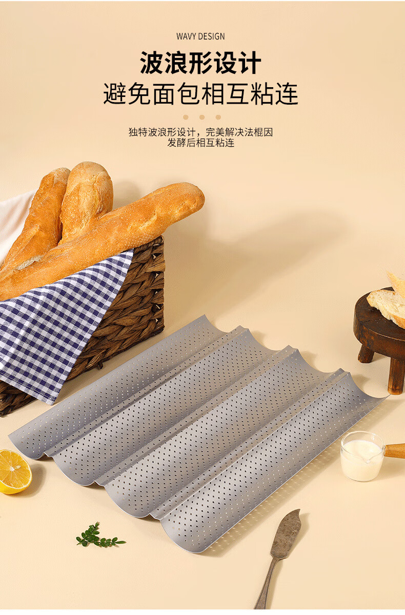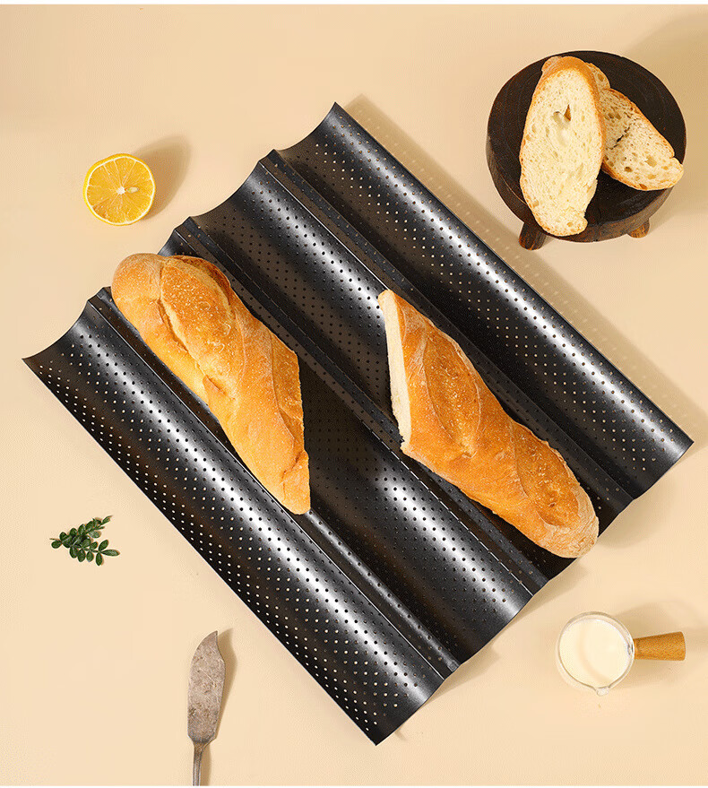 2/3/4 slot baguette baking pan rack for oven household baking long French bread toast mold wavy plate baking silver 4 slot baguette baking sheet