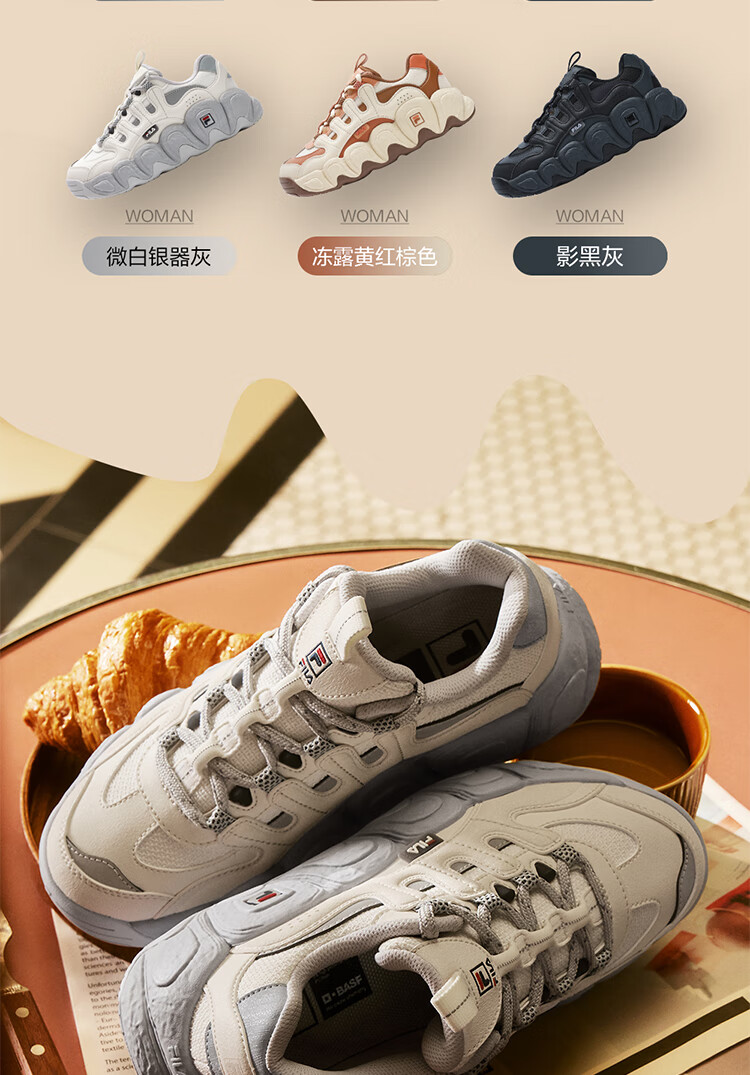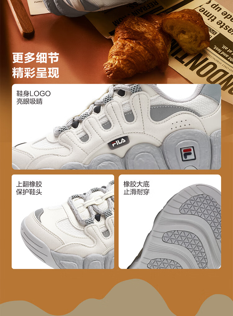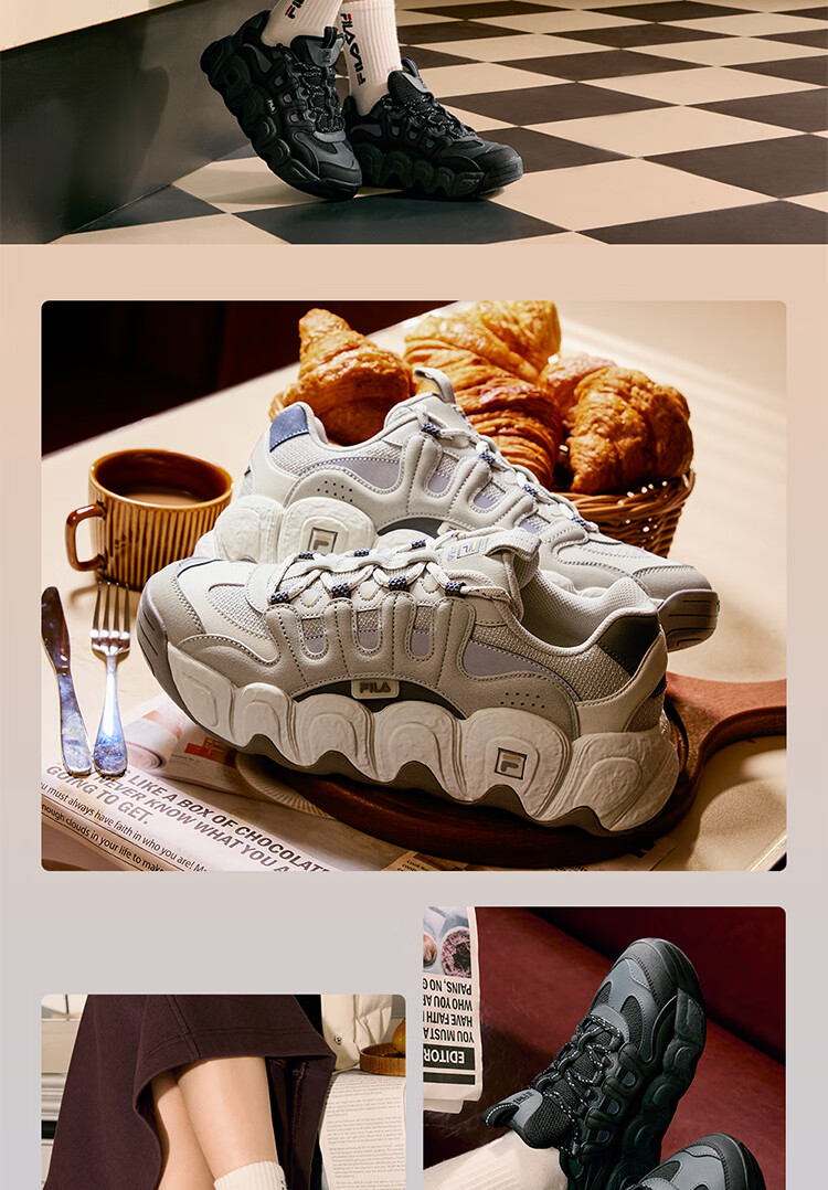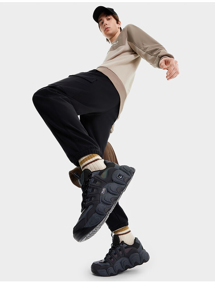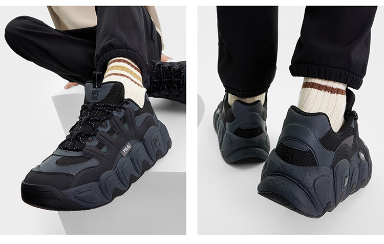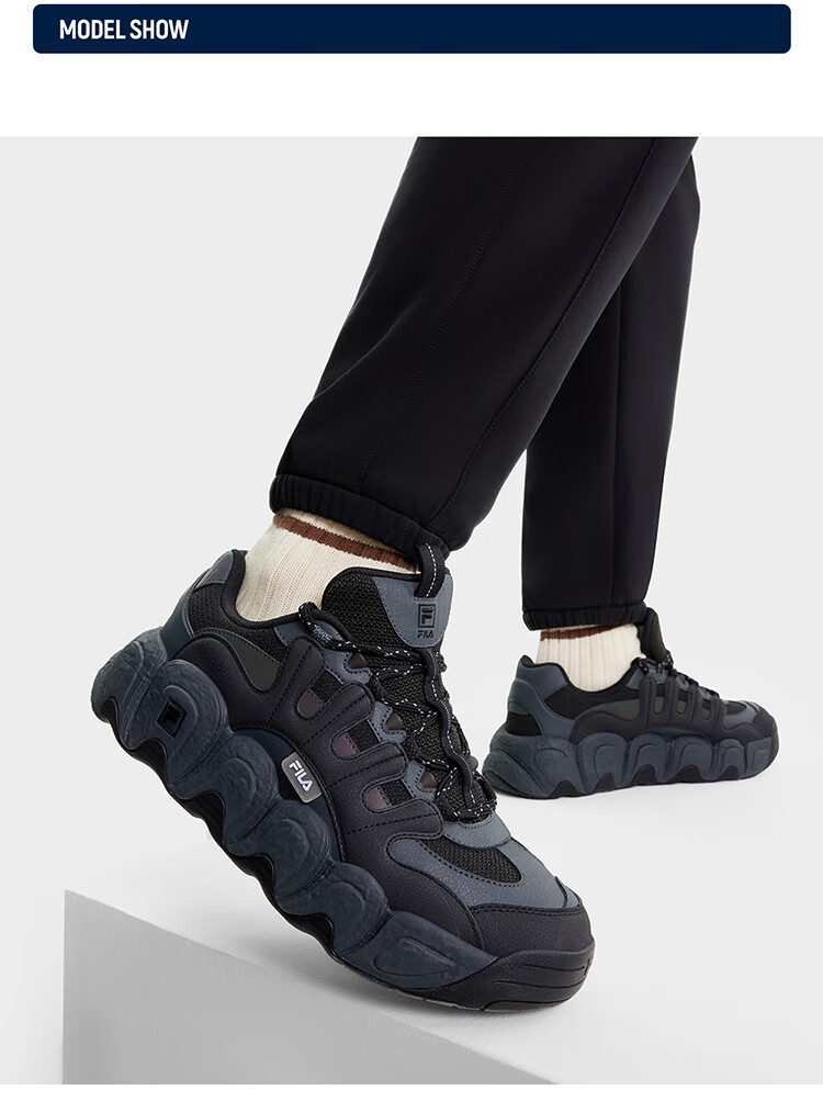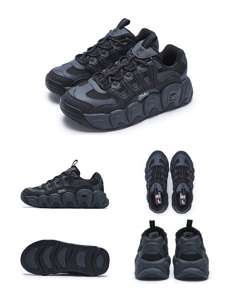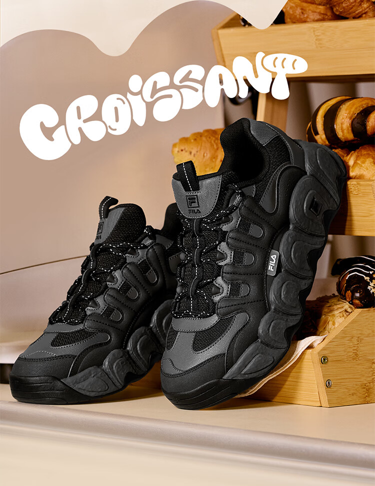 FILA official men's shoes CROISSANT modern sports shoes croissant shoes dad shoes black/shadow black gray-BC 42