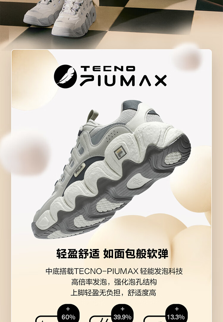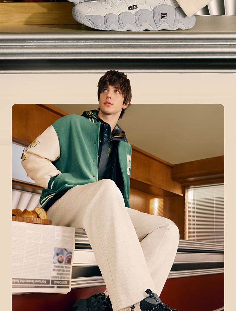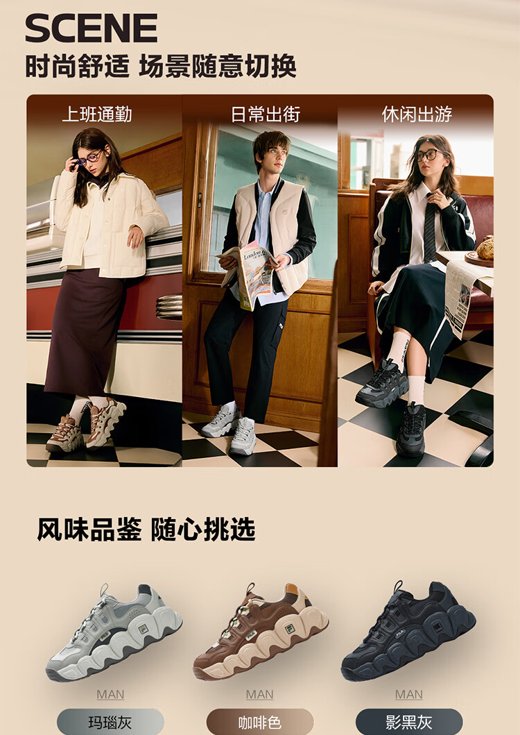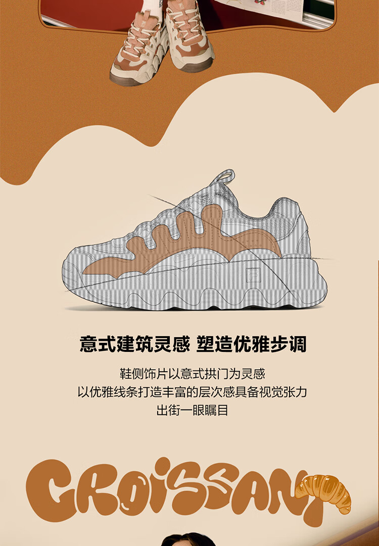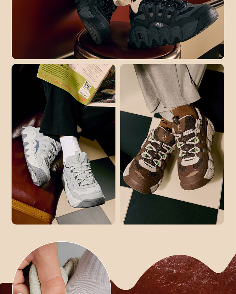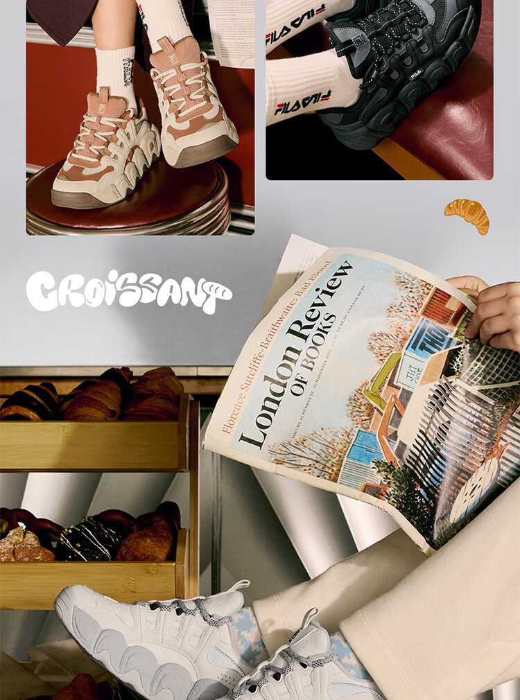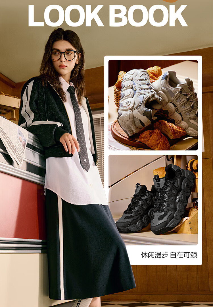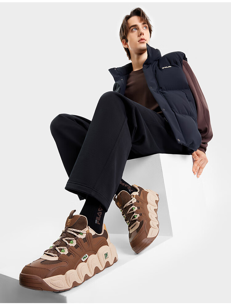 FILA official men's shoes CROISSANT modern sports shoes croissant shoes dad shoes black/shadow black gray-BC 42