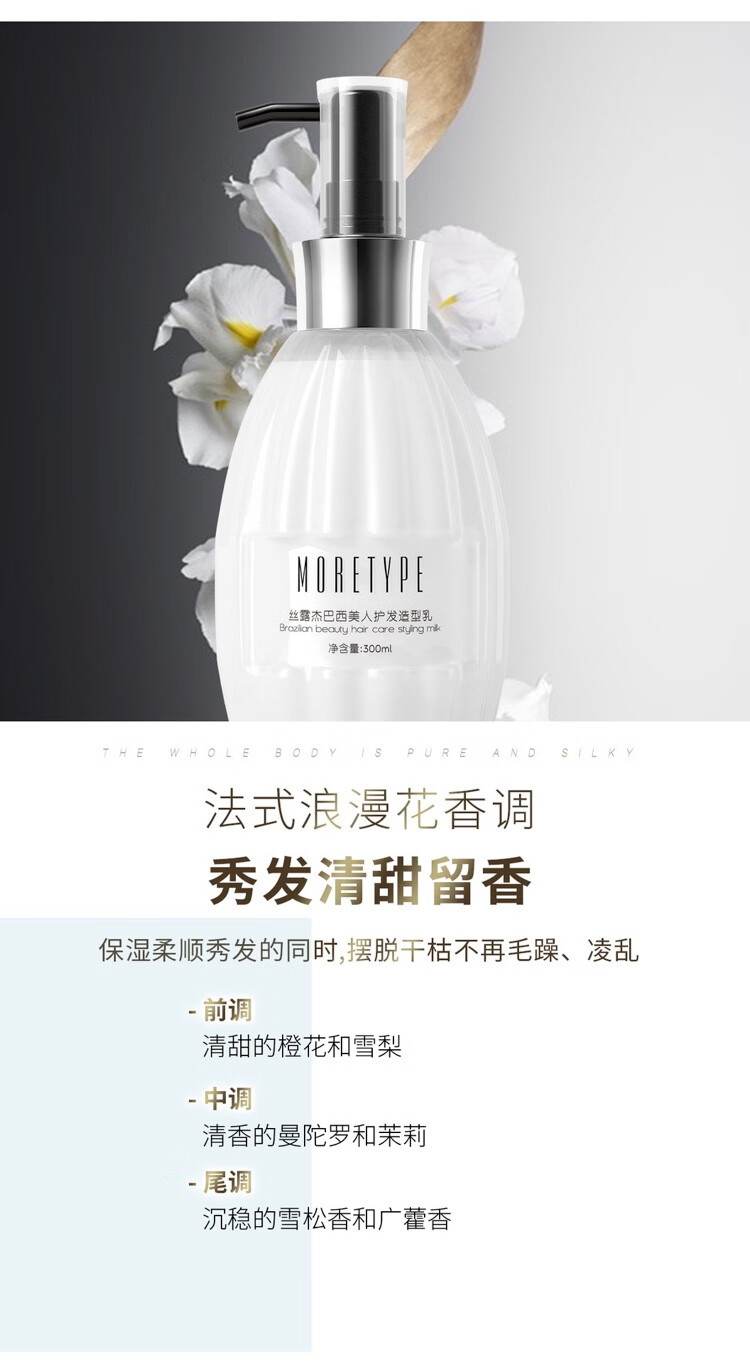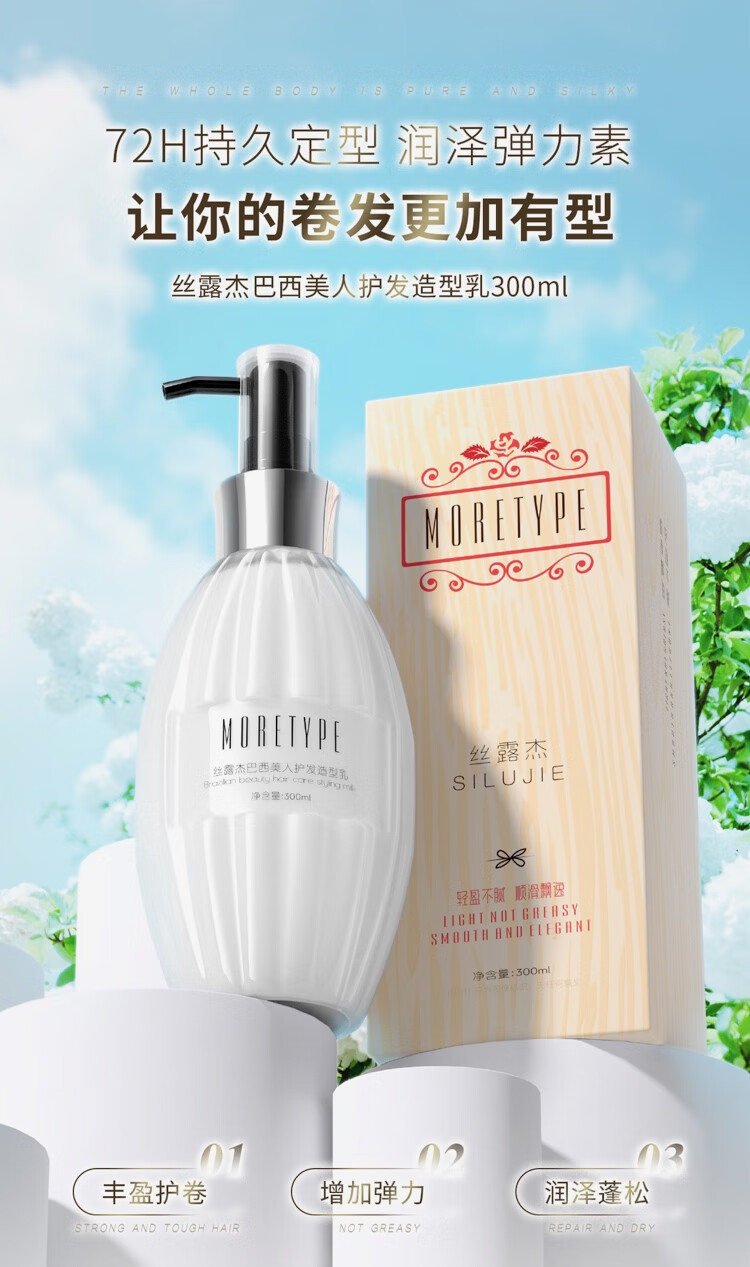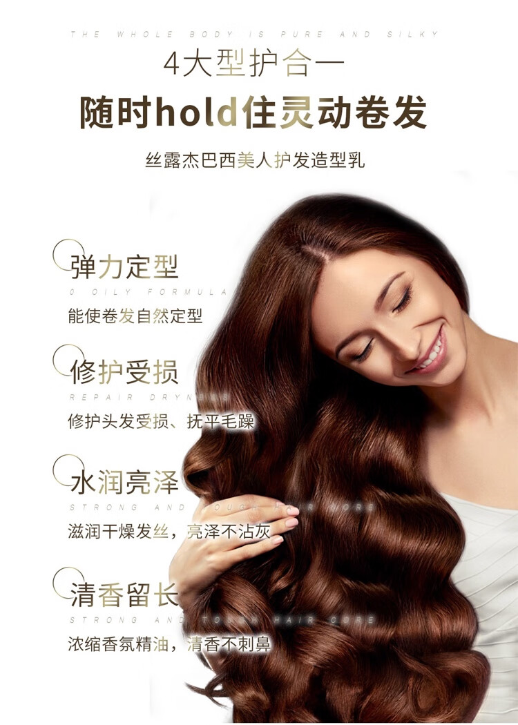 Silu Jess Luje Brazilian Beauty Hair Care Styling Milk No-Rinse Moisturizing Styling Repair Elastin 300ml Brightening and Softening Brazilian Beauty Curly Hair Cream
