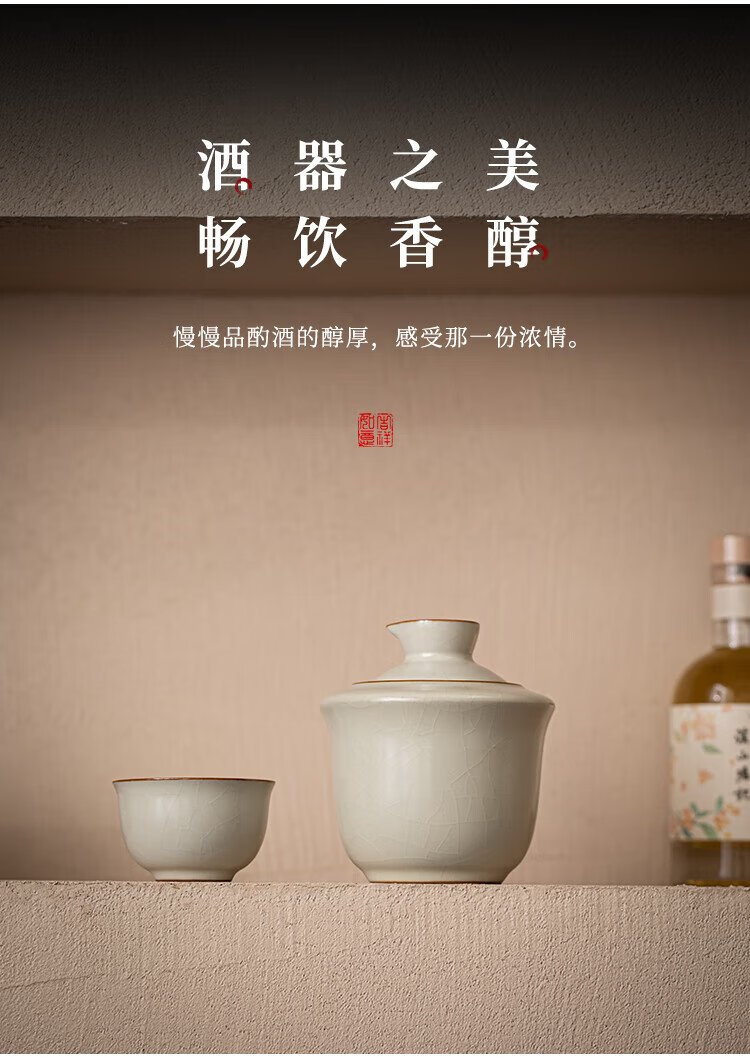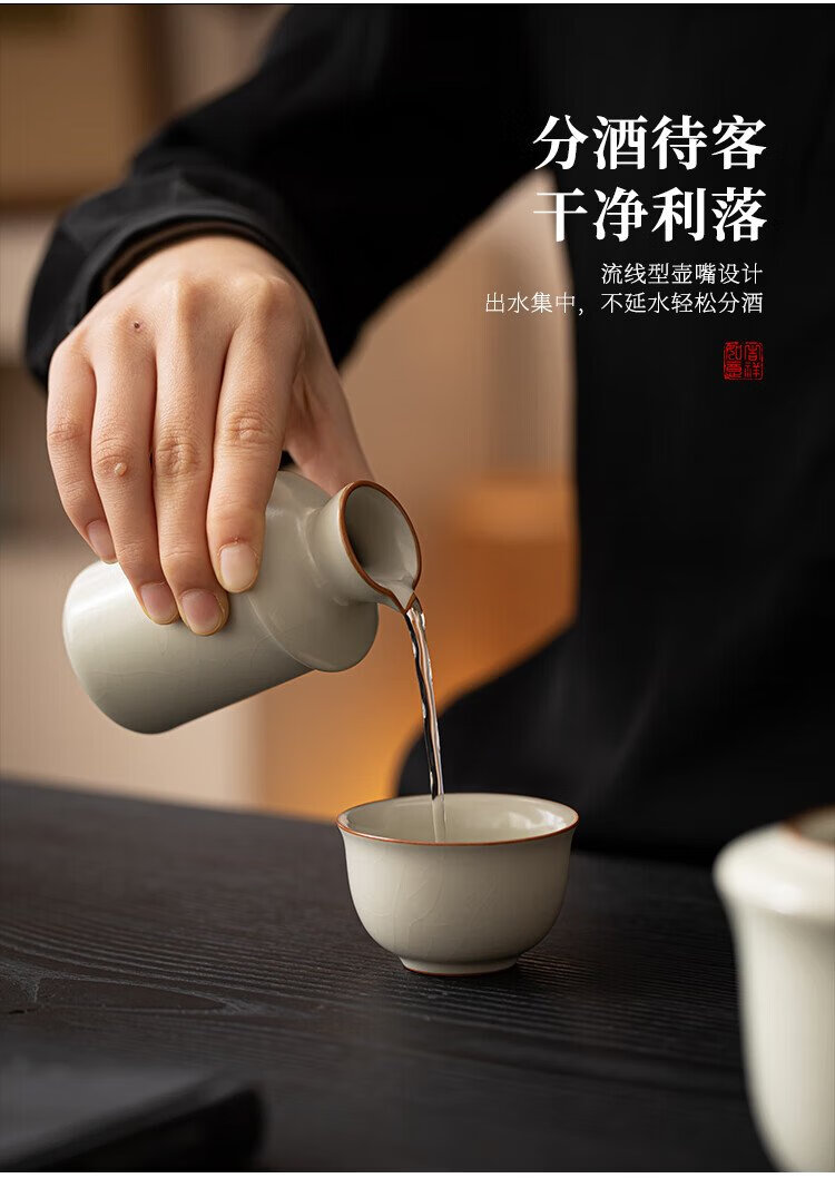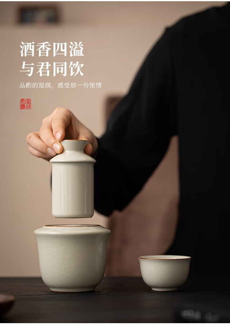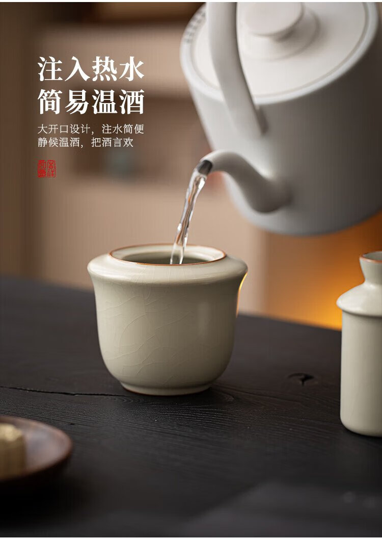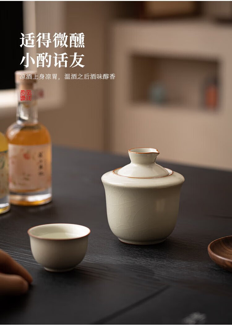 Xi Yuanji Beige Ru Kiln Wine Warmer Set Hot Wine Kettle Household Warming Wine Hot Wine Kettle Ceramic White Wine Yellow Wine Wine Glass Wine Set Beige Ru Kiln Yuanyue Wine Warmer Set (One Pot and One Cup) Simple Pack Base Model