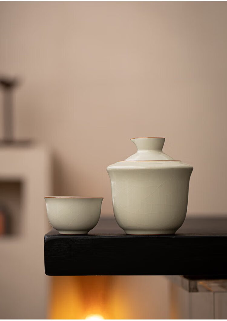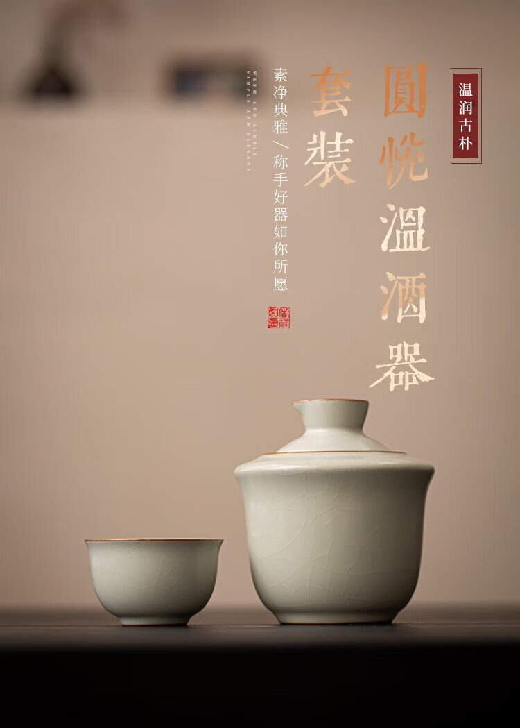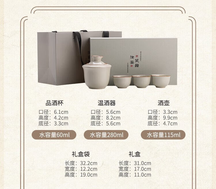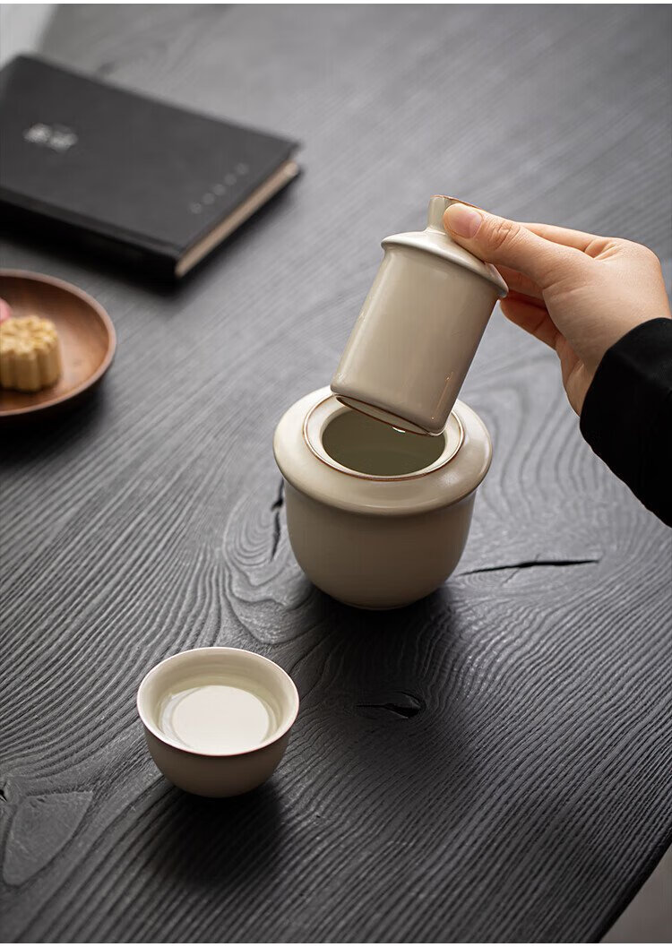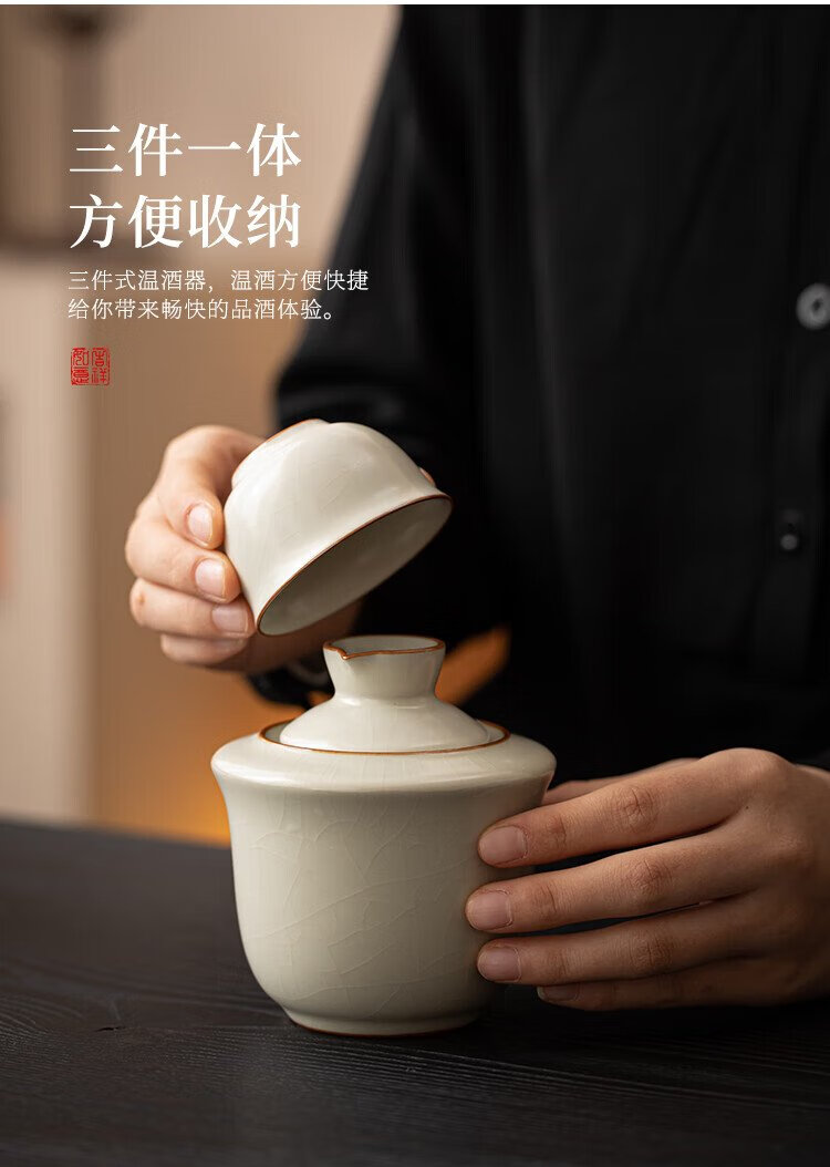 Xi Yuanji Beige Ru Kiln Wine Warmer Set Hot Wine Kettle Household Warming Wine Hot Wine Kettle Ceramic White Wine Yellow Wine Wine Glass Wine Set Beige Ru Kiln Yuanyue Wine Warmer Set (One Pot and One Cup) Simple Pack Base Model