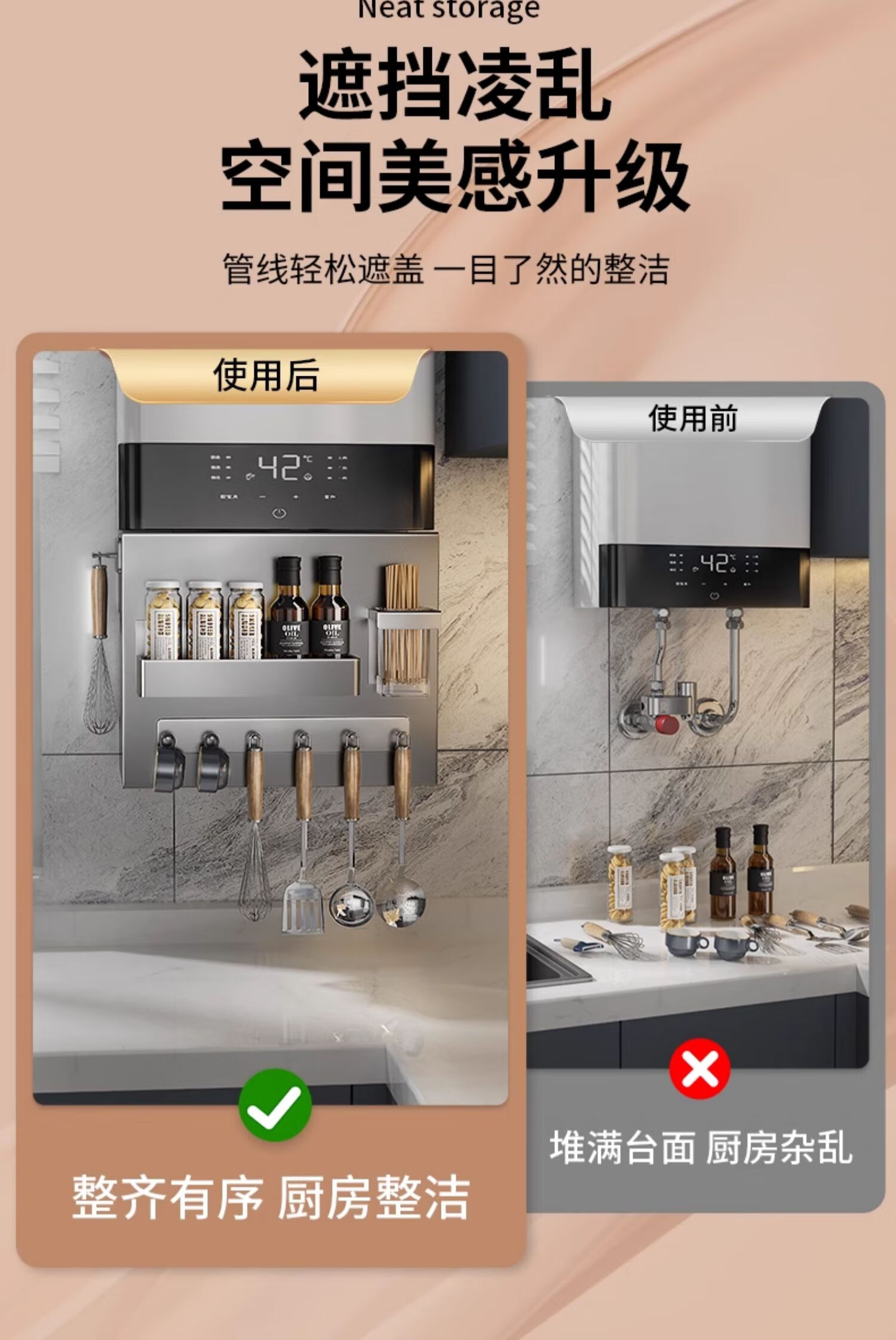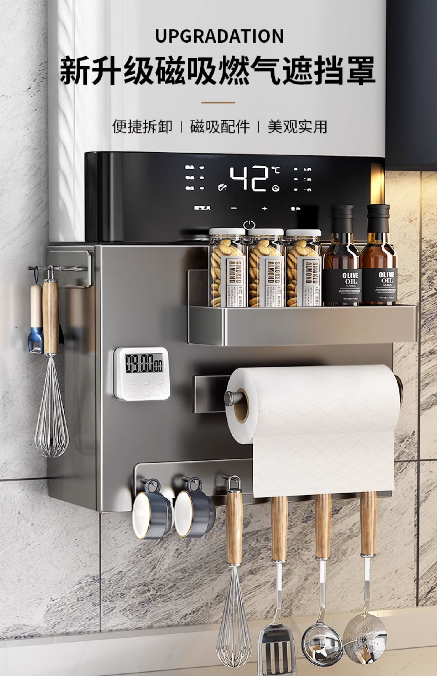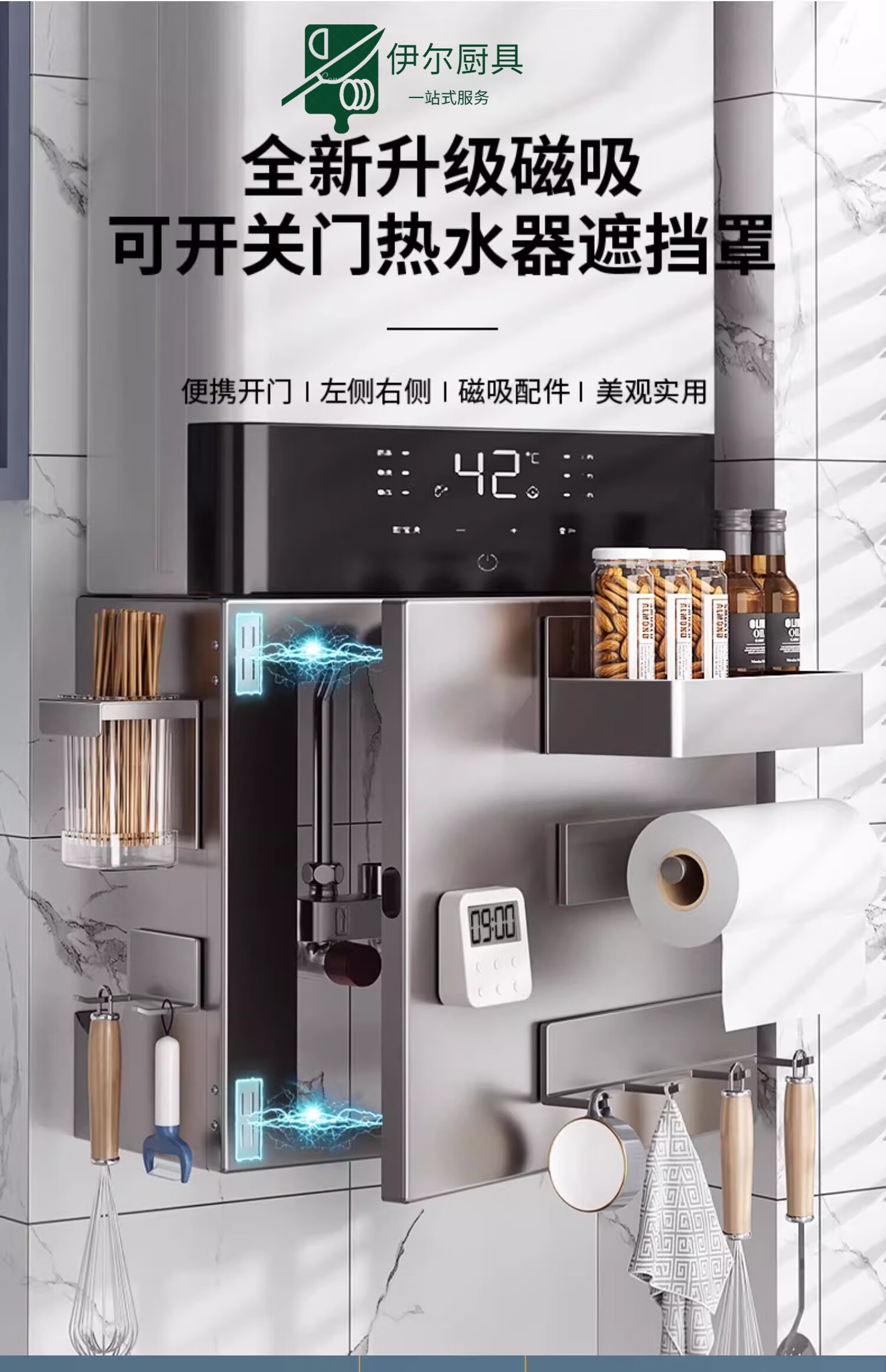 Shiqing German Gas Water Heater Cover Wall-hung Boiler Cover Ugly Natural Gas Pipe Shelf Kitchen Magnetic Hole Board Please contact customer service for door opening customization