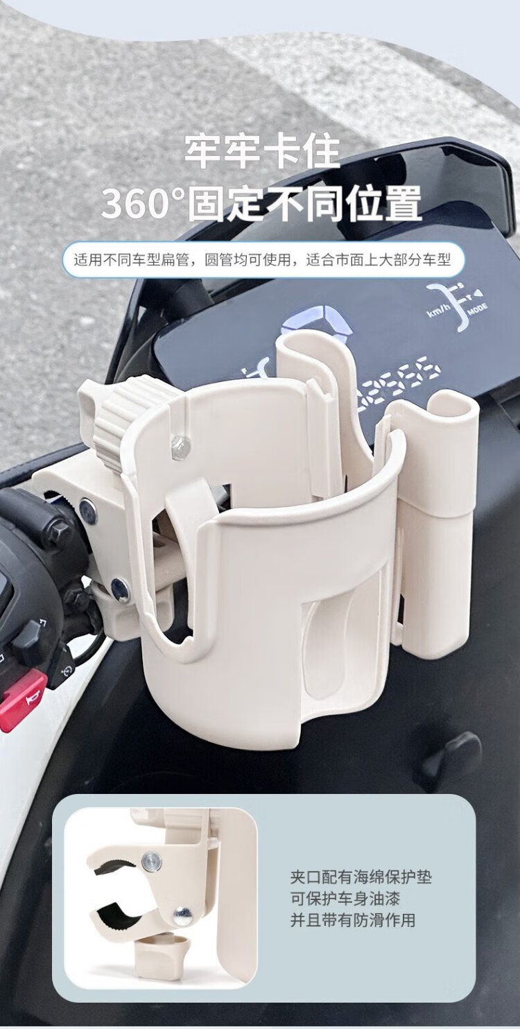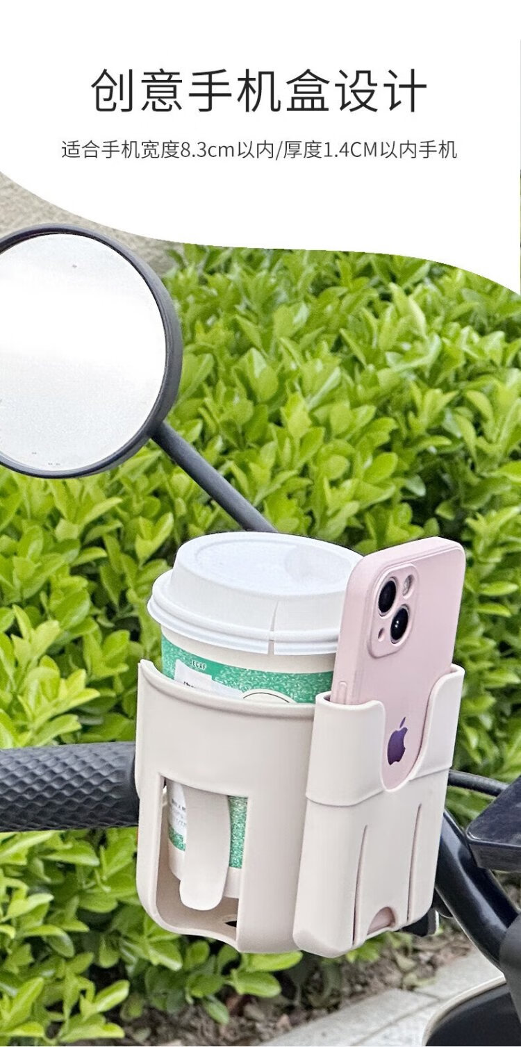 Jingge electric motorcycle water cup holder battery bicycle water bottle holder mobile phone holder children's bicycle milk tea holder universal upgraded version beige cup holder + detachable mobile phone slot