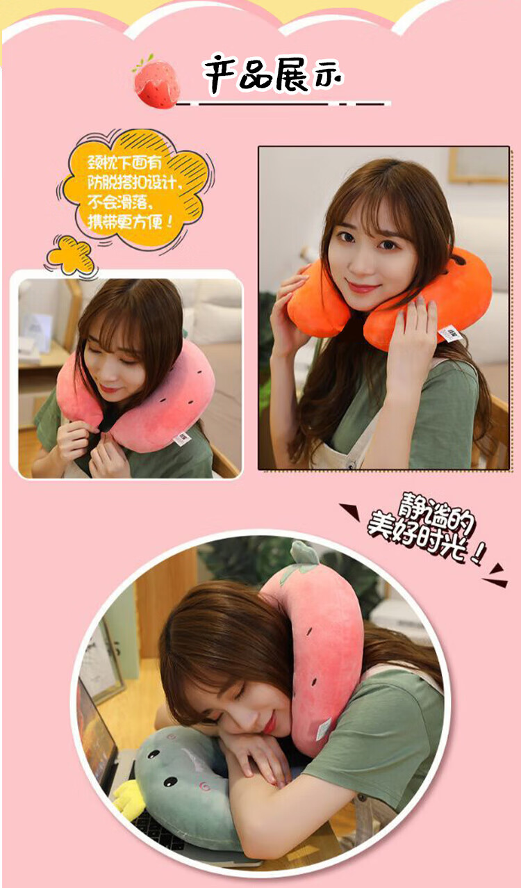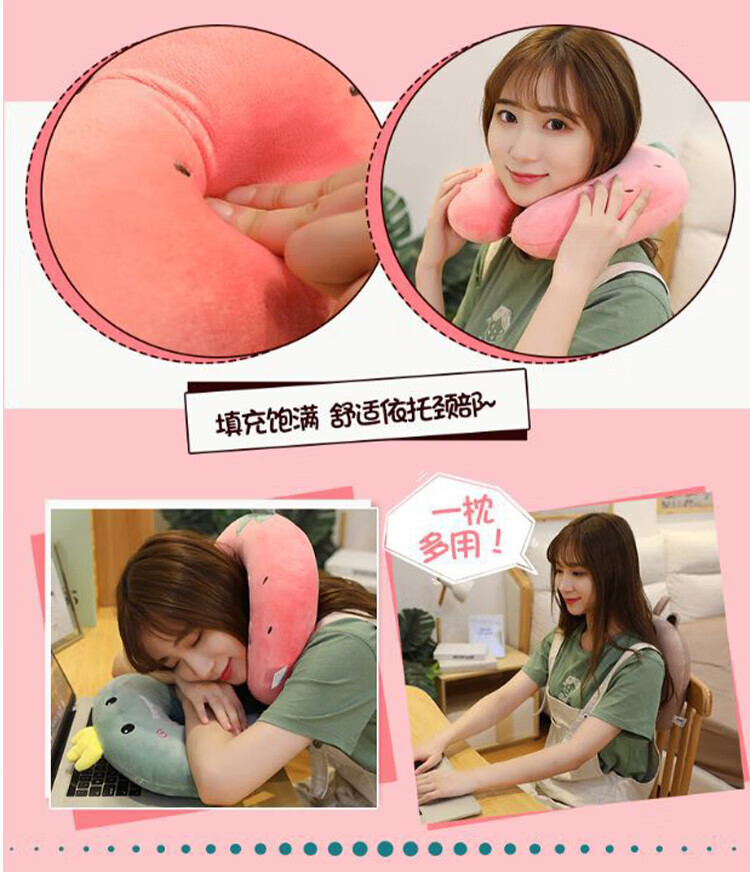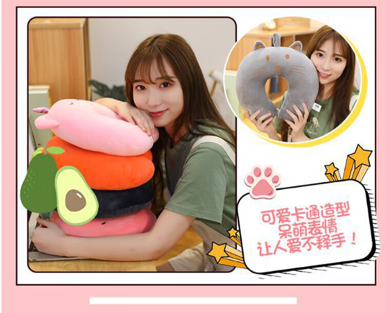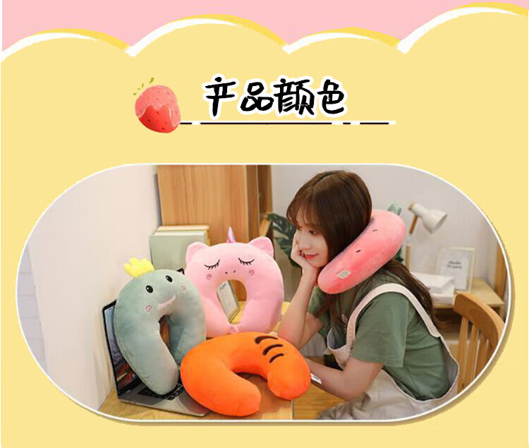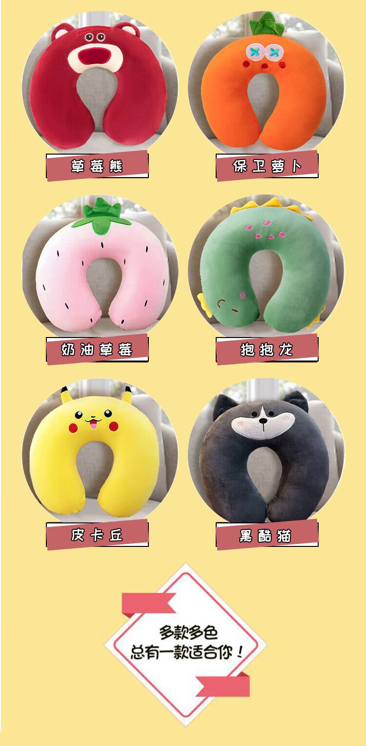 JD Logistics Strawberry Bear U-shaped Neck Pillow Disney Same Style Pillow Hug Huglong U-shaped Neck Pillow Neck Protective Pillow Classic Black Cool Cat