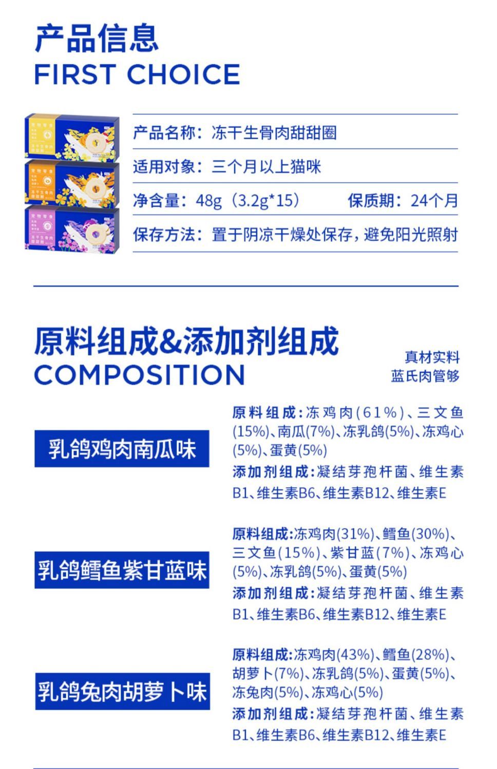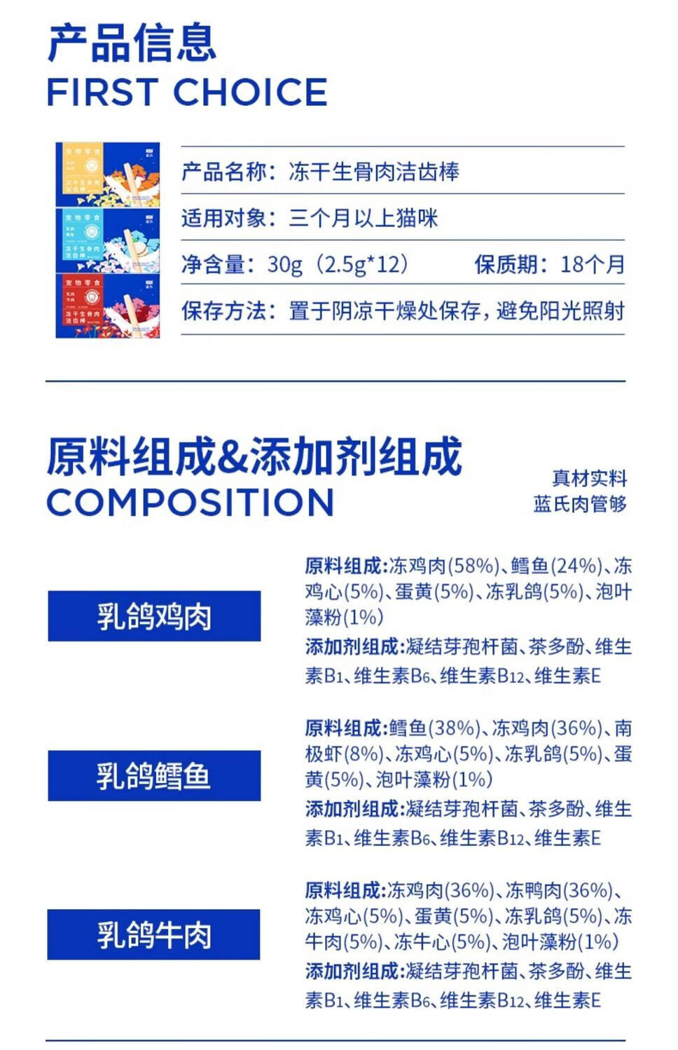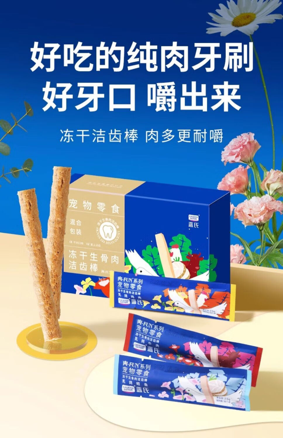 Lan's Teething Freeze-Dried Sticks Cat Snacks Teeth Cleaning Sticks Raw Bone Meat Pigeon Donuts Kitten Snacks 60g 2.5gx24 Pack Mixed Flavors Freeze-Dried Teething Sticks