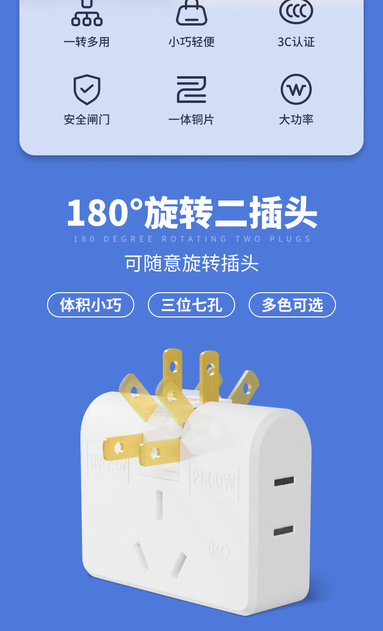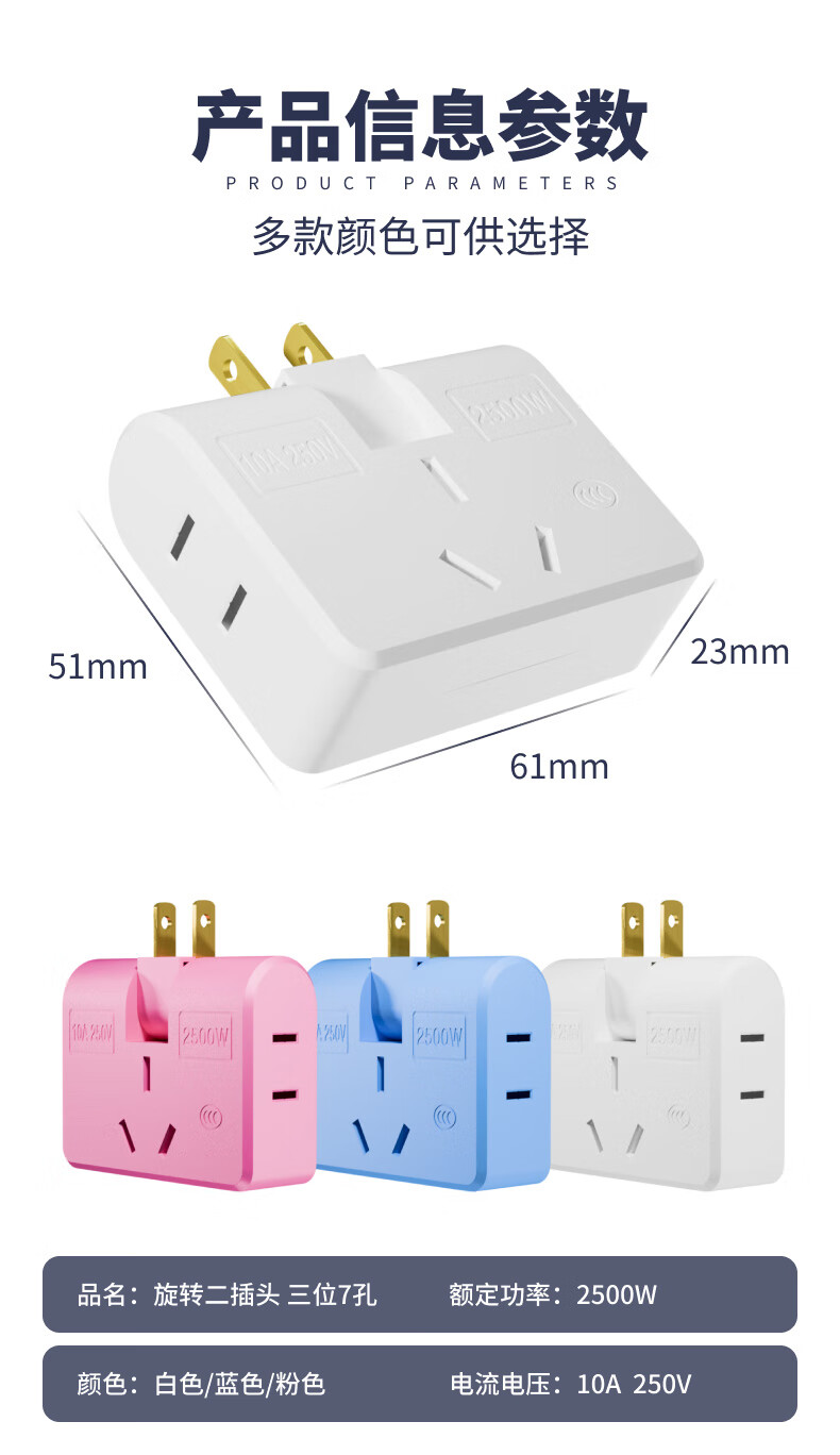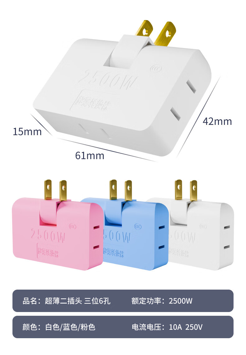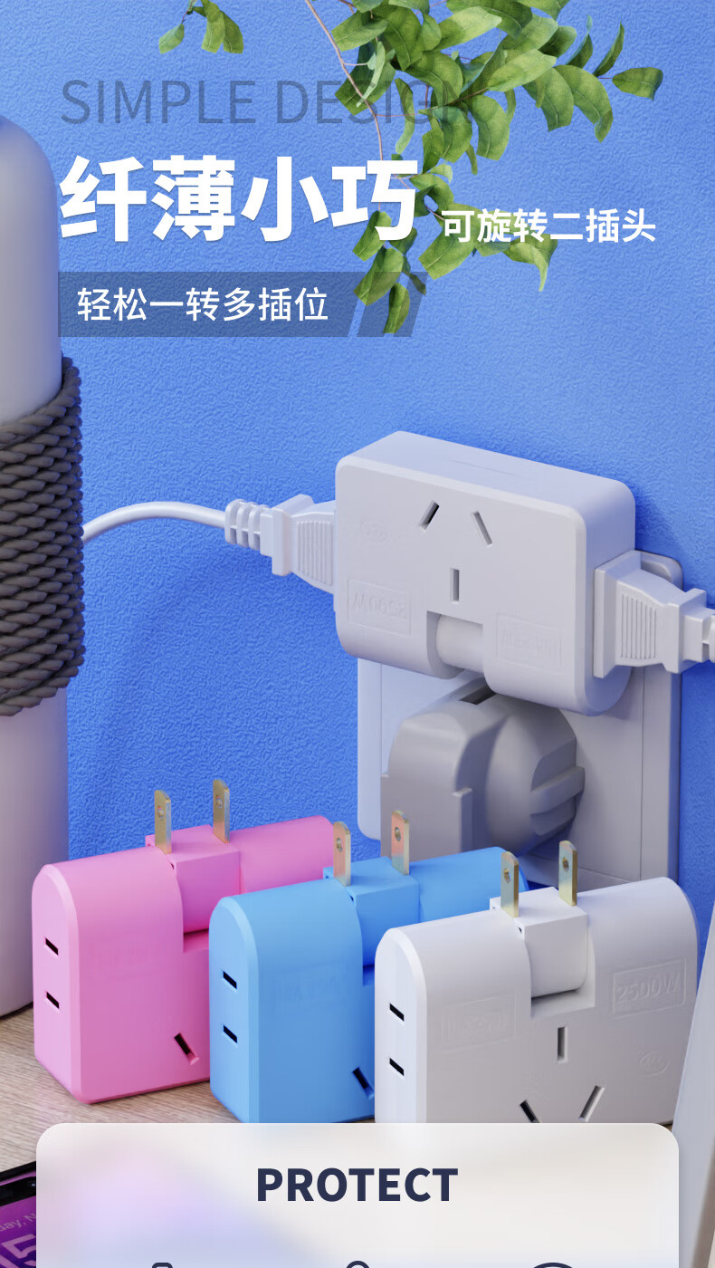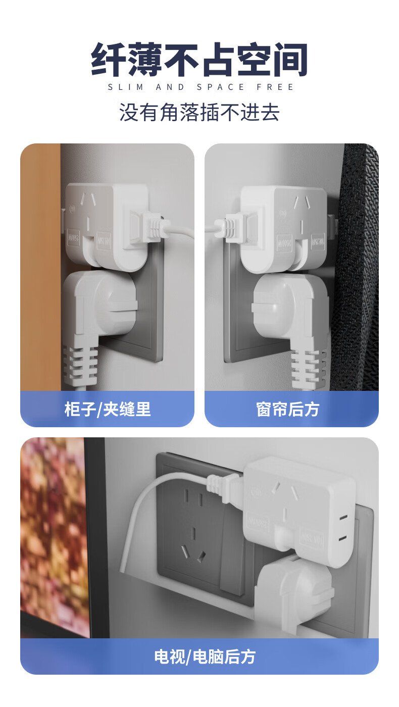 Ultra-thin one-turn three-socket Xiaomi same style office home dormitory rotatable multi-function socket converter one-turn three wall-mounted non-blocking switch expansion multi-hole row plug white one pack