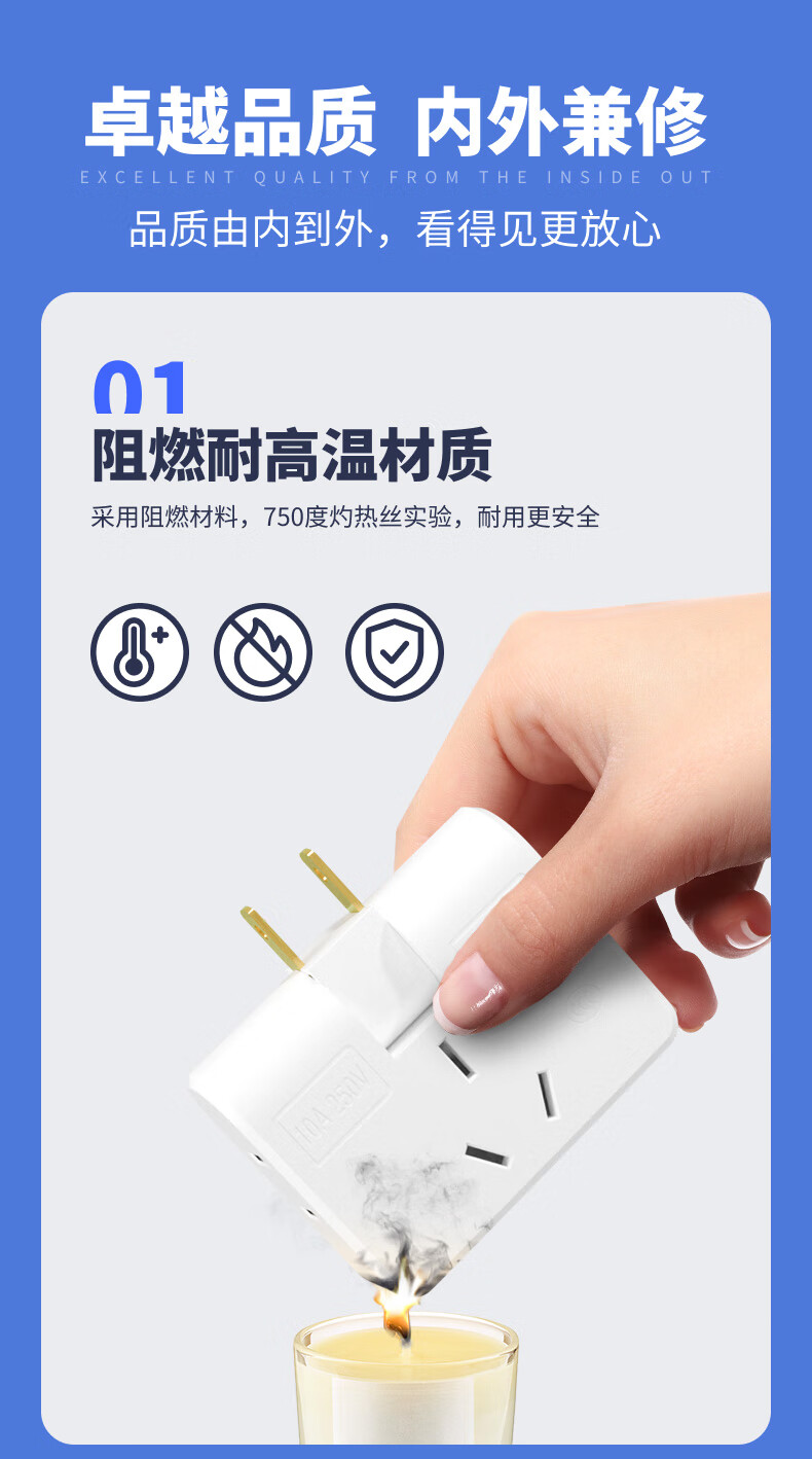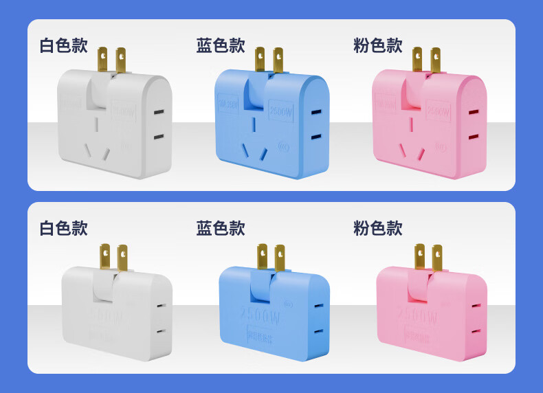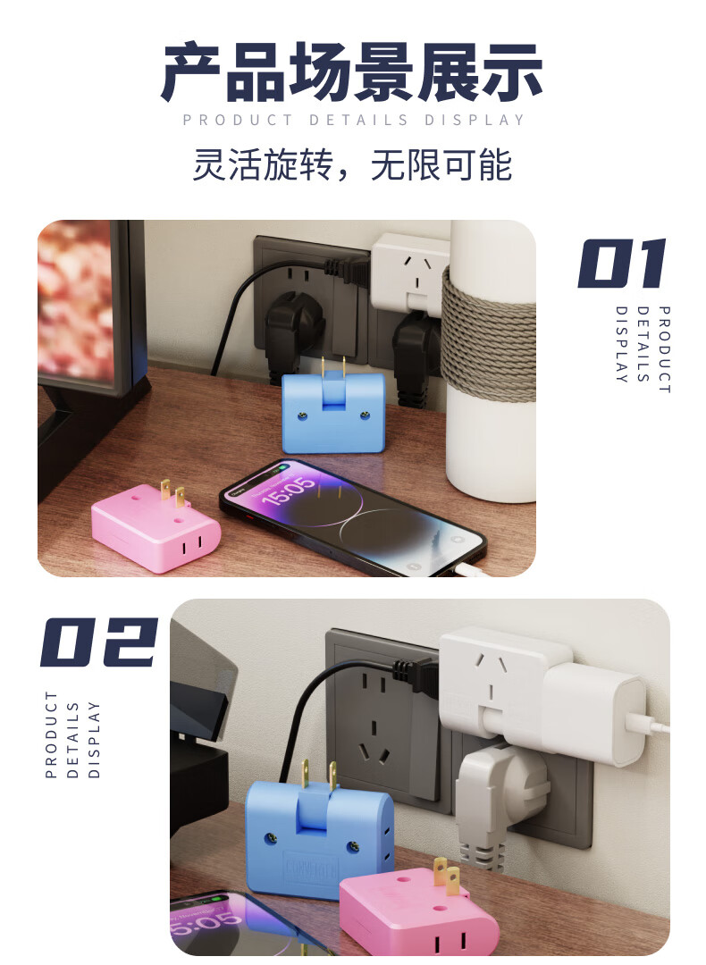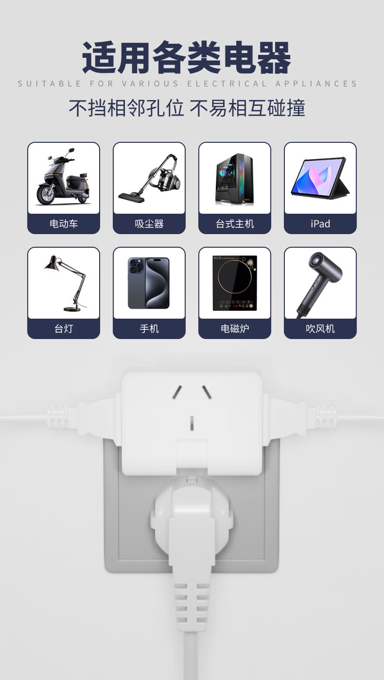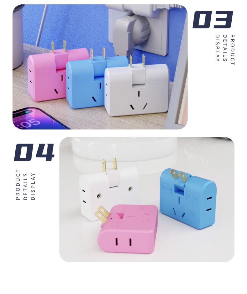 Ultra-thin one-turn three-socket Xiaomi same style office home dormitory rotatable multi-function socket converter one-turn three wall-mounted non-blocking switch expansion multi-hole row plug white one pack