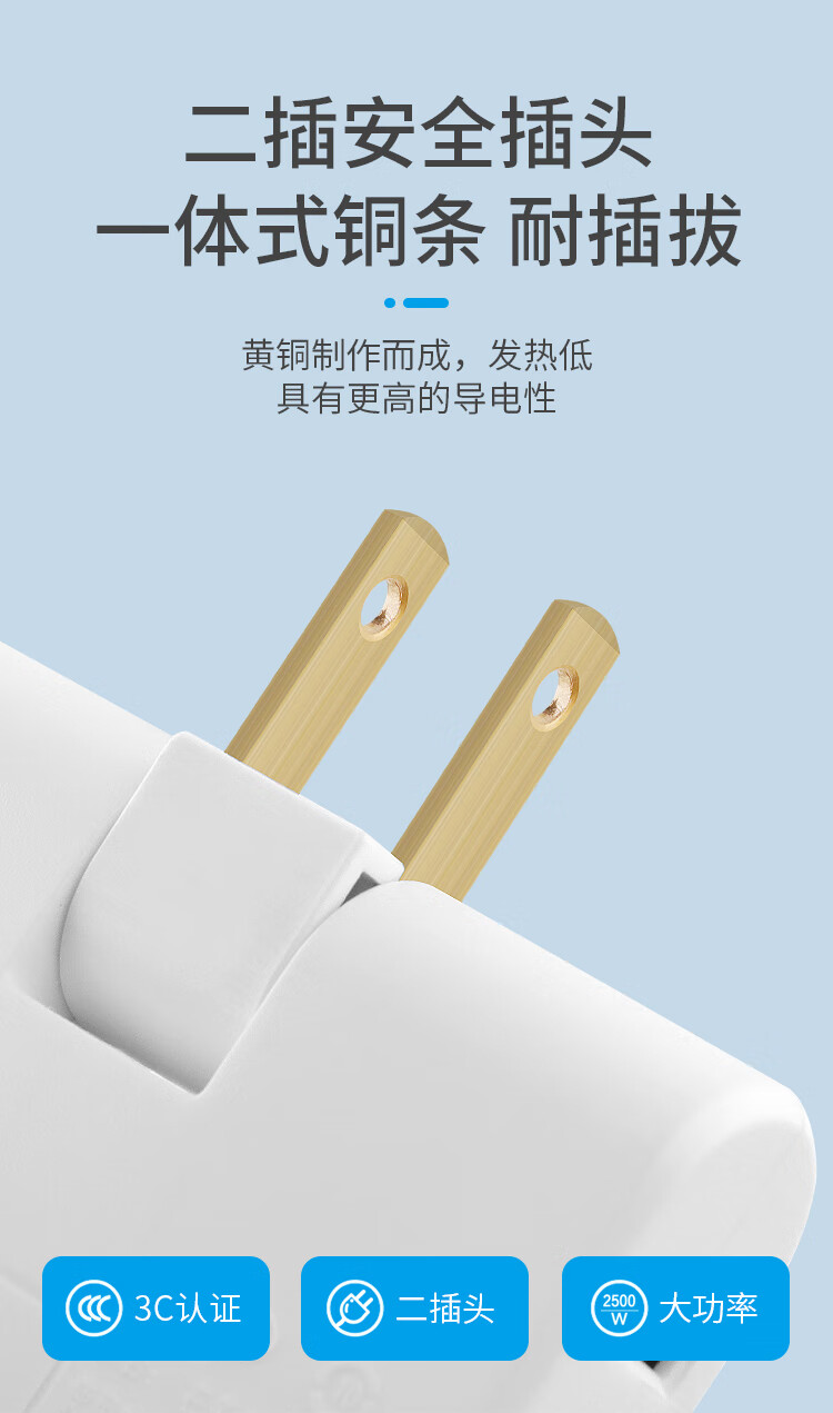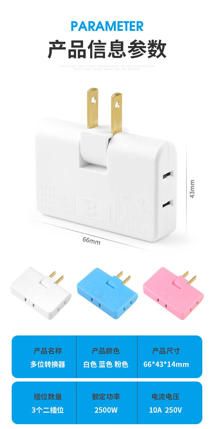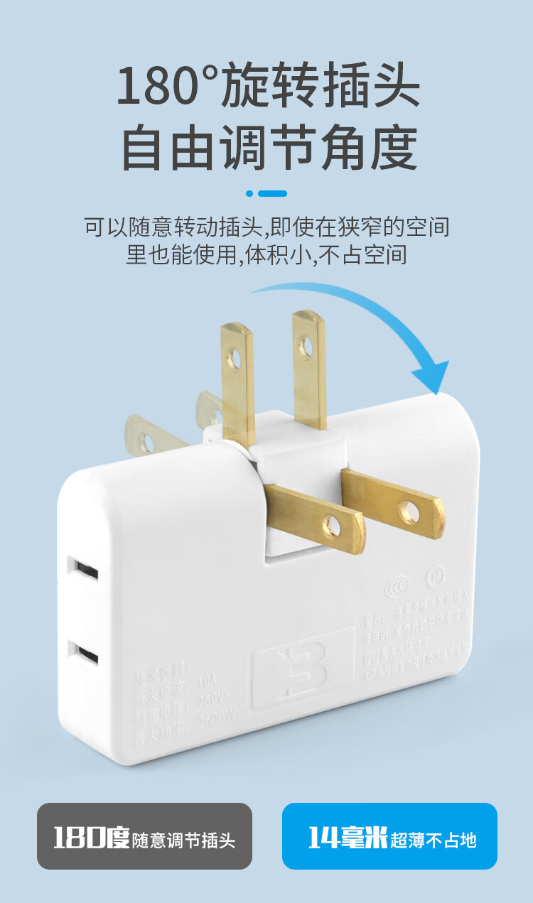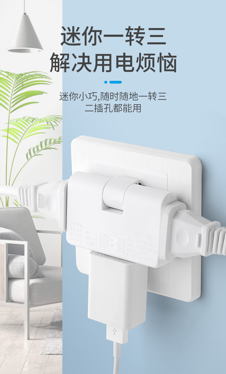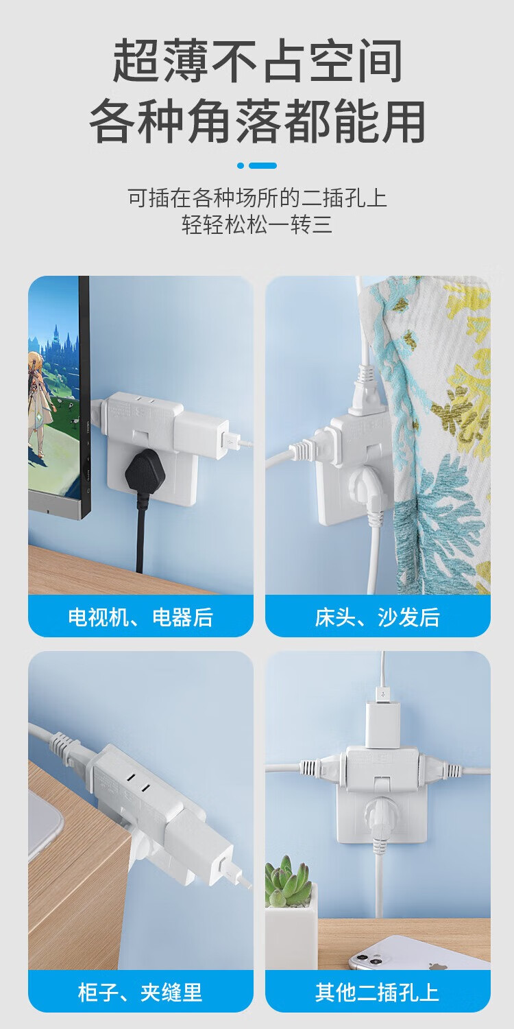 Jingdong Logistics Ultra-thin conversion plug one-to-three conversion head 180-degree rotating flat gap one-to-one-to-three wireless multi-hole one-to-multi-socket converter Ultra-thin one-to-three 6-hole socket (white 1 pack)
