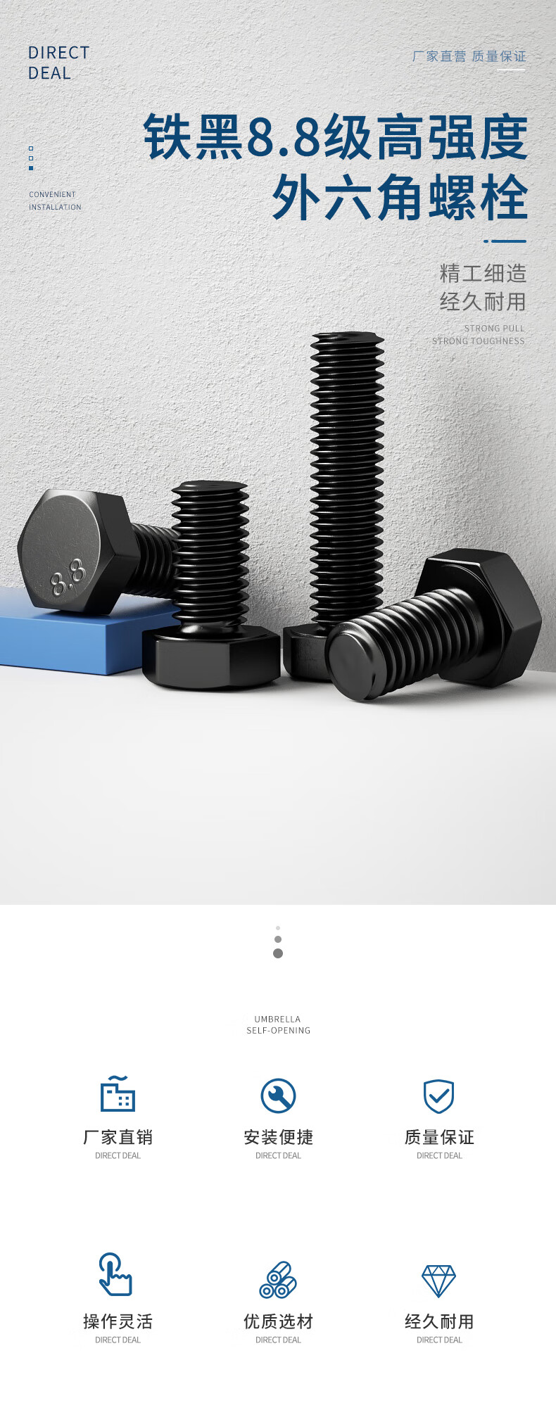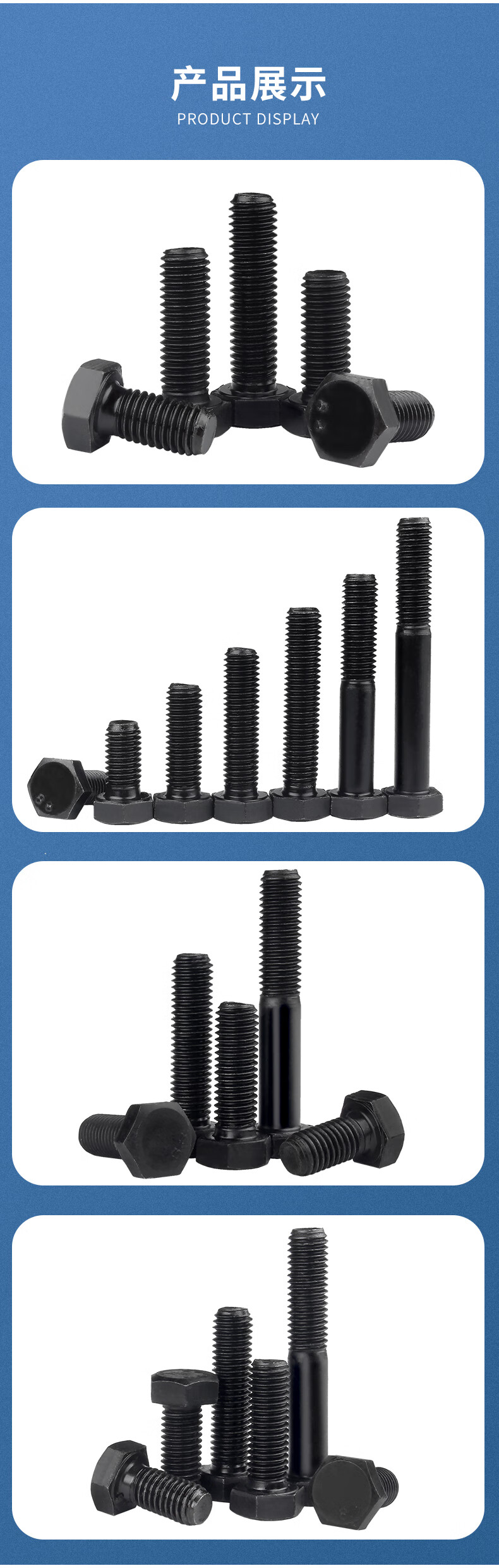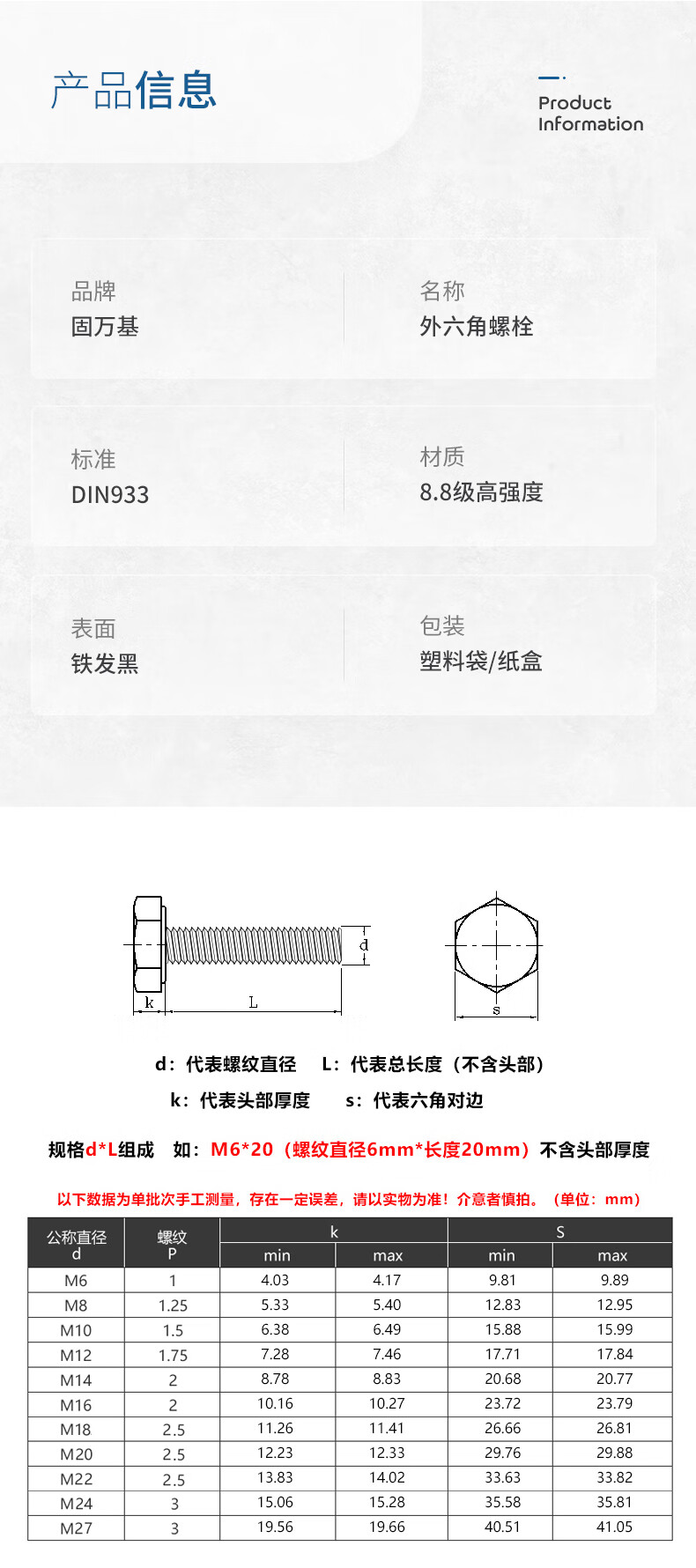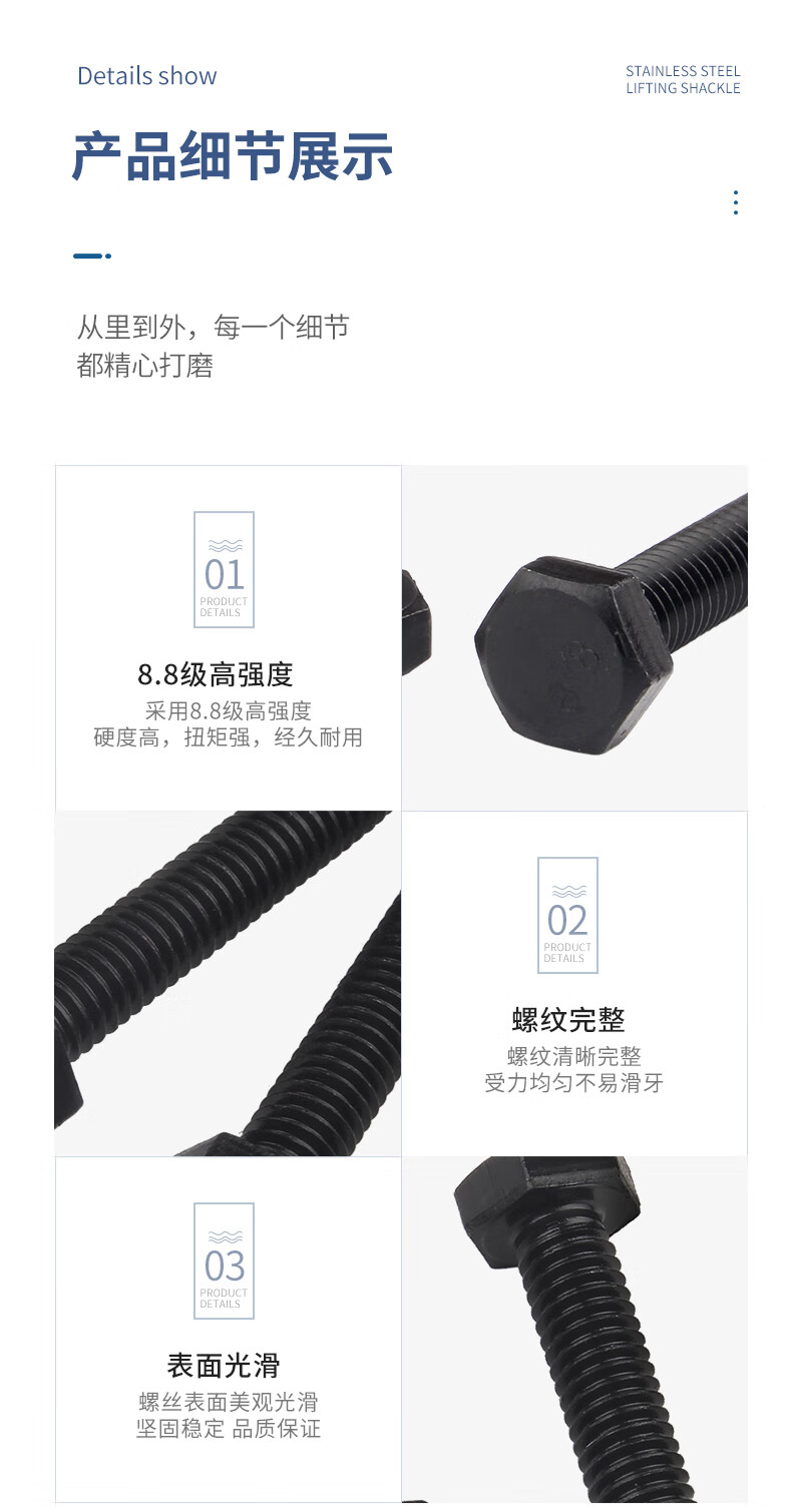 Guwanji grade 8.8 external hexagonal screws, extended high-strength external hexagonal head bolts, blackened screws, M30*150 half teeth (2 pieces)