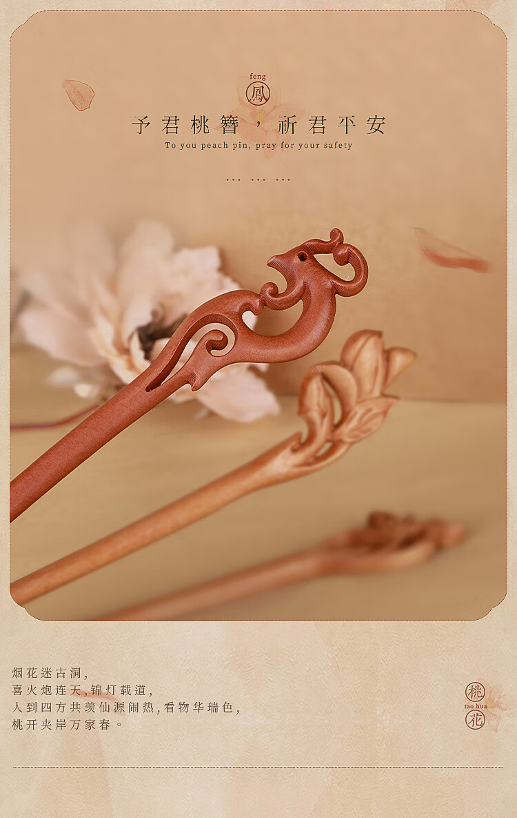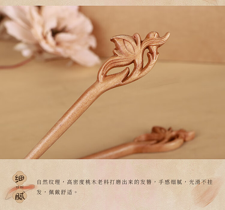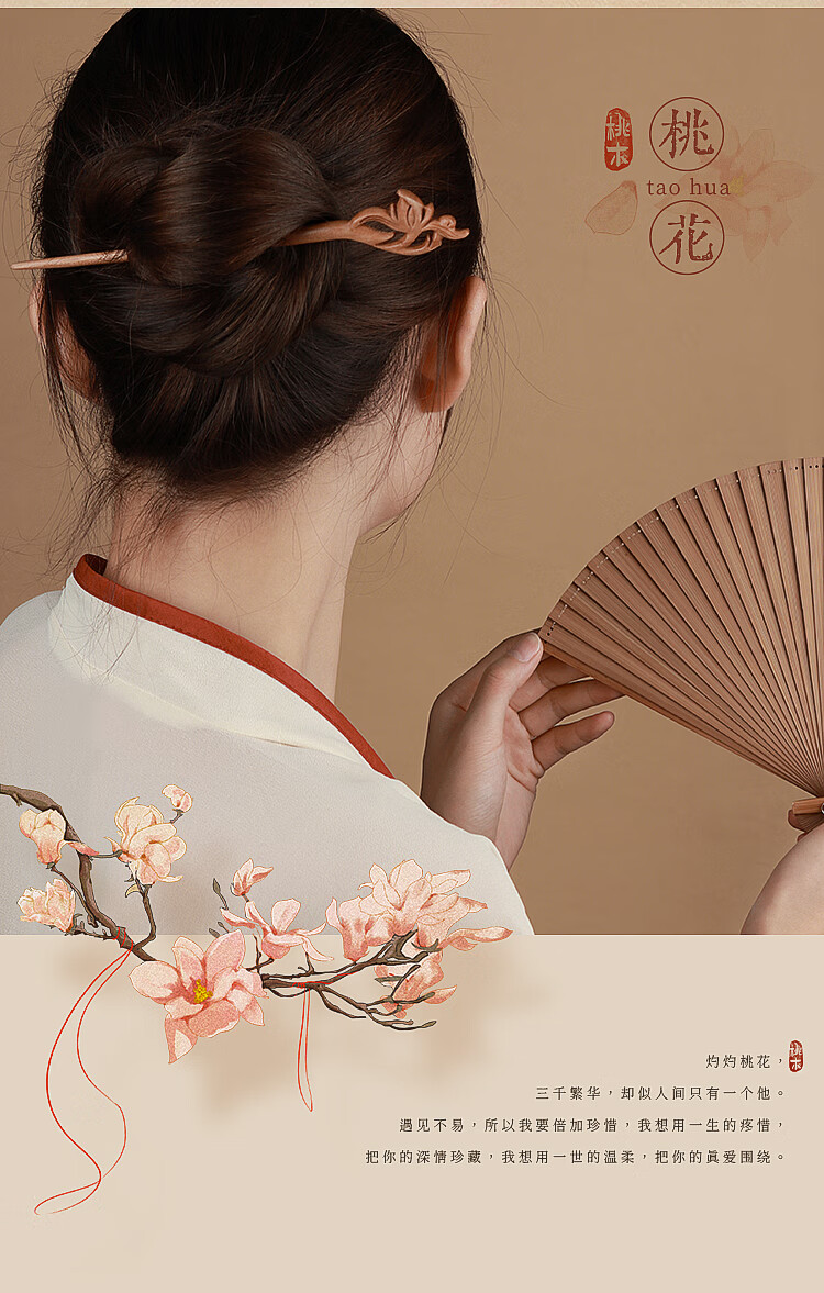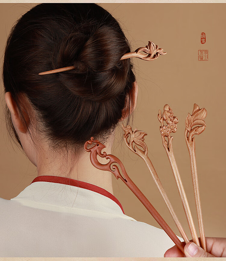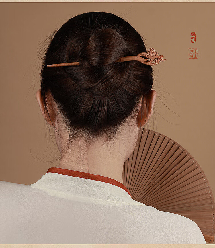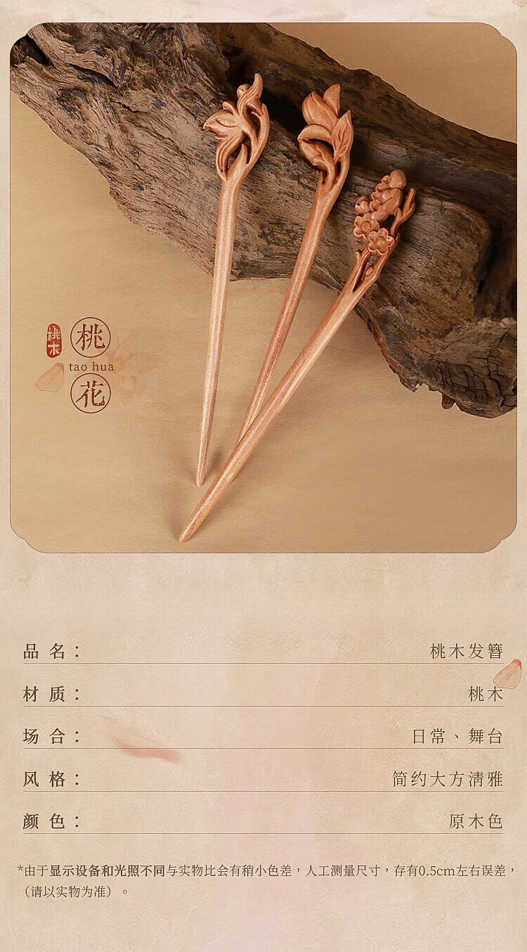 Shengxun peach wood hairpin handmade new Chinese style hairpin ancient style female style wooden hairpin daily simple hairpin hairpin fan