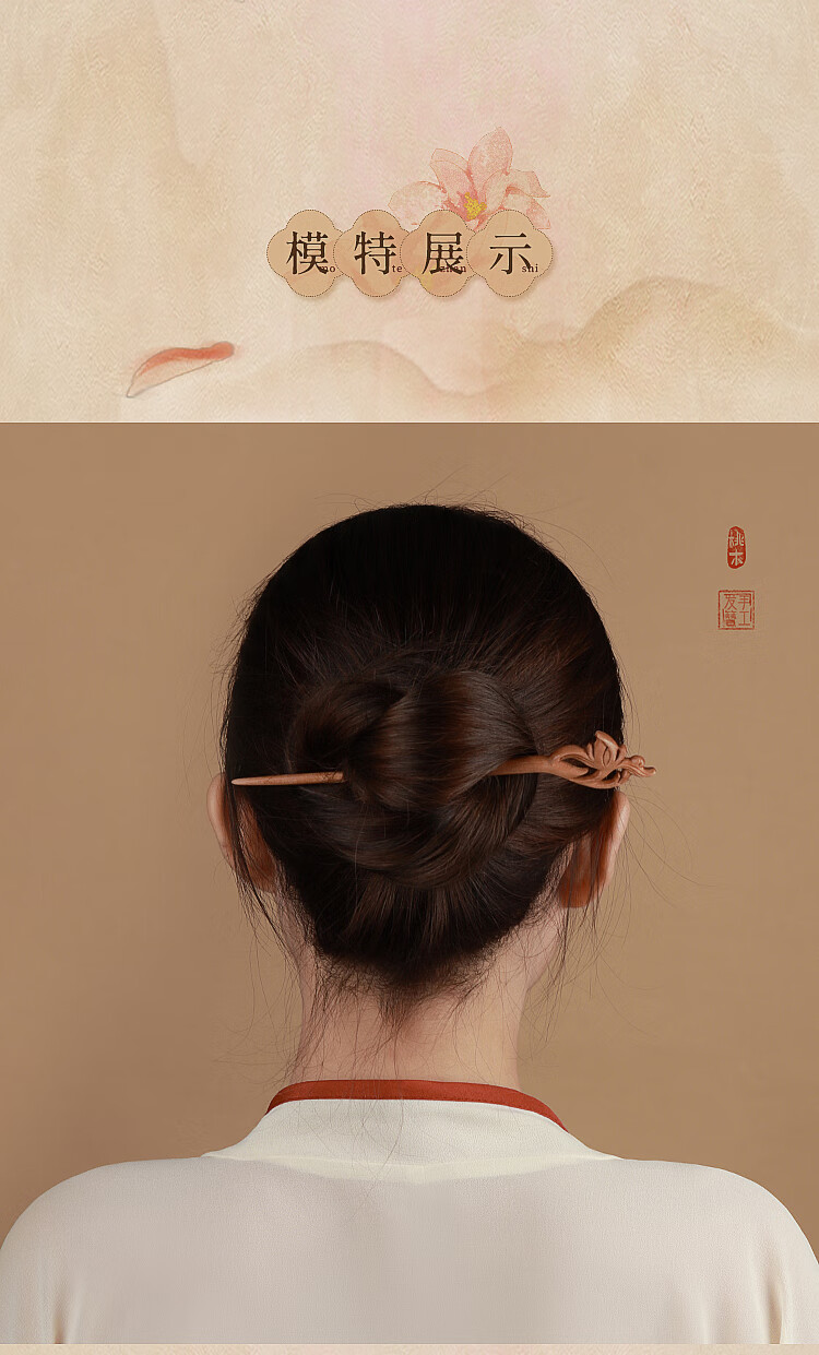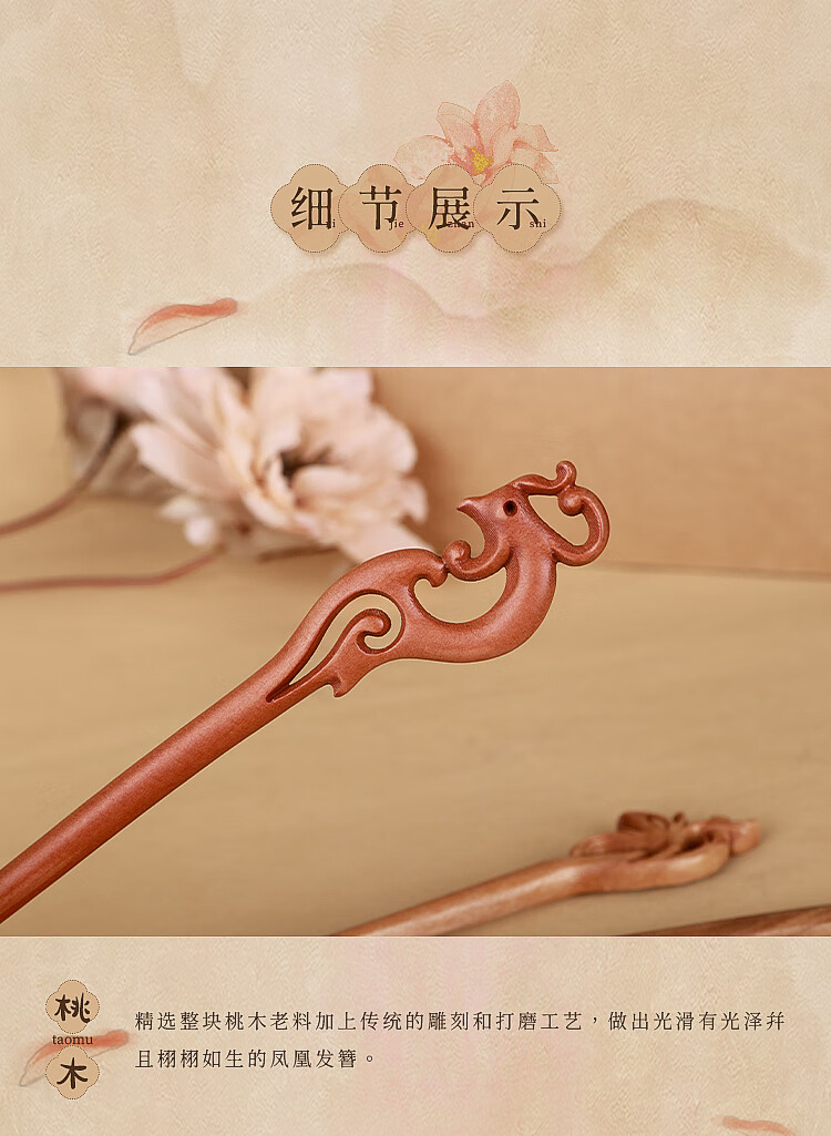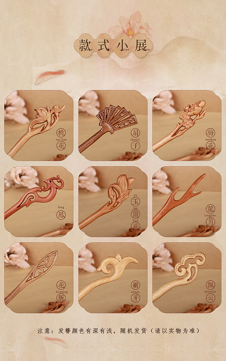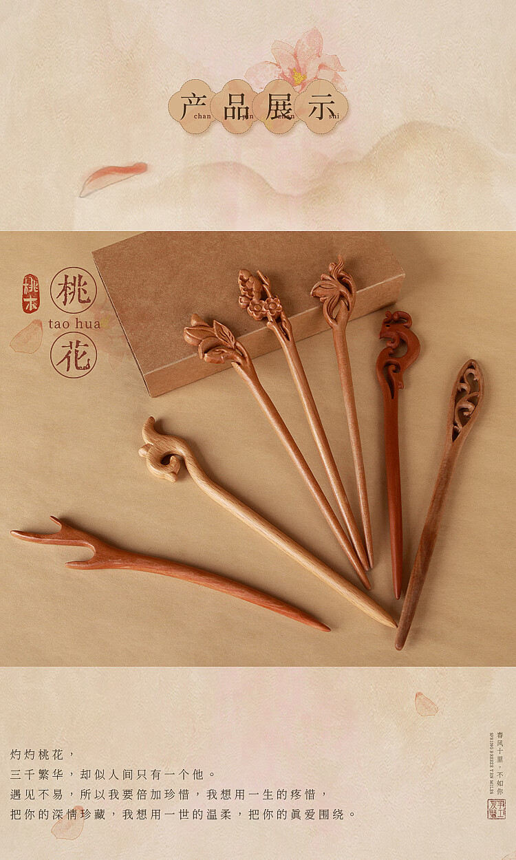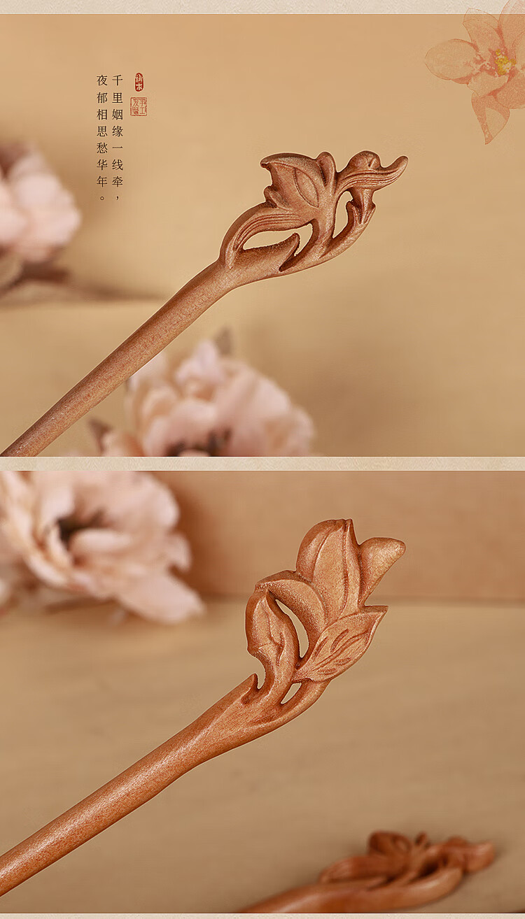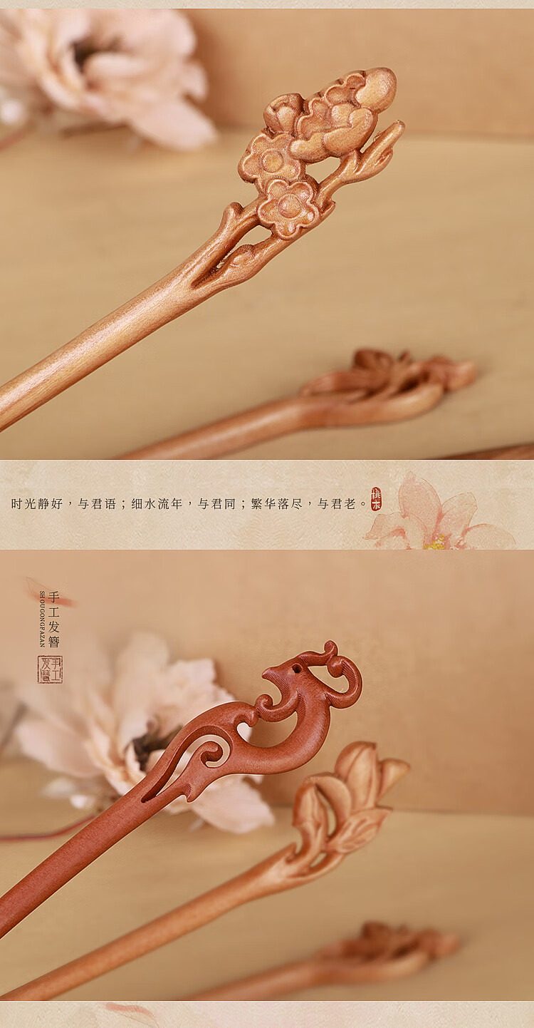 Shengxun peach wood hairpin handmade new Chinese style hairpin ancient style female style wooden hairpin daily simple hairpin hairpin fan