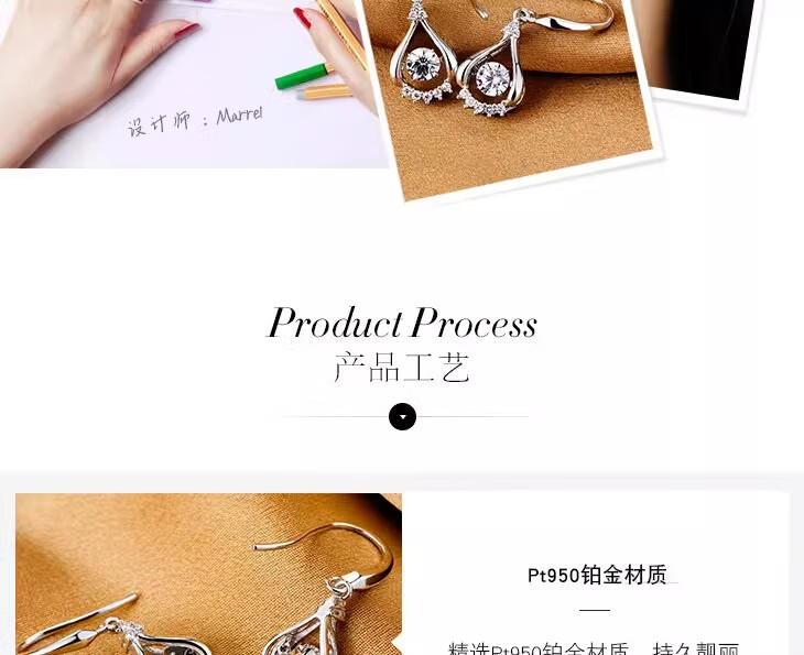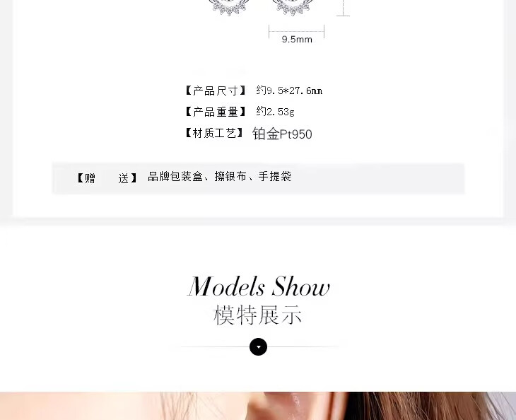 Platinum Earrings for Women Earrings Earrings Earrings Earrings Earrings Jewelry Valentine's Day Gifts for Girlfriends and Wife Birthday Gifts for Women Platinum PT950 I Have You in My Heart Single Flower Gift Box 1.5