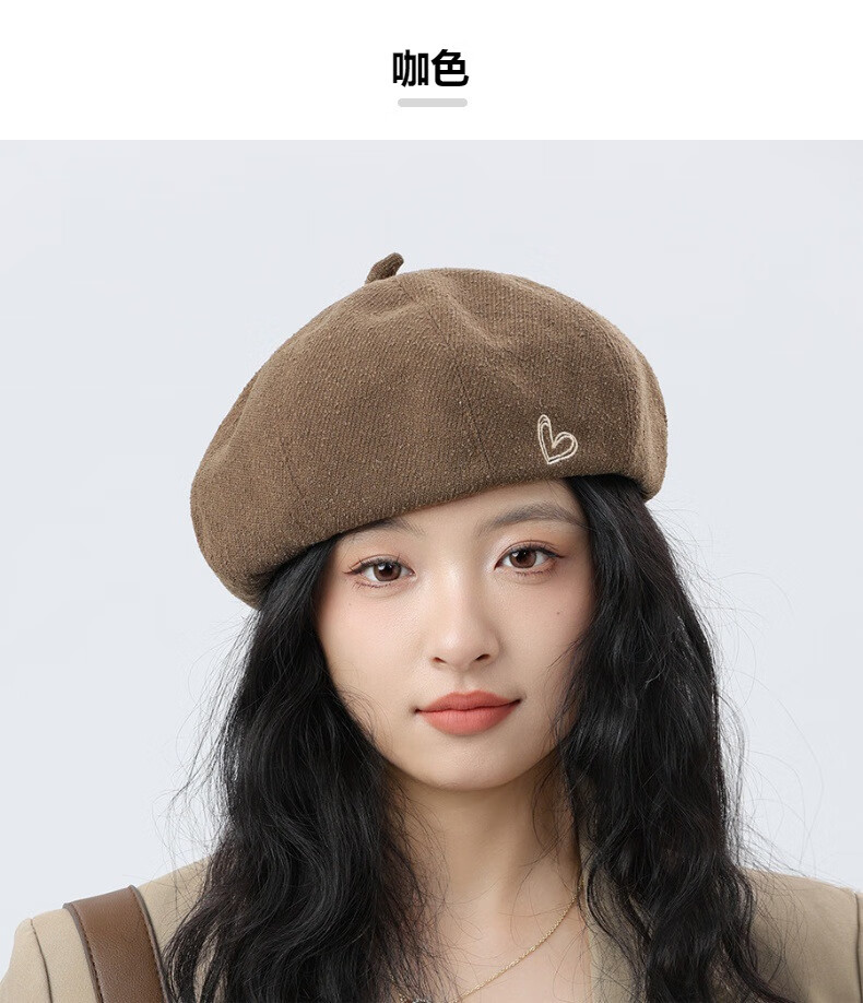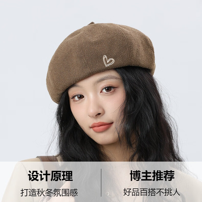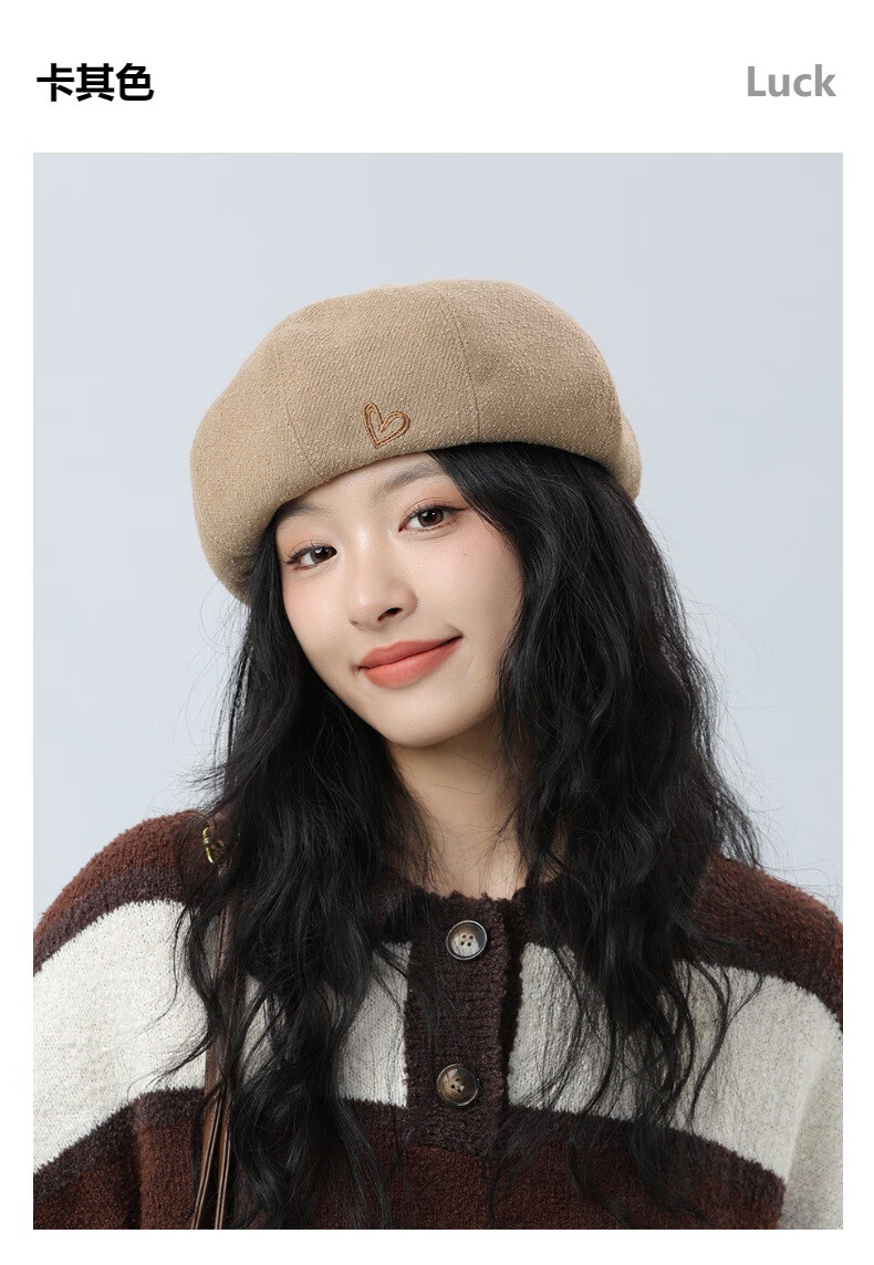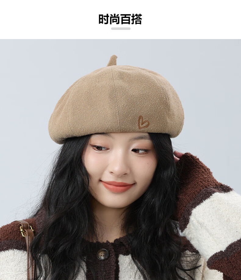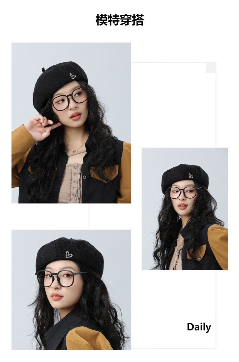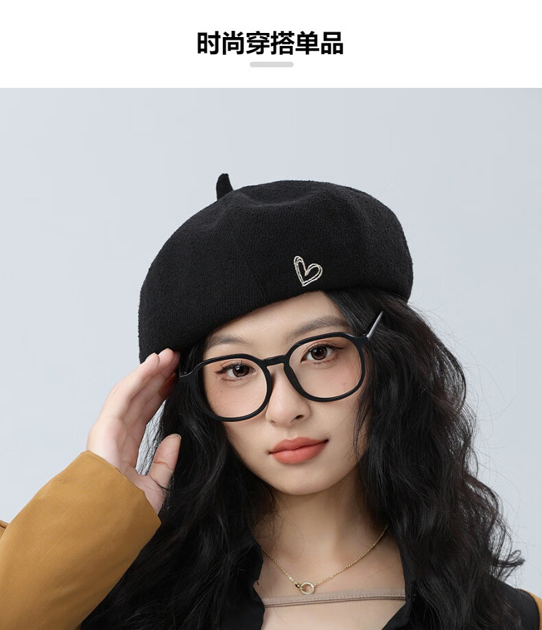 Jimmy Leaf Beret Hat Women's Autumn and Winter New Solid Color Painter Hat Literary Painter Hat Woolen British Black One Size M (56-58cm)