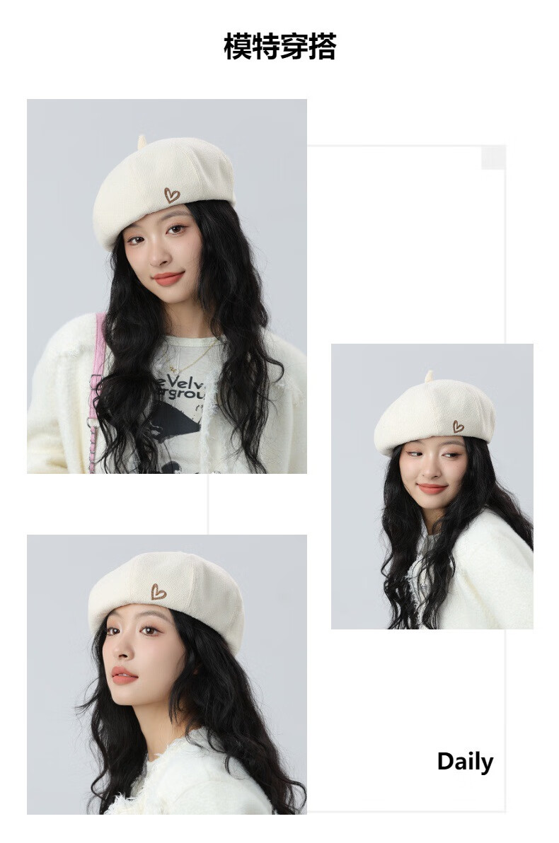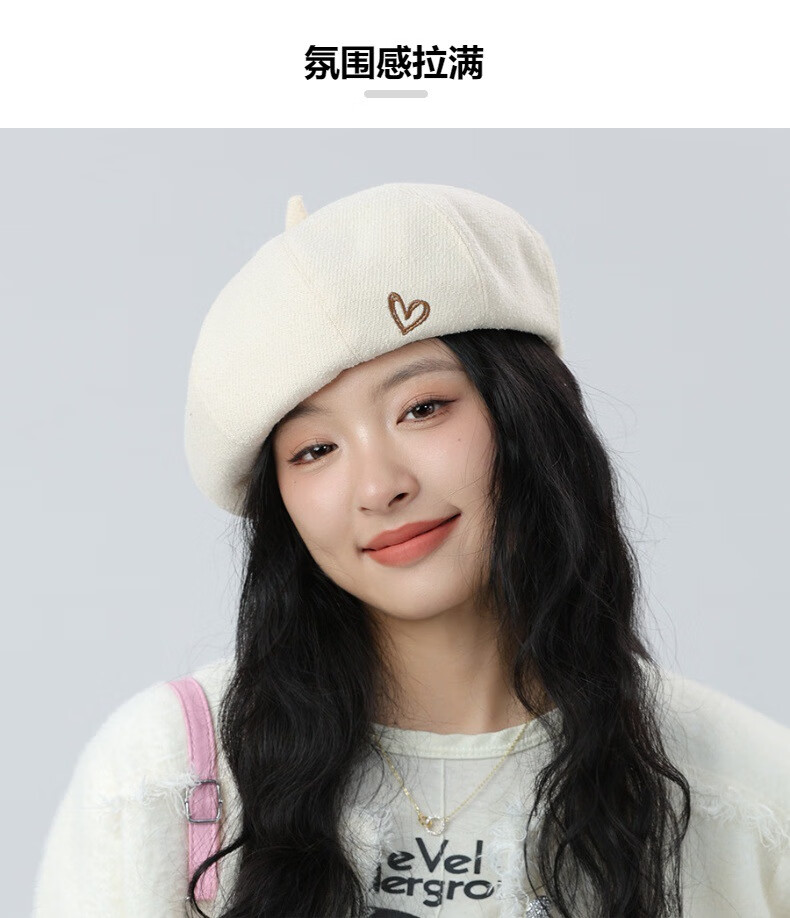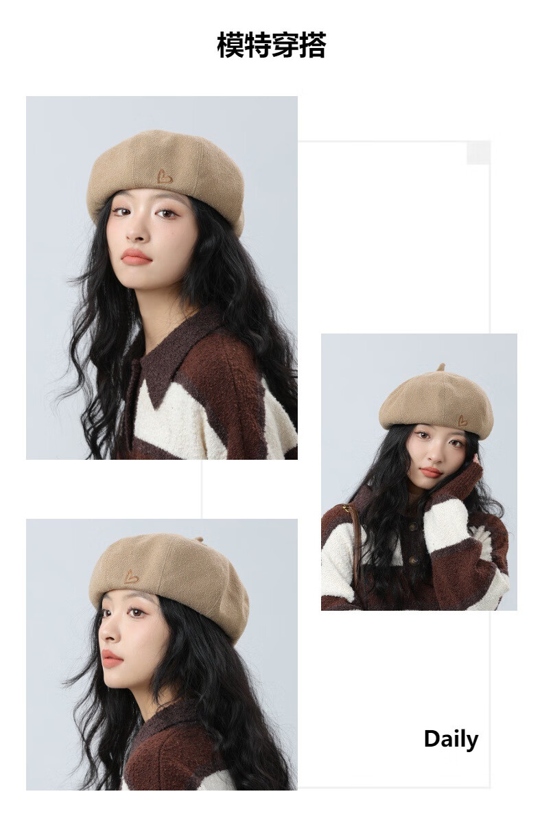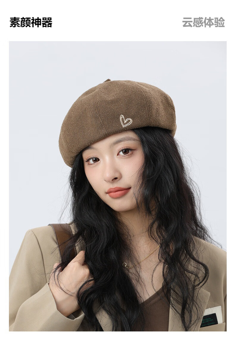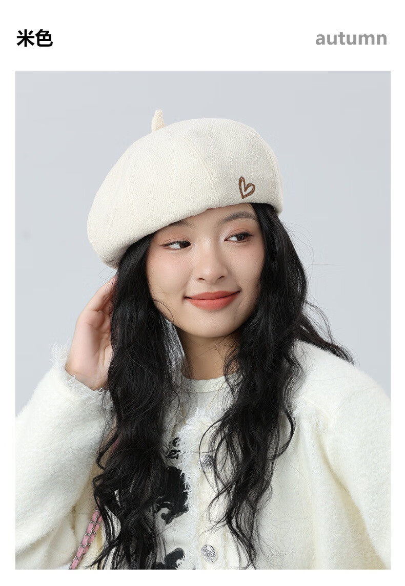 Jimmy Leaf Beret Hat Women's Autumn and Winter New Solid Color Painter Hat Literary Painter Hat Woolen British Black One Size M (56-58cm)