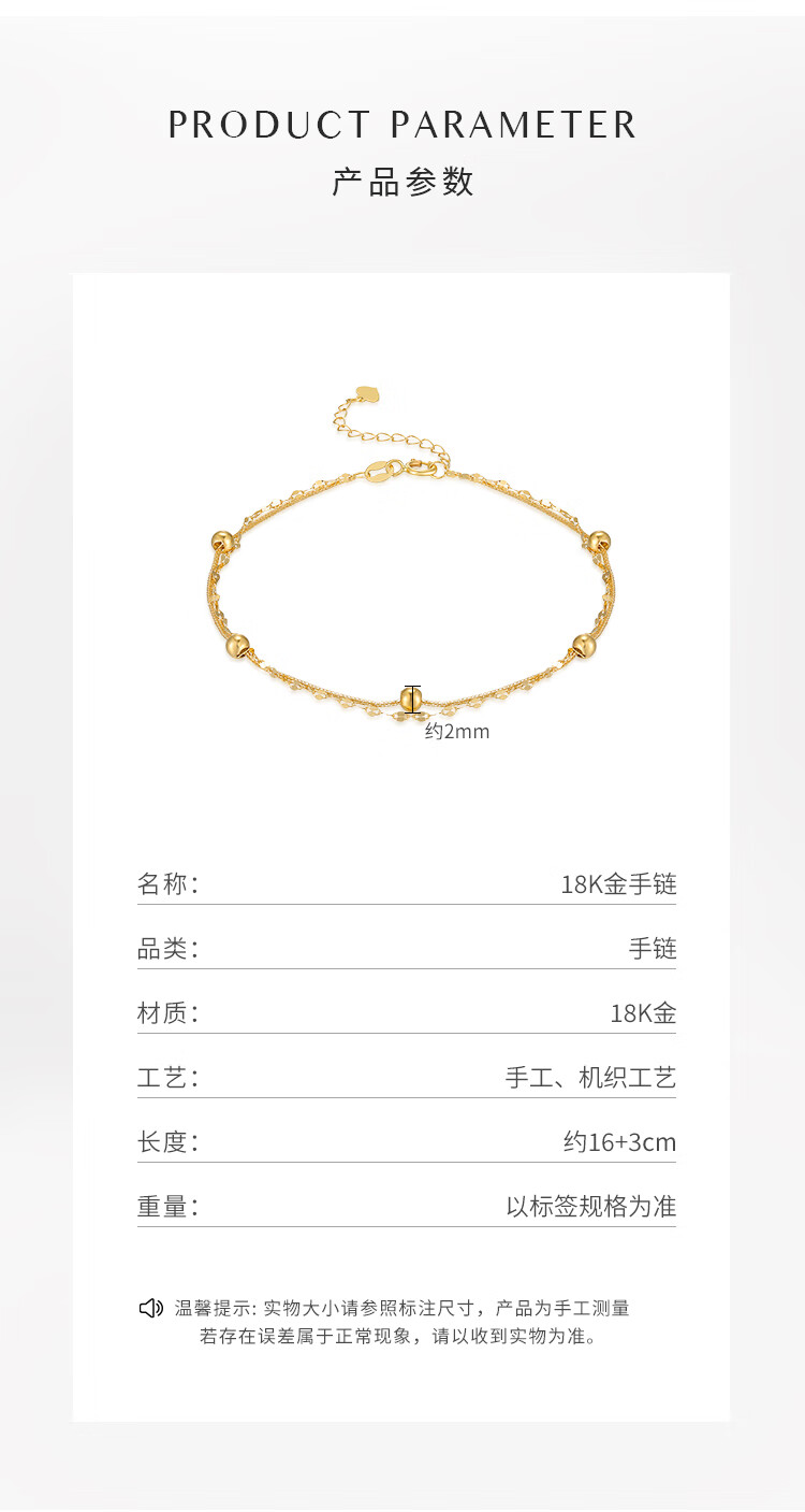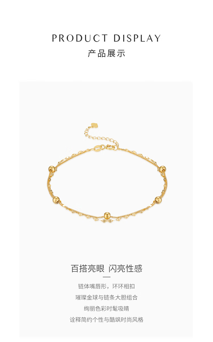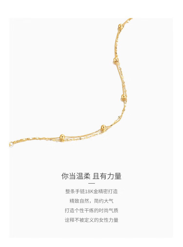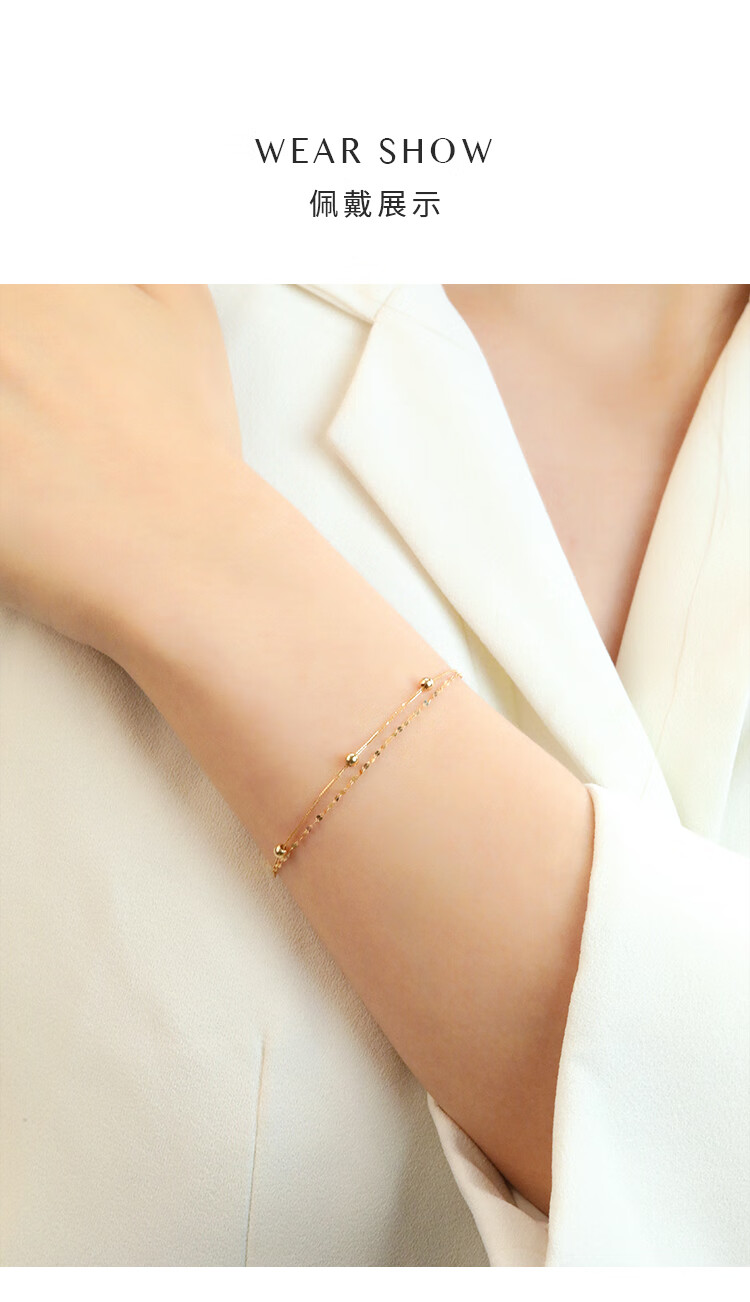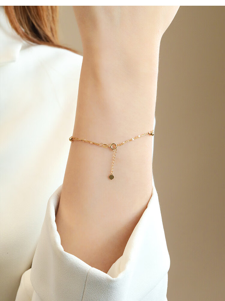 Chiba Jewelry 18K gold bracelet, fashionable and modern double-layered bead bracelet, birthday gift for girlfriend, female birthday gift, 18K gold bracelet, chain length is about 19cm